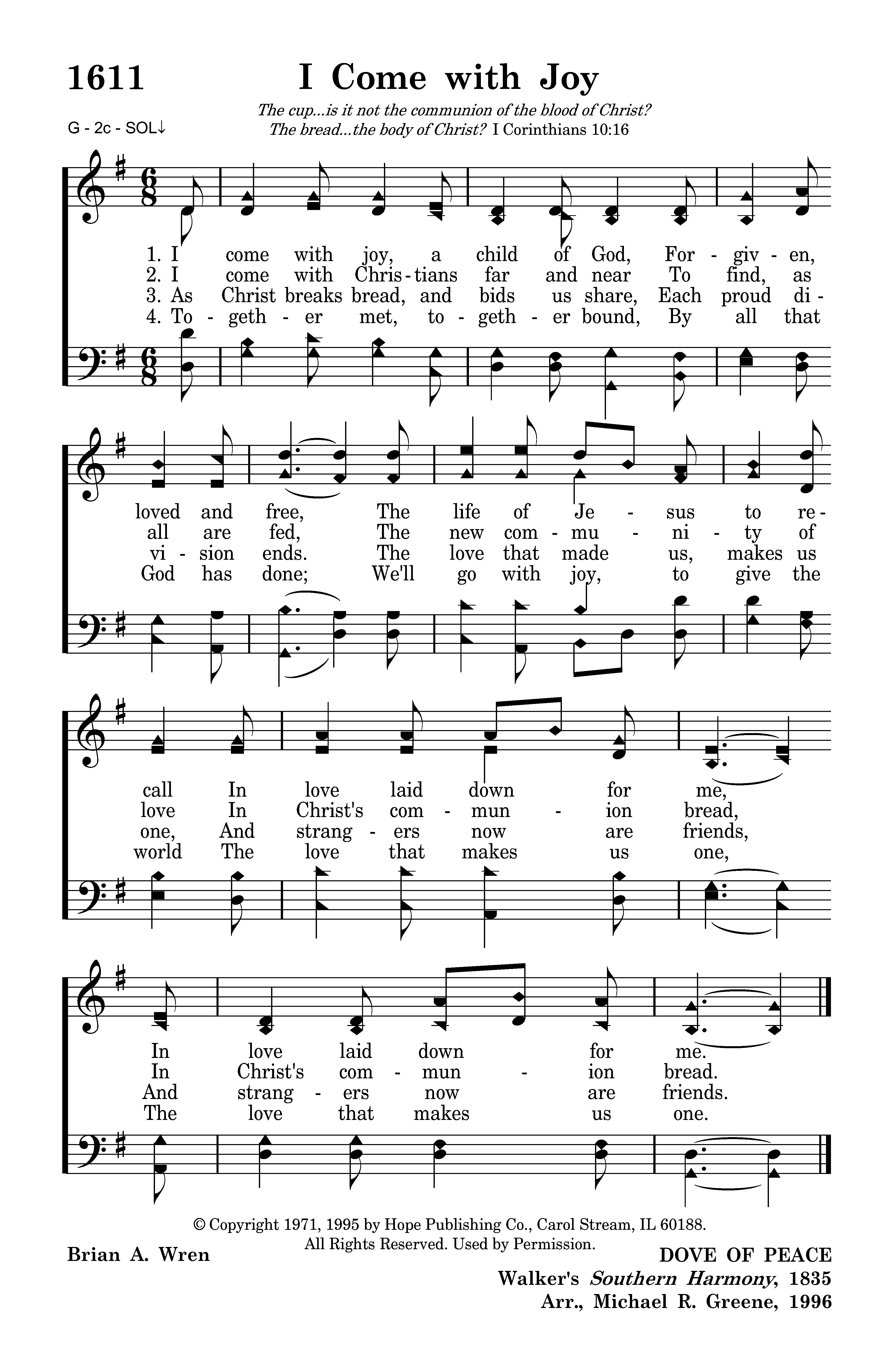 - Words Copyright © 1971, rev. 1995 by Hope Publishing. All Rights Reserved. Used by Permission.