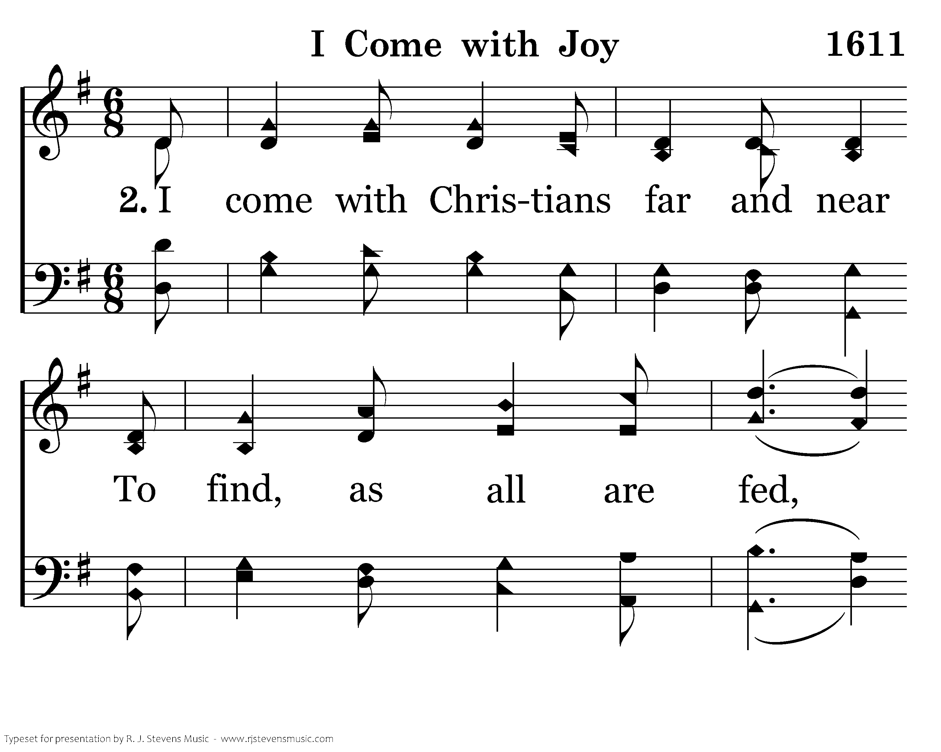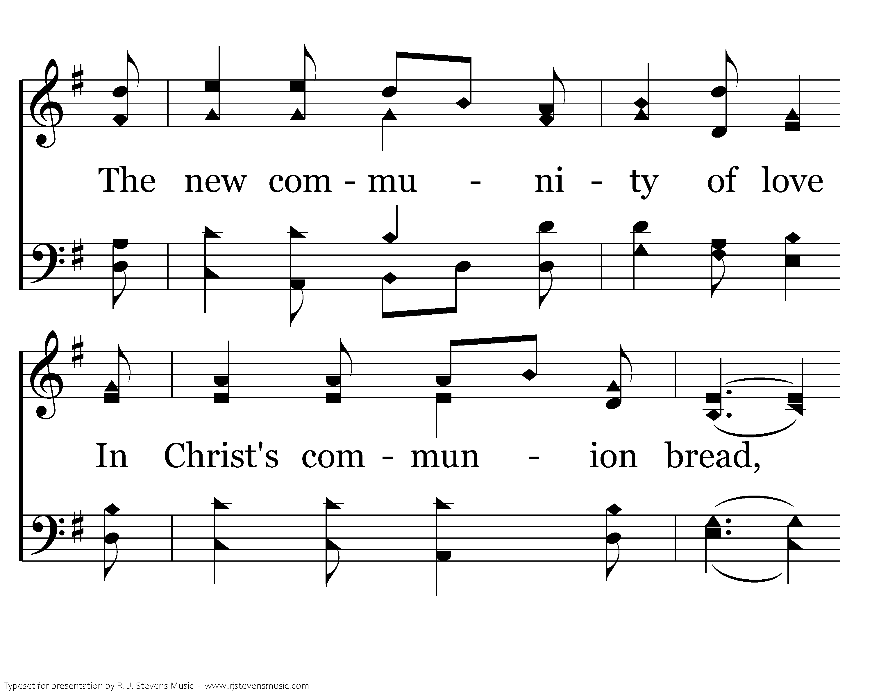 I come with Christians far and near To find, as all are fed, The new community of love In Christ's communion bread, In Christ's communion bread.