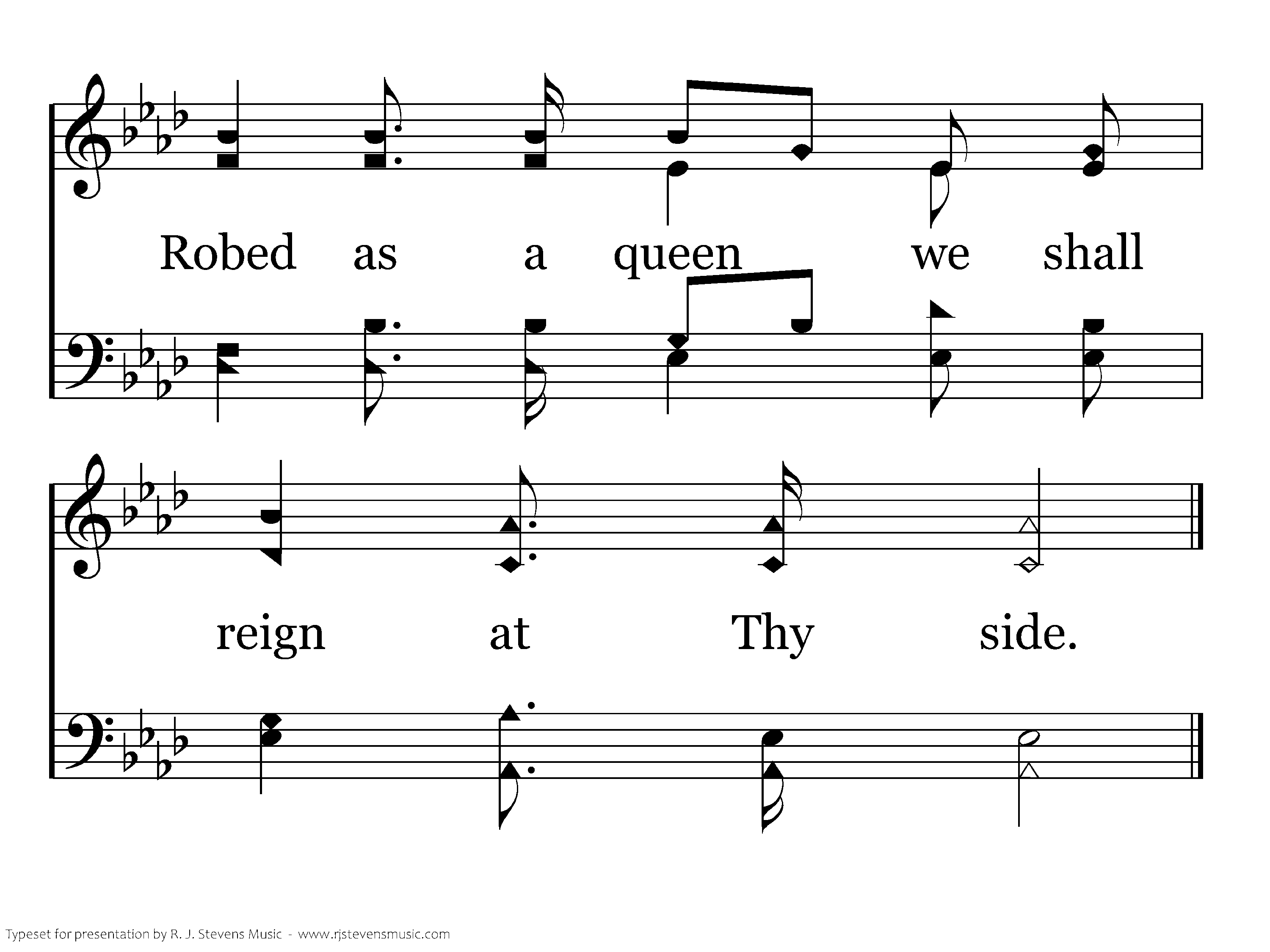 Christ, Thou alone shalt be master and owner: Thou art the bridegroom and we are the bride; Faithful to Thee, to obey and to honor, Robed as a queen we shall reign at Thy side.