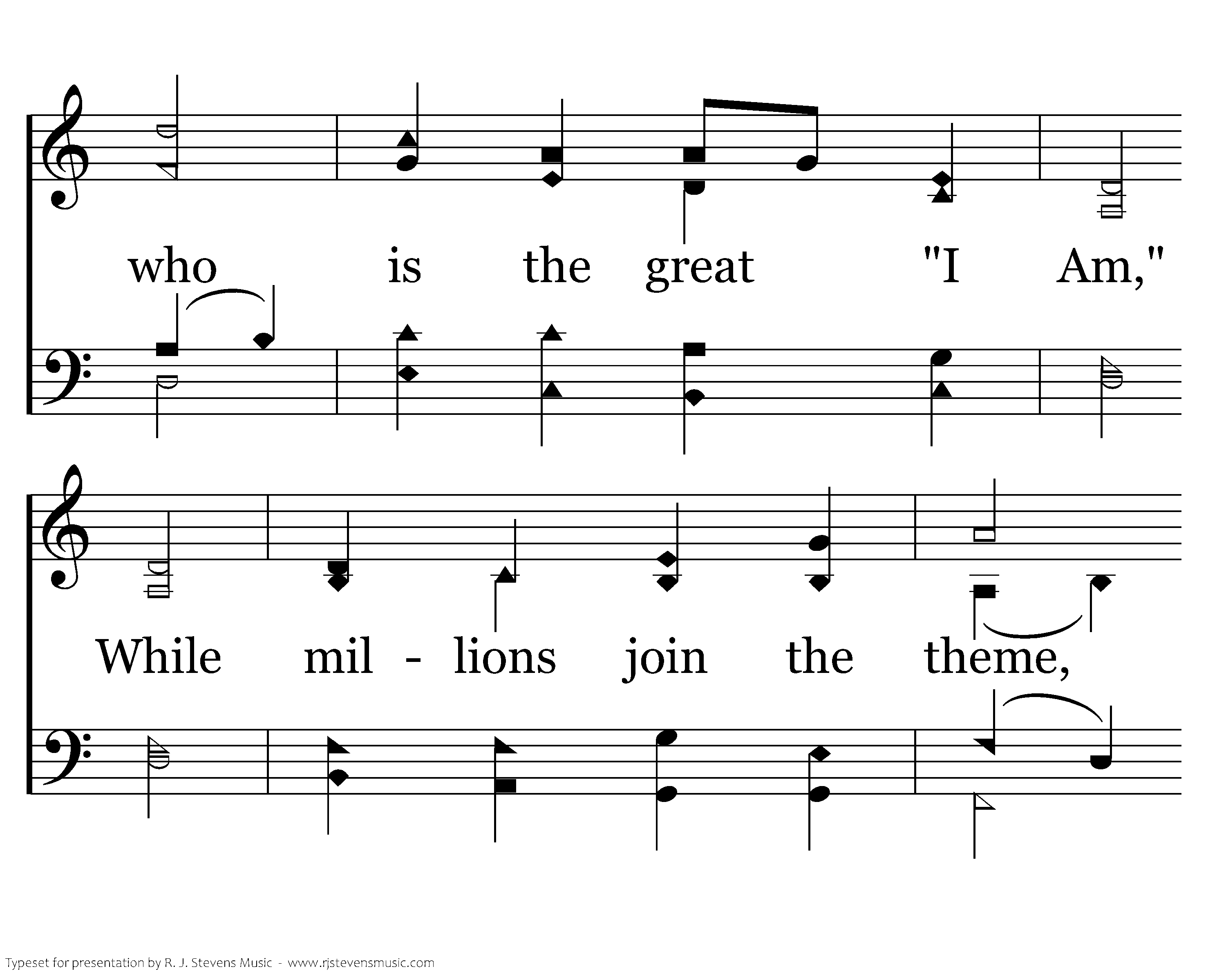 To God and to the Lamb I will sing, I will sing, To God and to the Lamb I will sing; To God and to the Lamb, who is the great "I Am," While millions join the theme, I will sing, I will sing, While millions join the theme, I will sing!