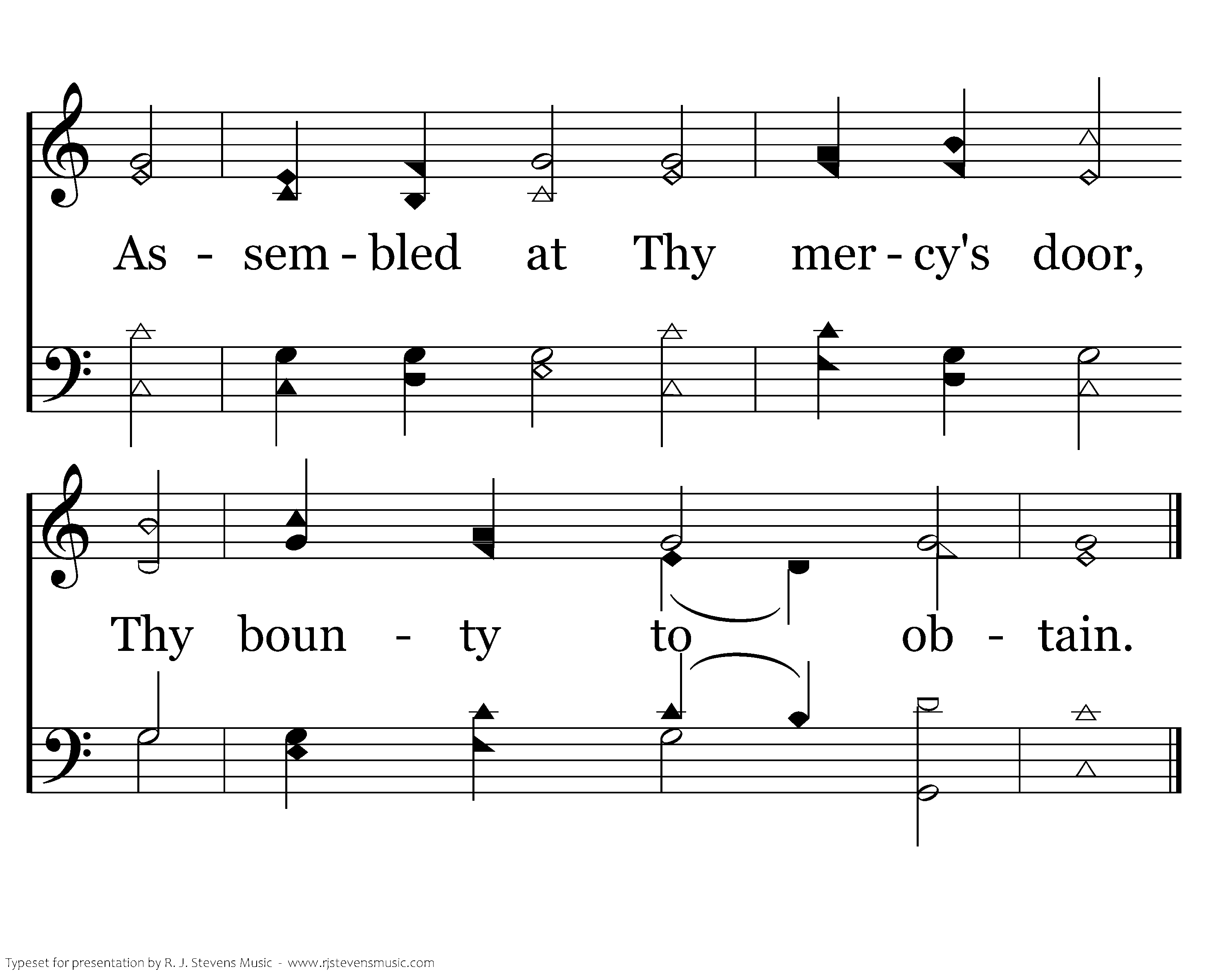 Hungry, and faint, and poor, Behold us, Lord, again Assembled at Thy mercy's door, Thy bounty to obtain.