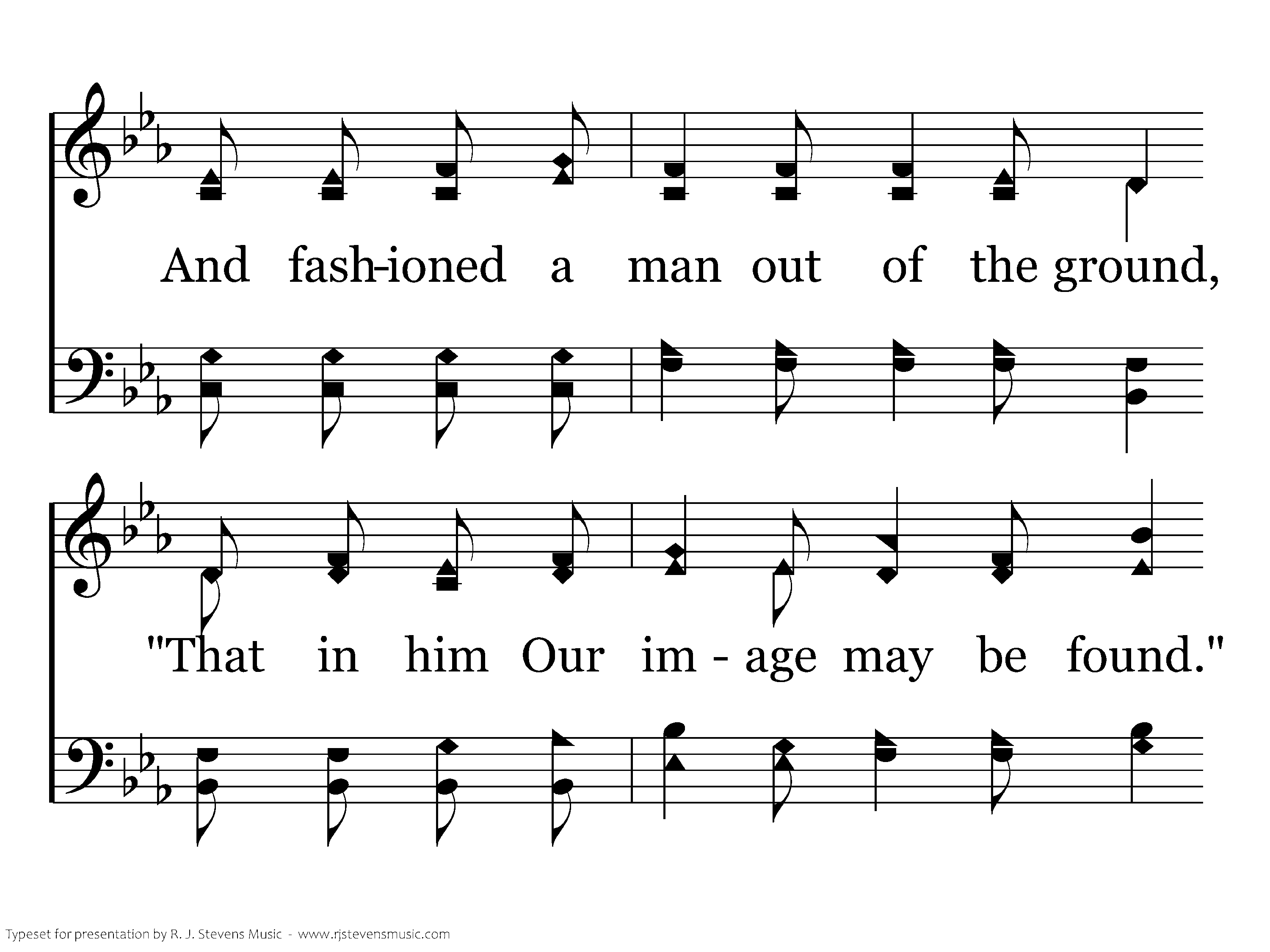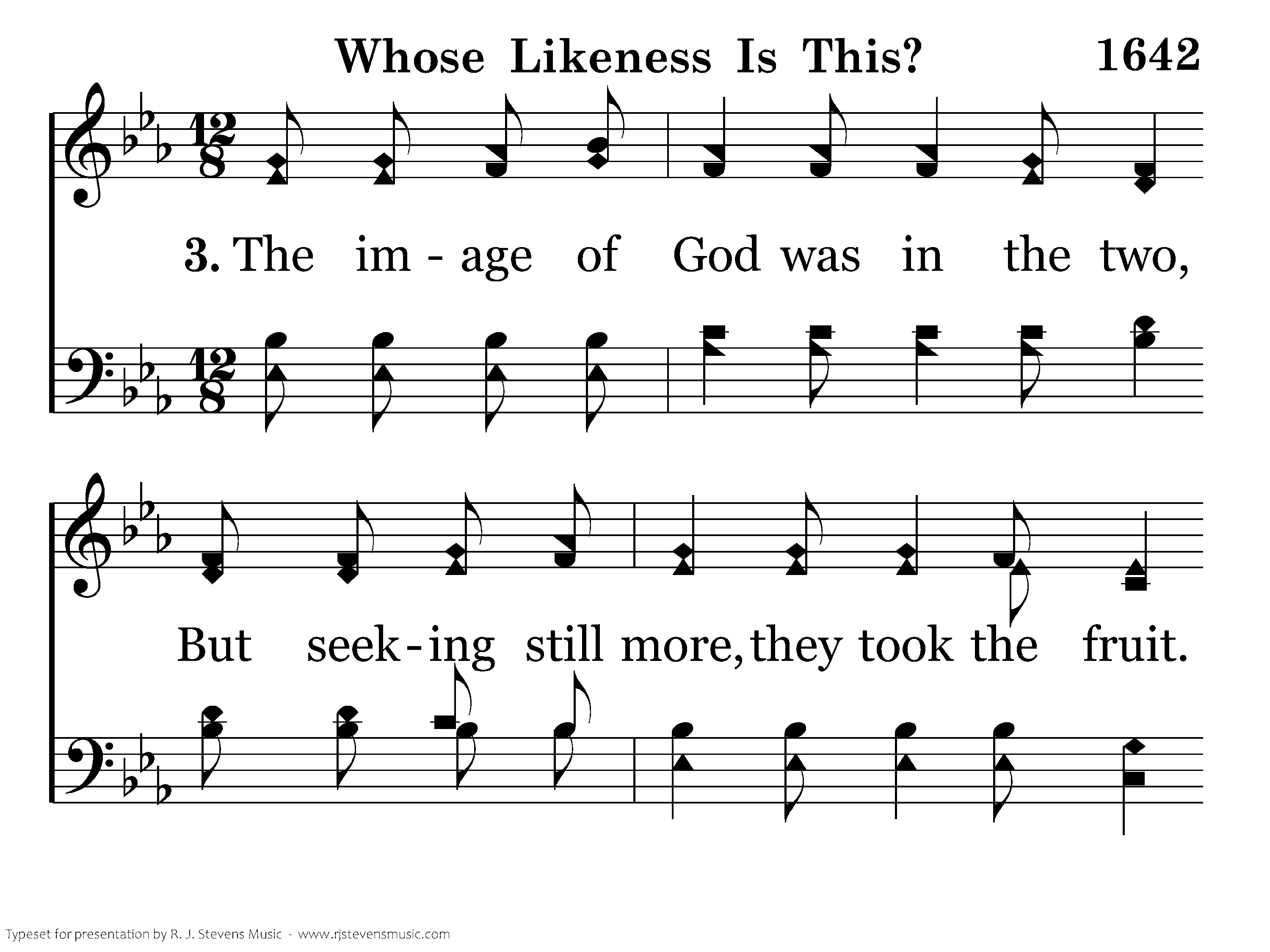 The image of God was in the two, But seeking still more, they took the fruit. These children of God betrayed His name Then fled from His presence, clothed in shame. And so thru the years, we all have sinned. Corrupting the image placed within. The Maker of all things pure and true Alone can restore what once we knew.