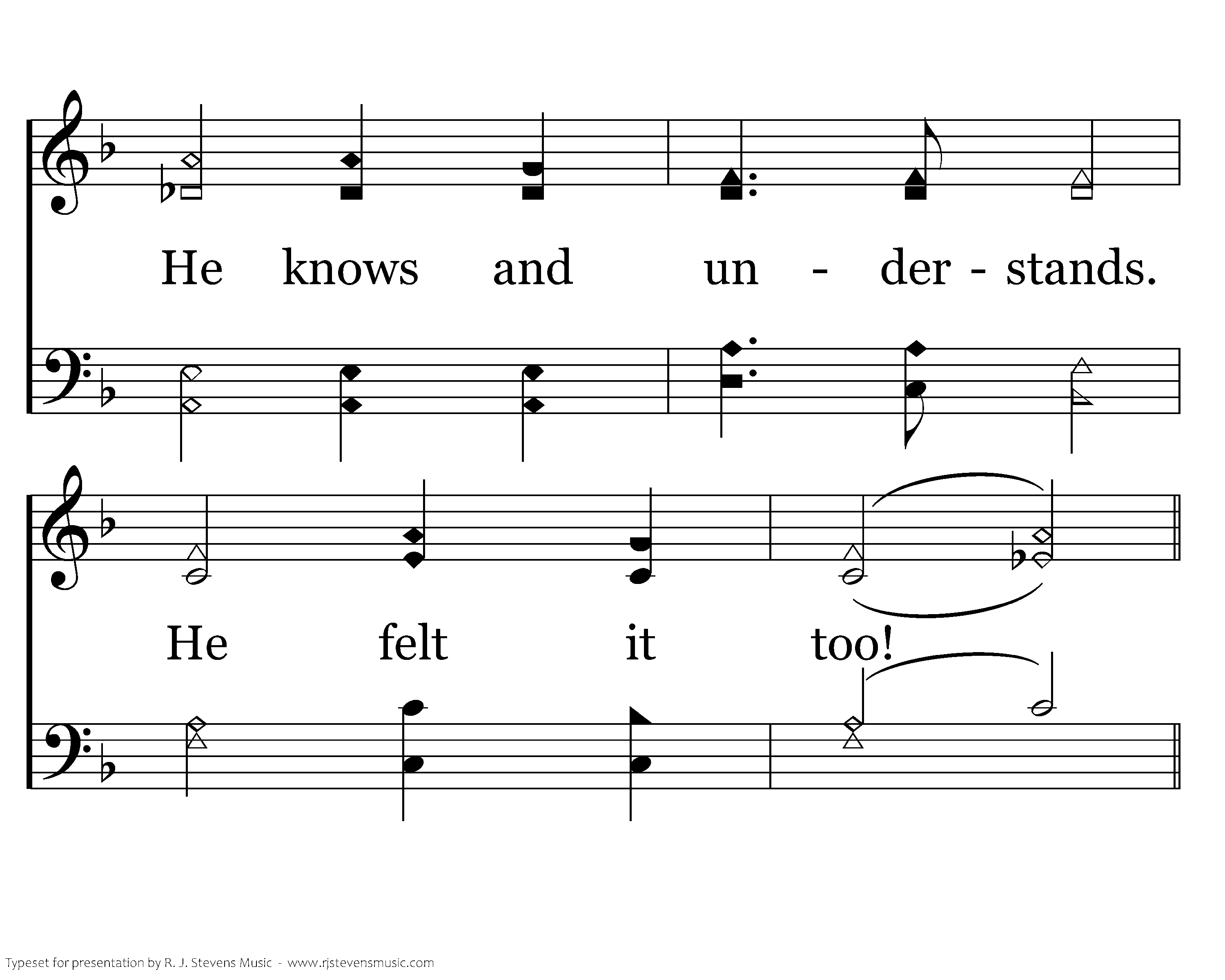 Bring Him your broken heart, So overwhelmed with pain. He knows and understands. He felt it too!