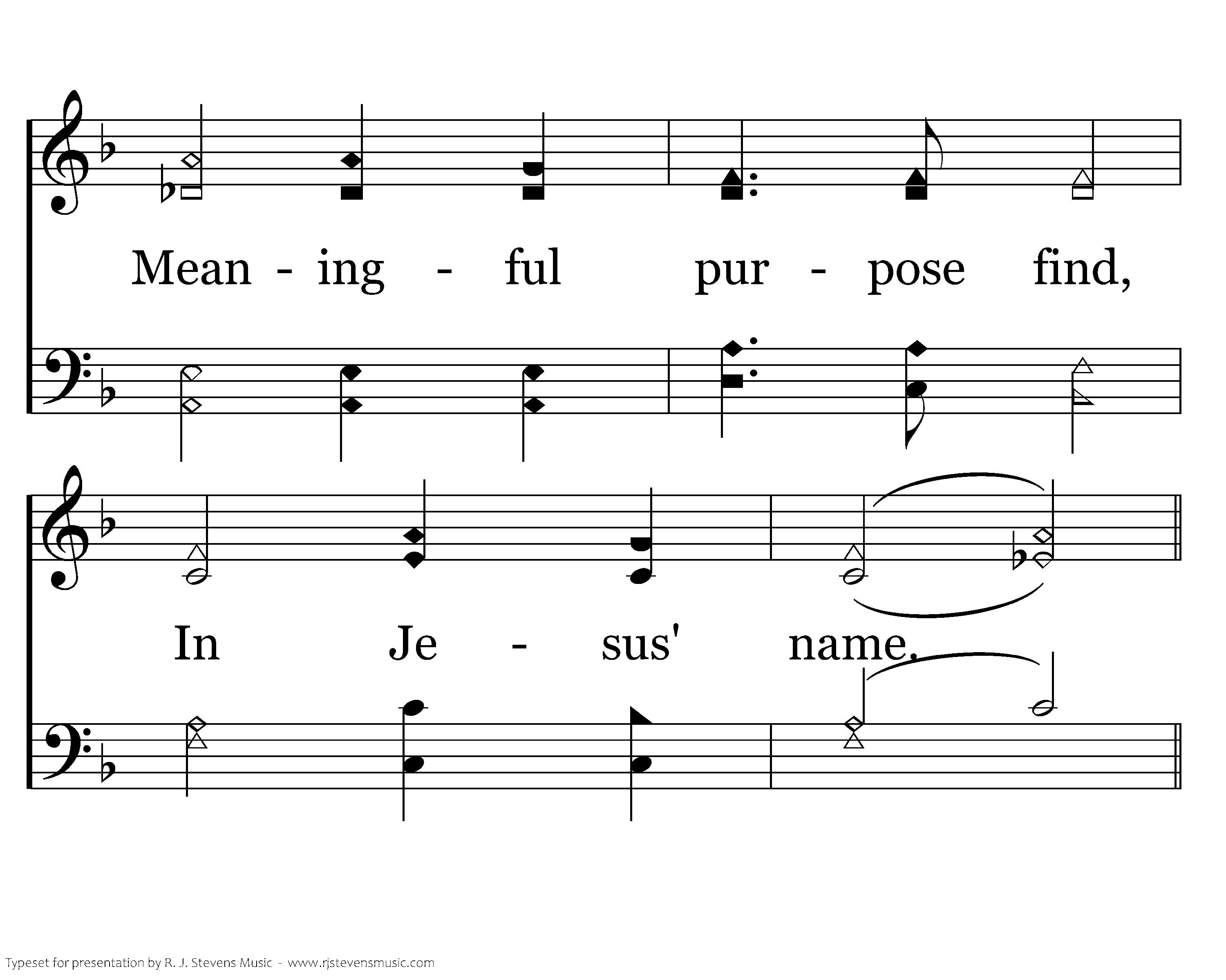 Bring Him your broken life, Aimless and discontent. Meaningful purpose find, In Jesus' name.