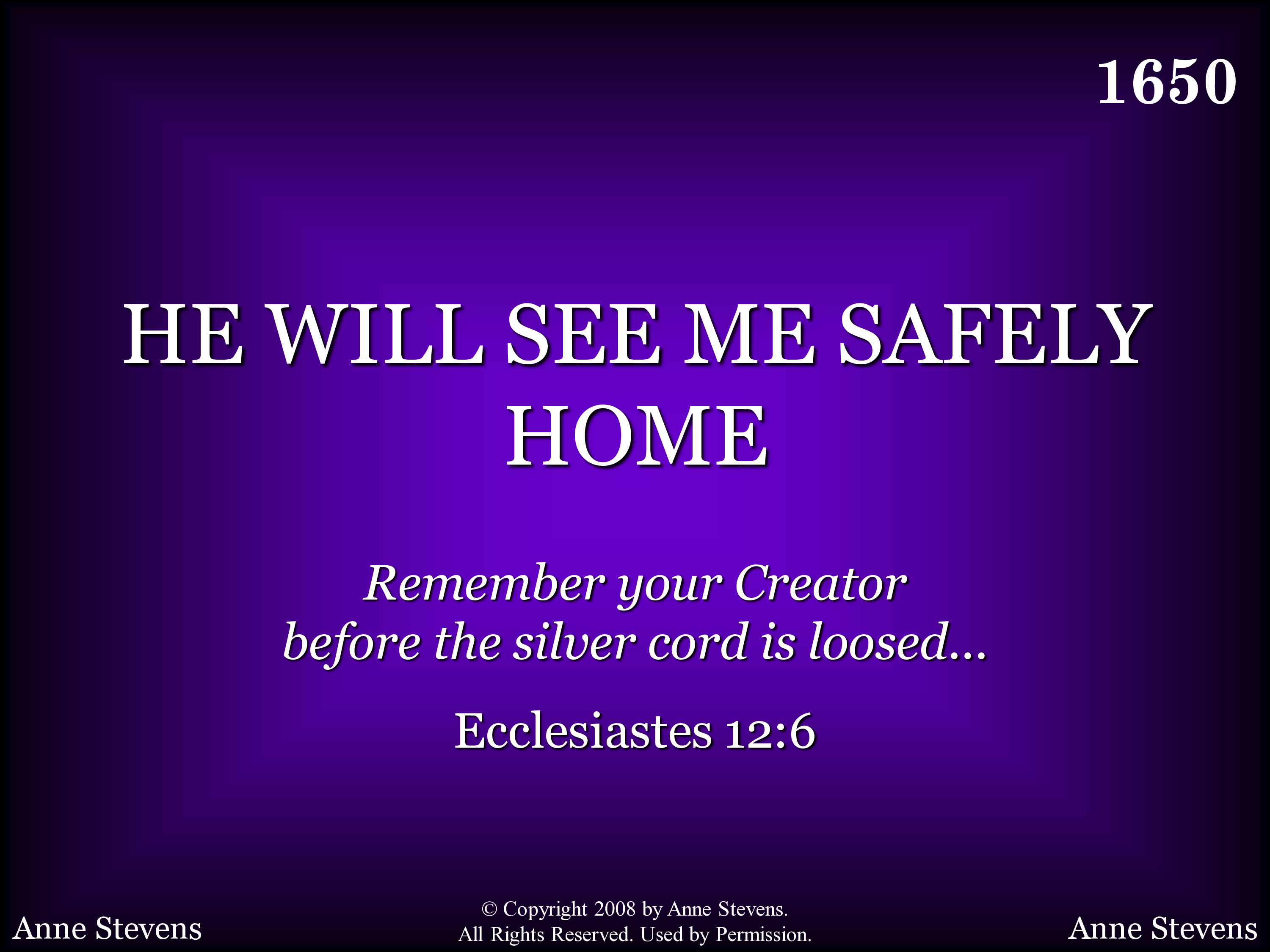 - Copyright © 2008 by Anne Stevens. All Rights Reserved. Used by Permission.