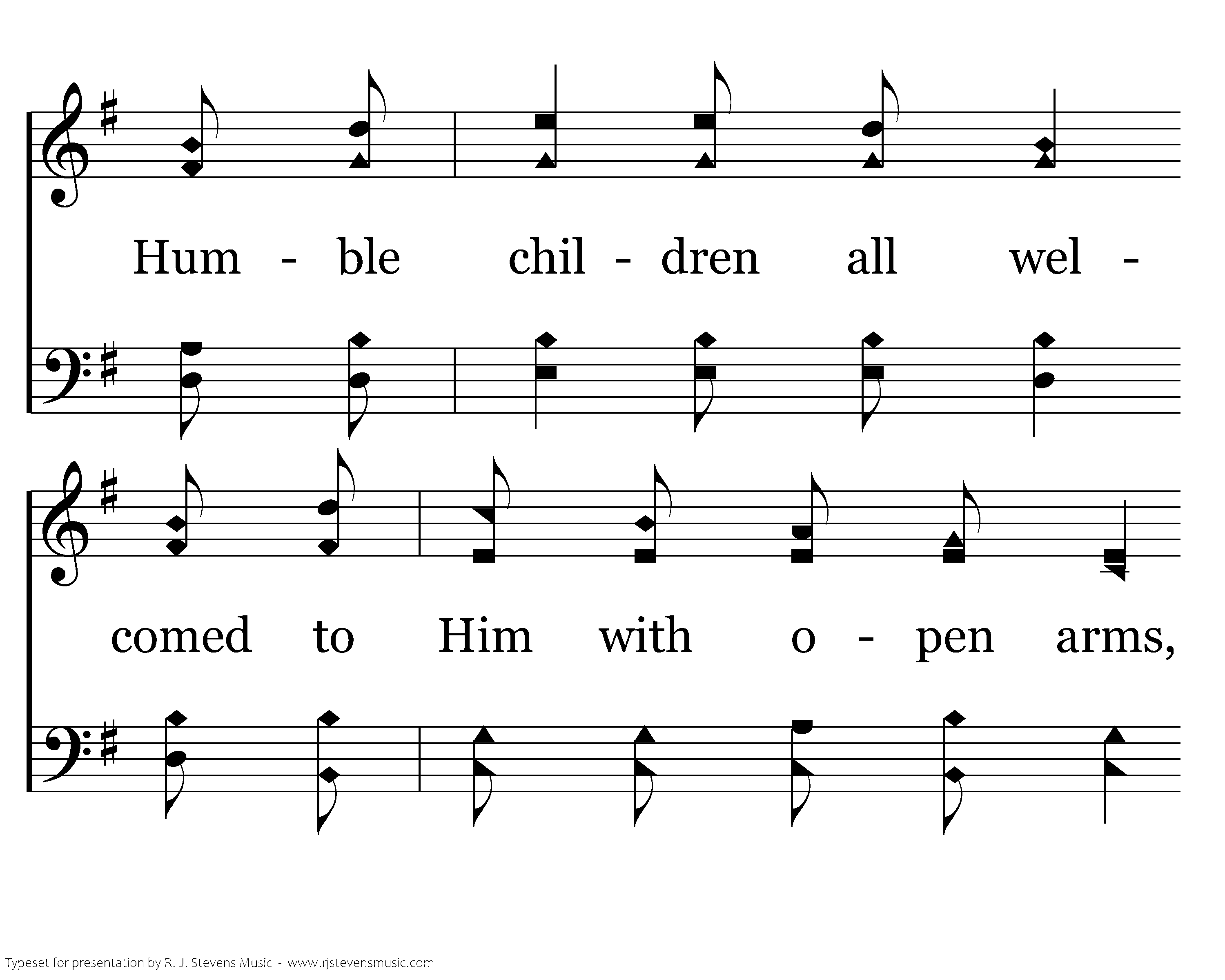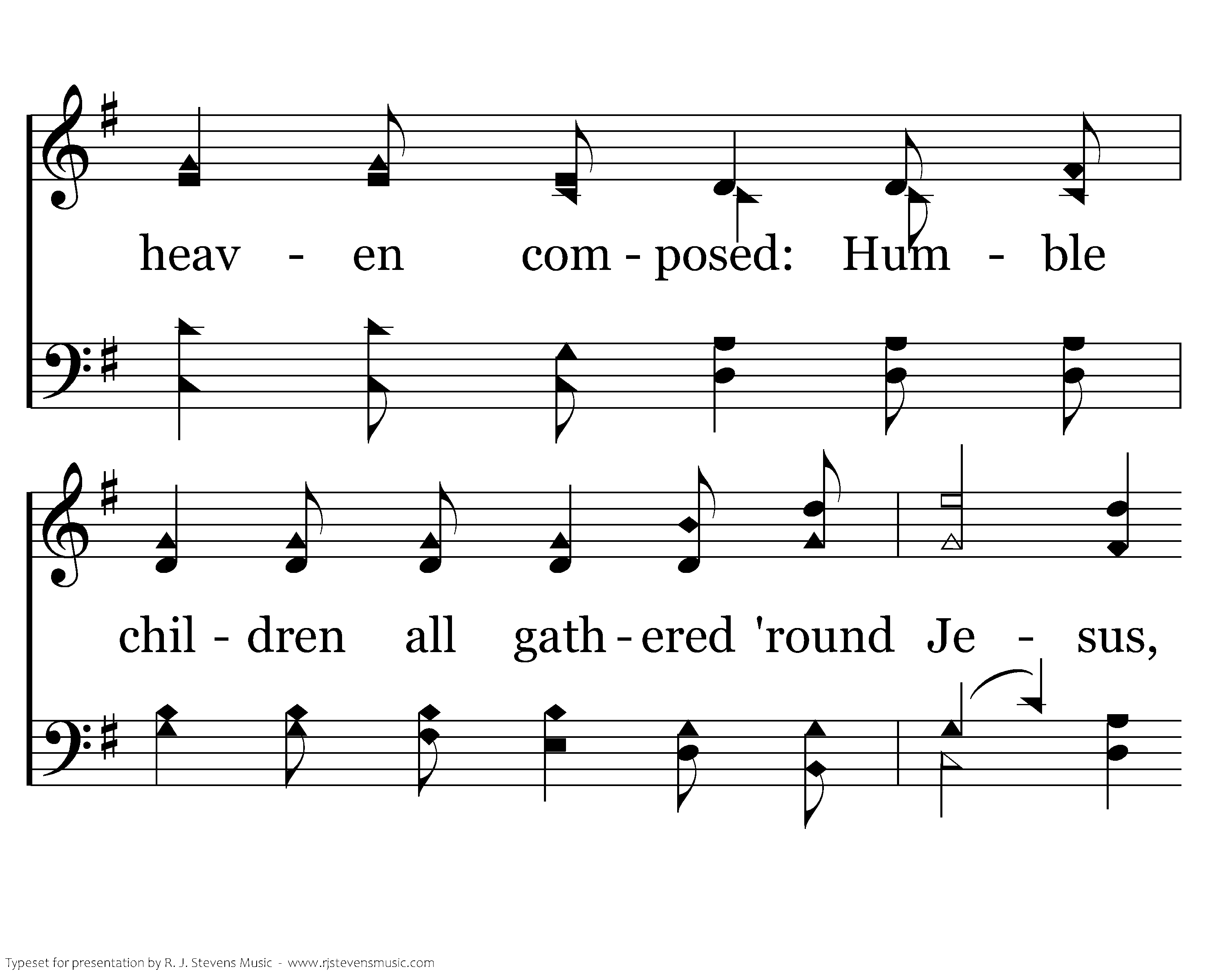 The disciples debated with envy and pride Who would rise to be greatest among them. But the Lord called a child and He placed him by His side Saying, "Such will be great in My kingdom." Of such is the kingdom of heaven composed: Humble children all gathered 'round Jesus, Humble children all welcomed to Him with open arms, And each one whom He touches He blesses.