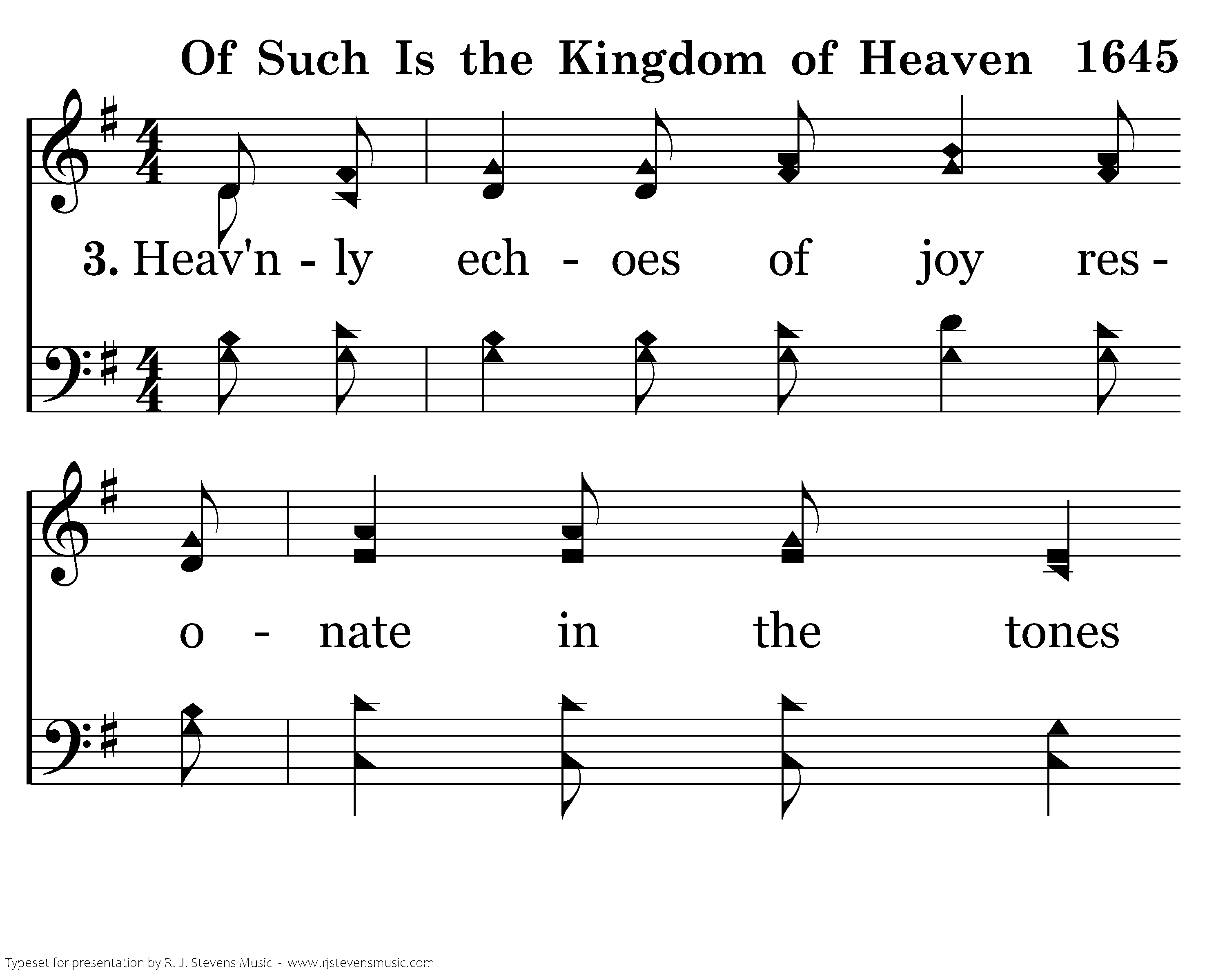 Heav'nly echoes of joy resonate in the tones Of our children whose voices are ringing With the host of God's children assembled 'round His throne As the praise of the Father they're singing. Of such is the kingdom of heaven composed: Joyful children with faith sweet and simple, Joyful children with voices perfecting songs of praise As "Hosanna!" rings out thru the temple.