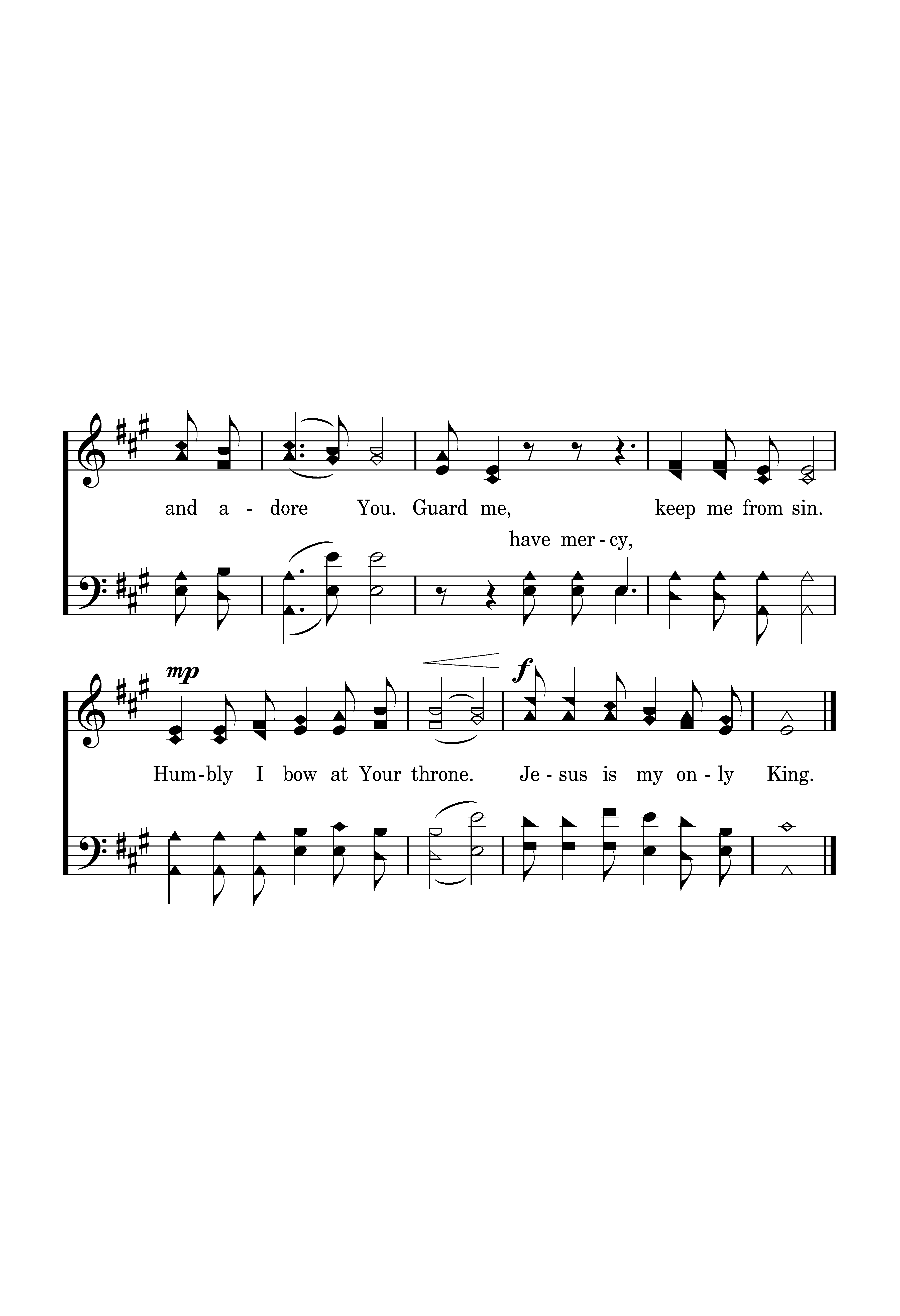 What would I do without You, my God? My life is to serve and adore You. Guard me, keep me from sin. Humbly I bow at Your throne. Jesus is my only King.