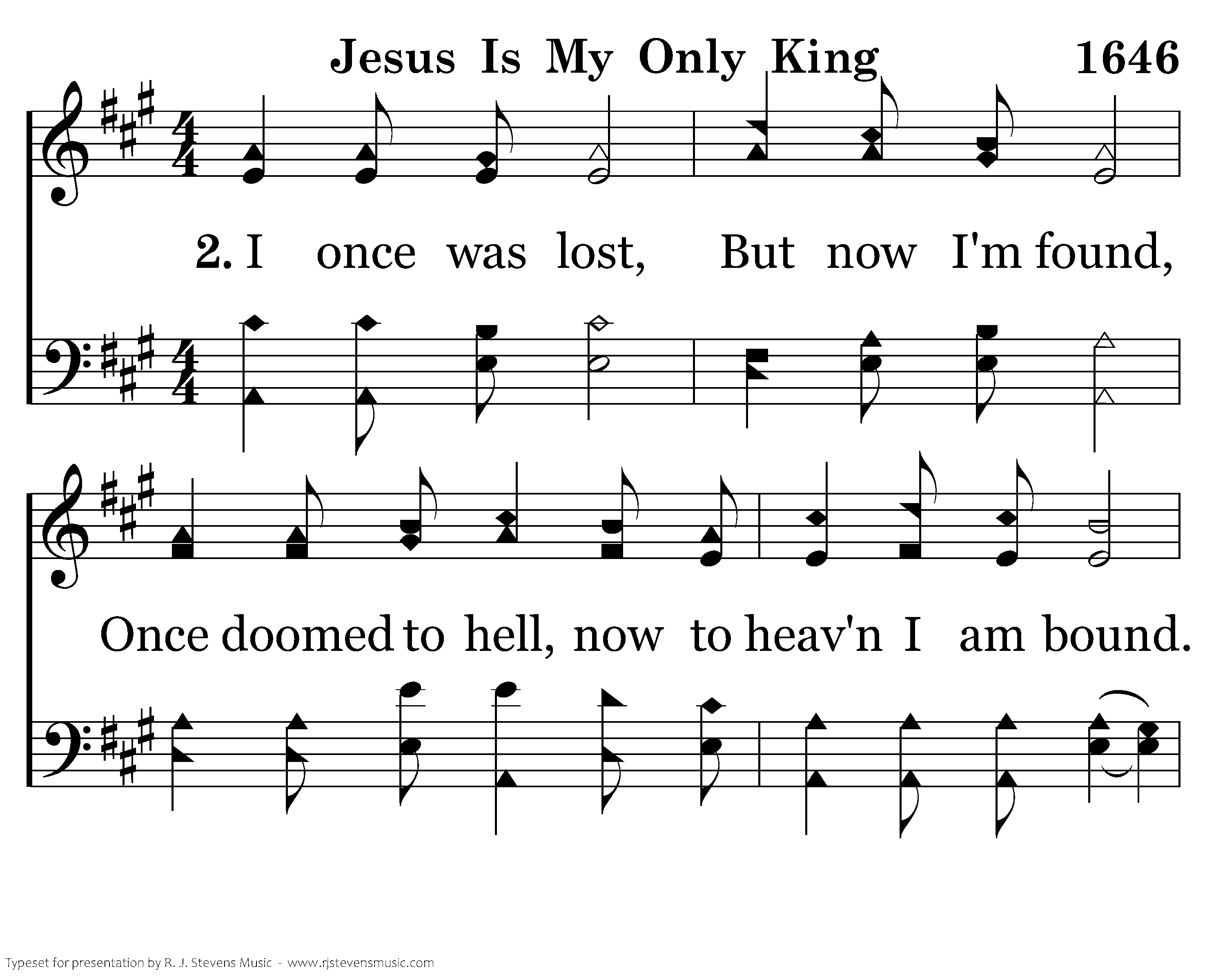 I once was lost, But now I'm found, Once doomed to hell, now to heav'n I am bound. Almighty God, Father of all, Spirit within me, please hear my call