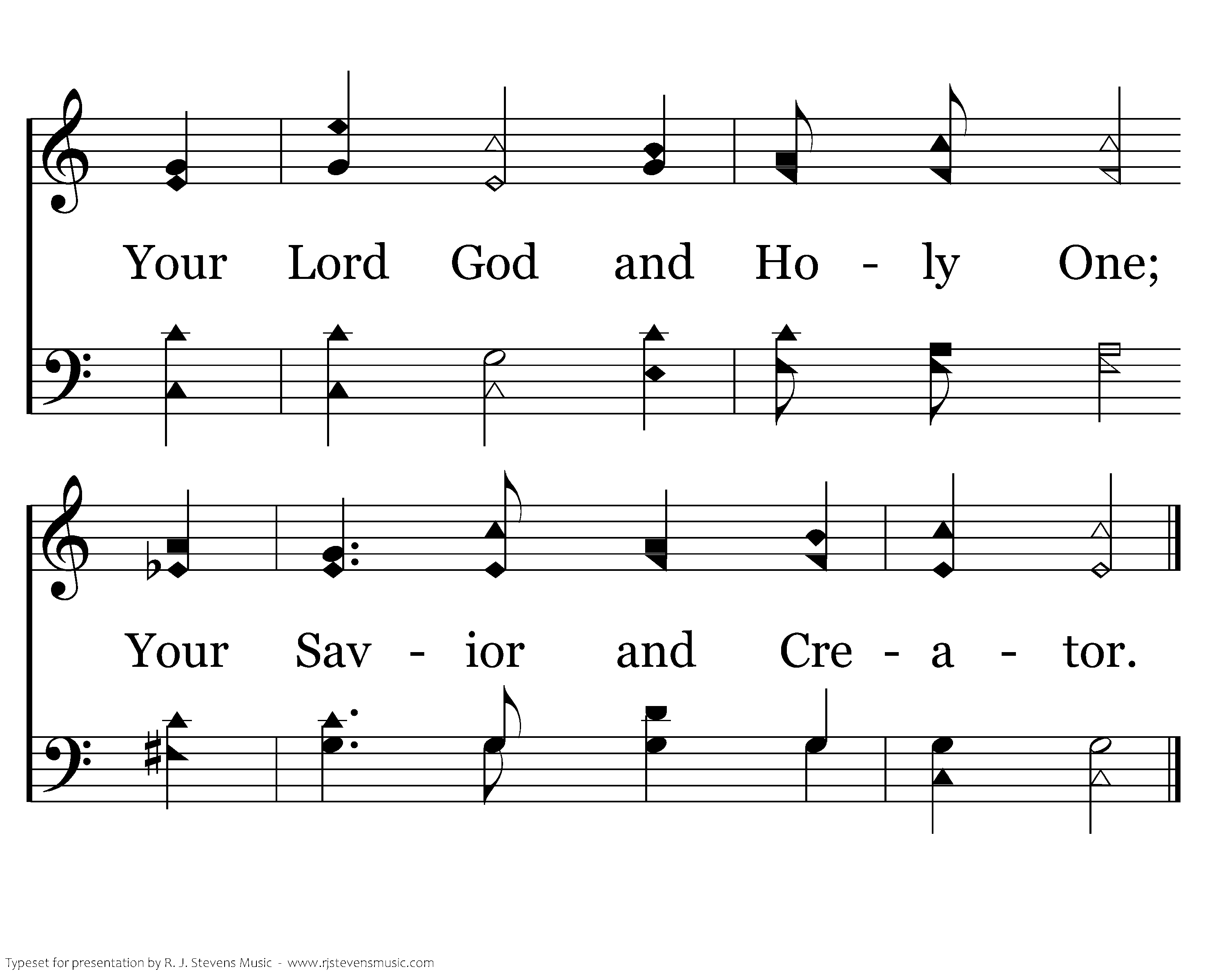 Thru waters I'll be with you; Thru fire you'll not be burned. Your Lord God and Holy One; Your Savior and Creator.