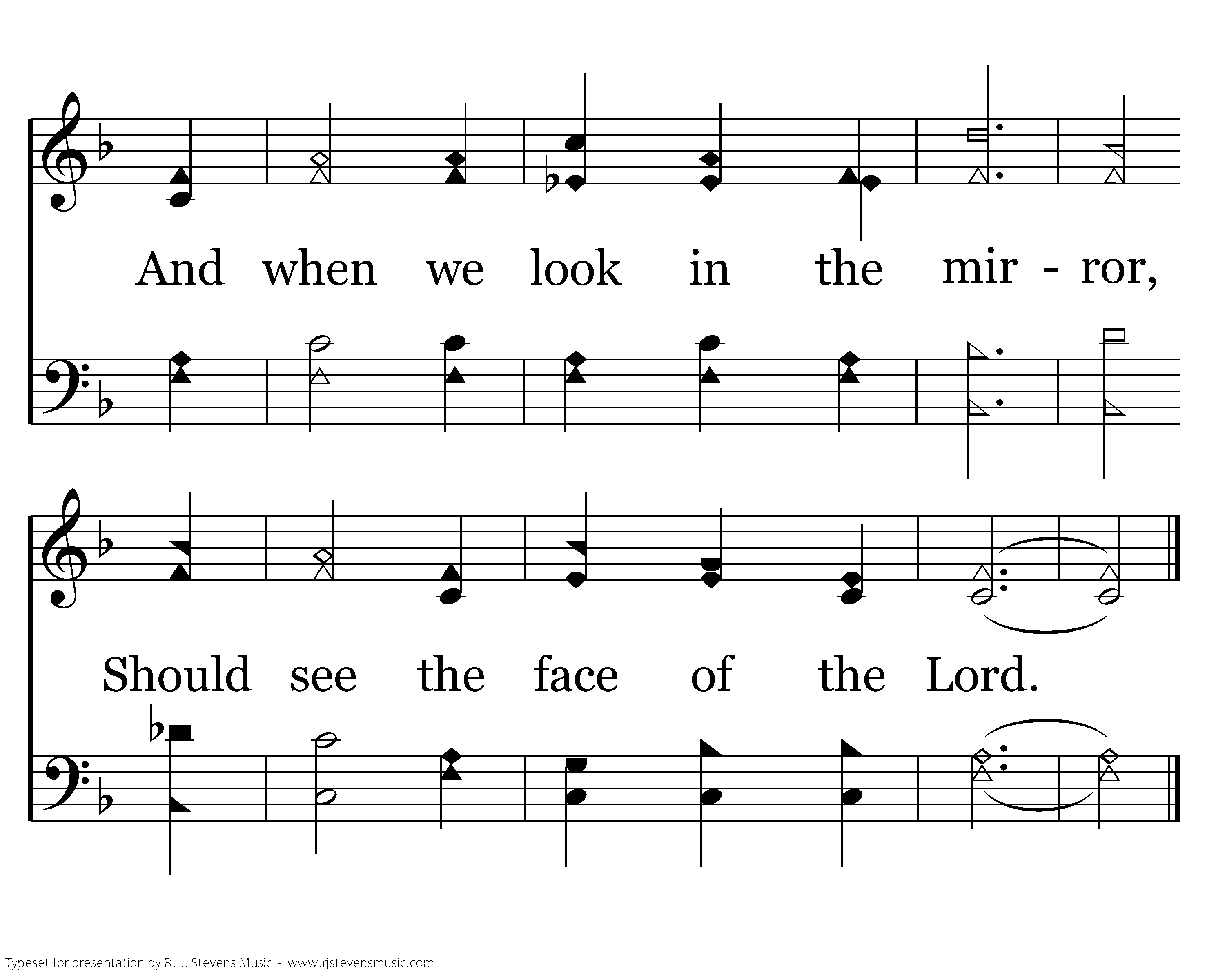 We must be the reflection, Called to be light in the world; And when we look in the mirror, Should see the face of the Lord.