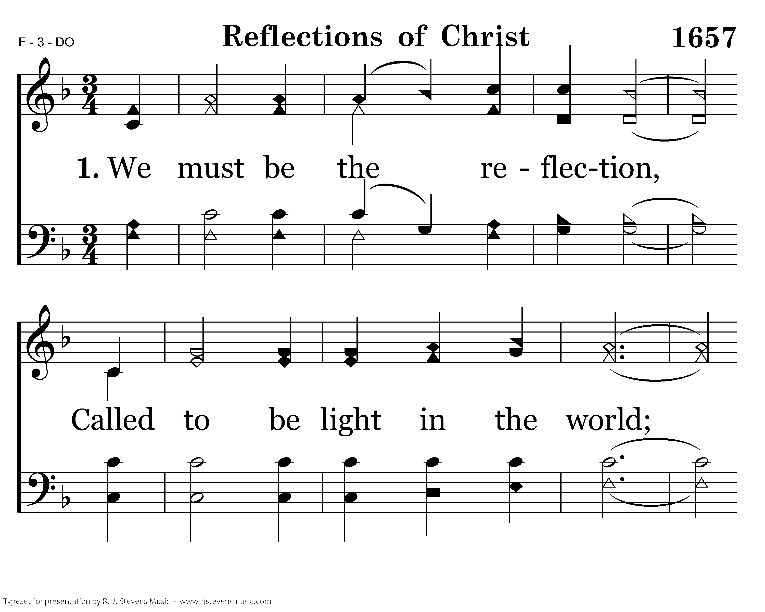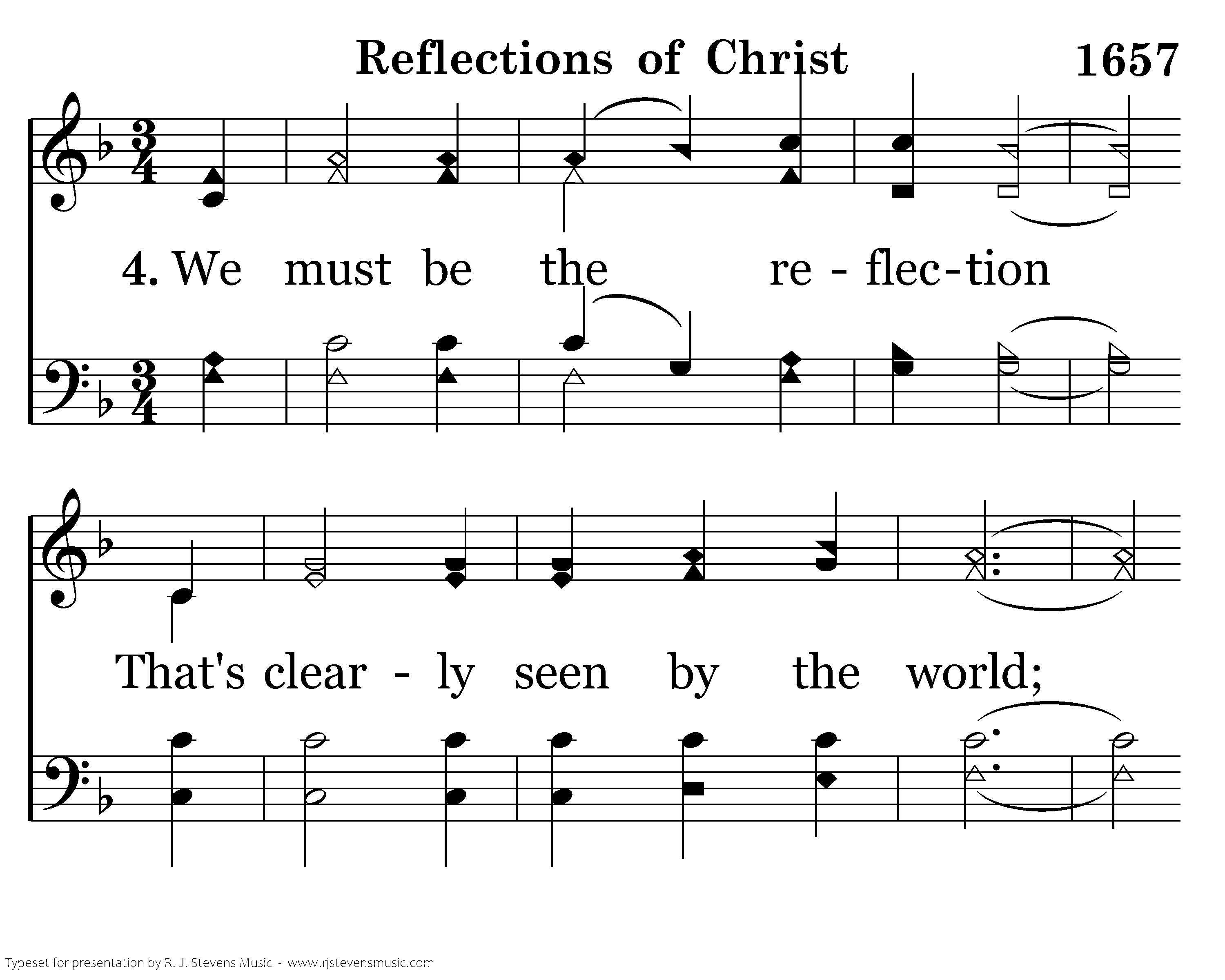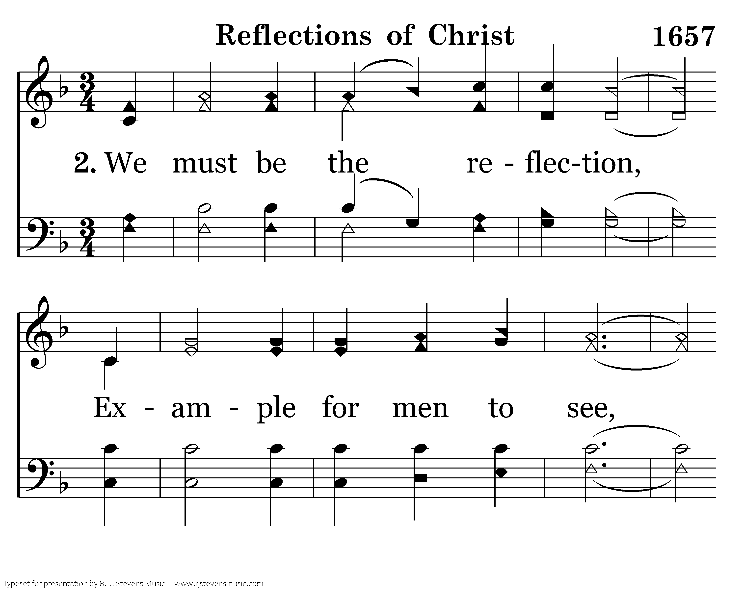 We must be the reflection Of what Christ taught us to give; We do things good, right and holy That all the lost ones may live.