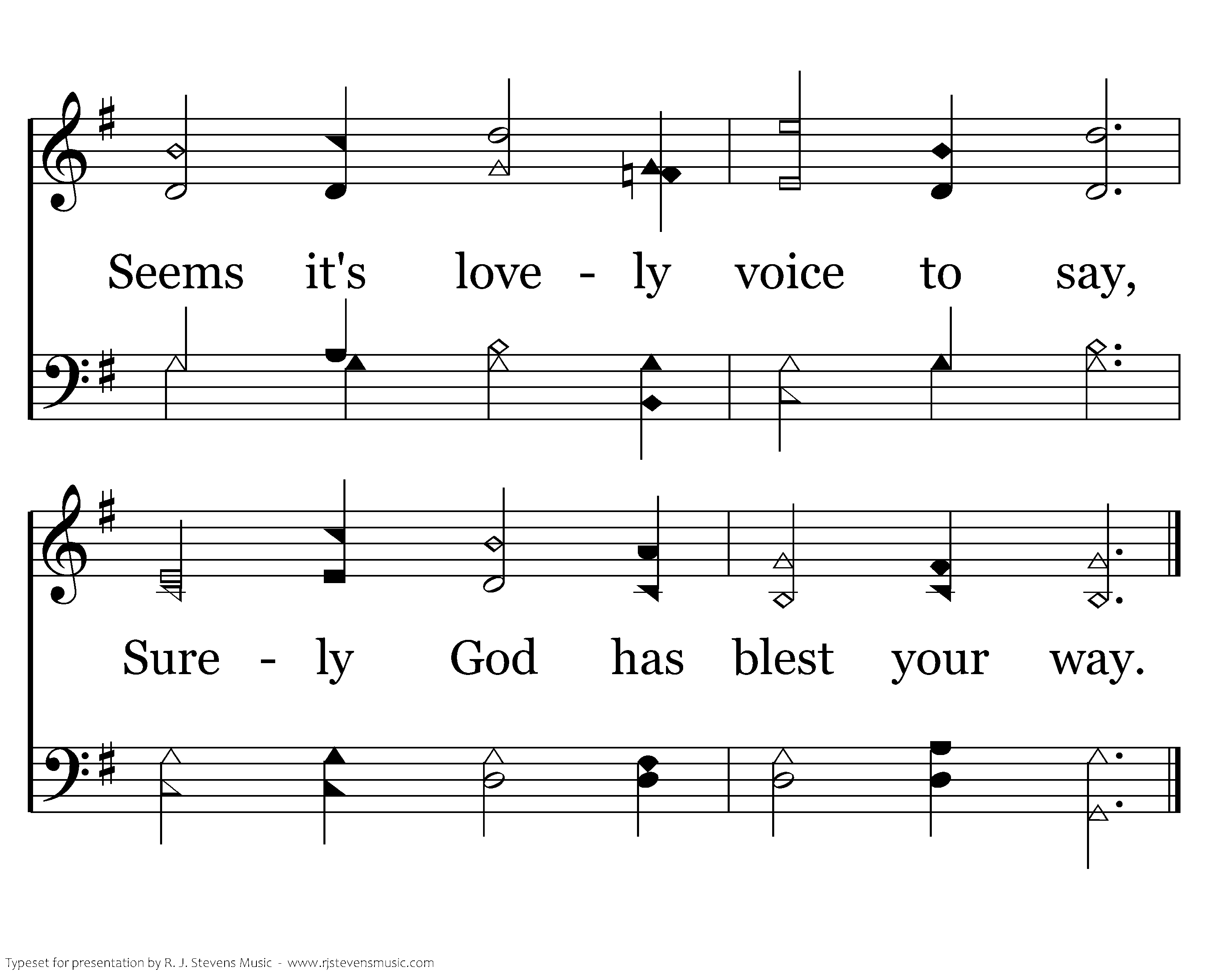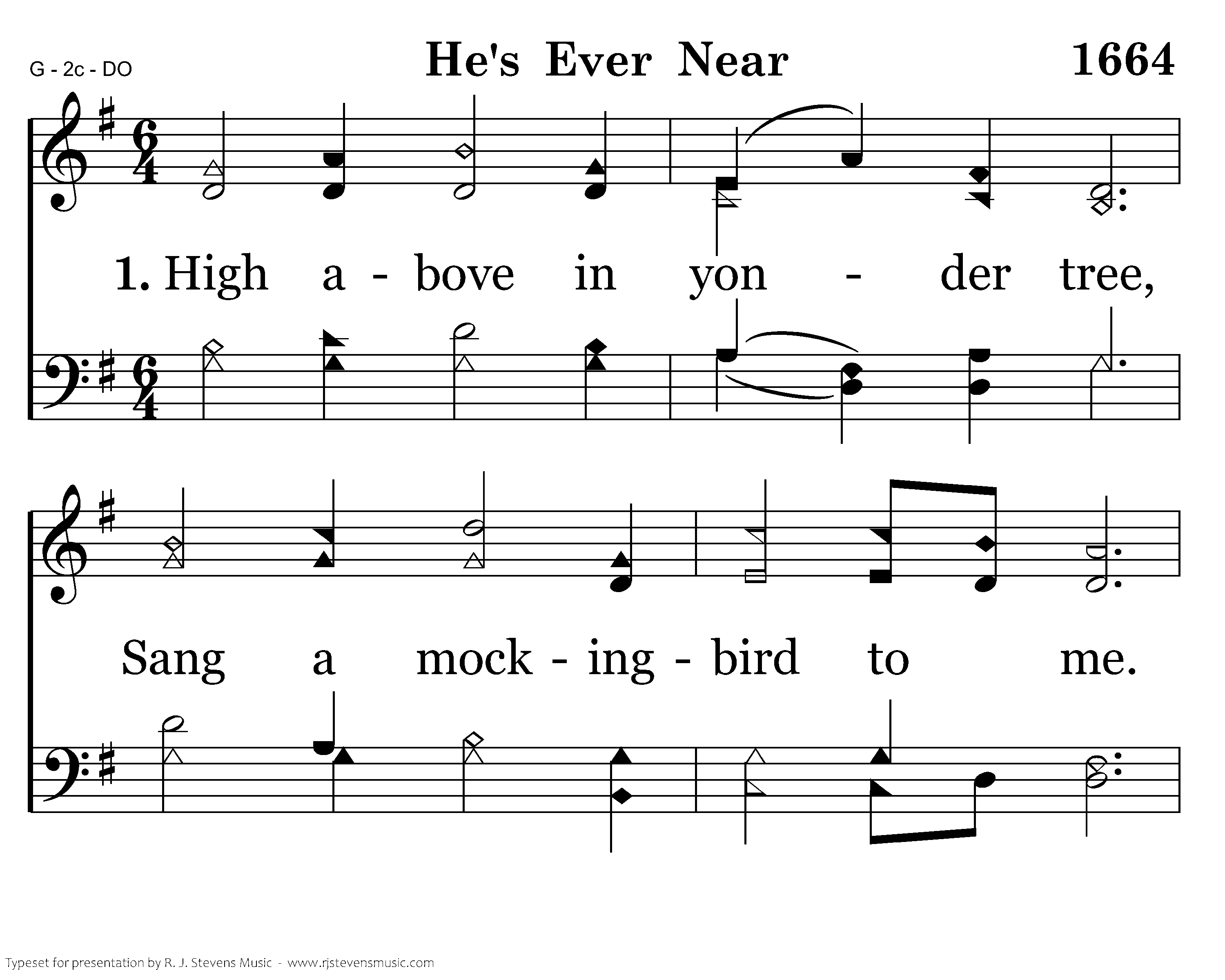 High above in yonder tree, Sang a mockingbird to me. Seems it's lovely voice to say, Surely God has blest your way.