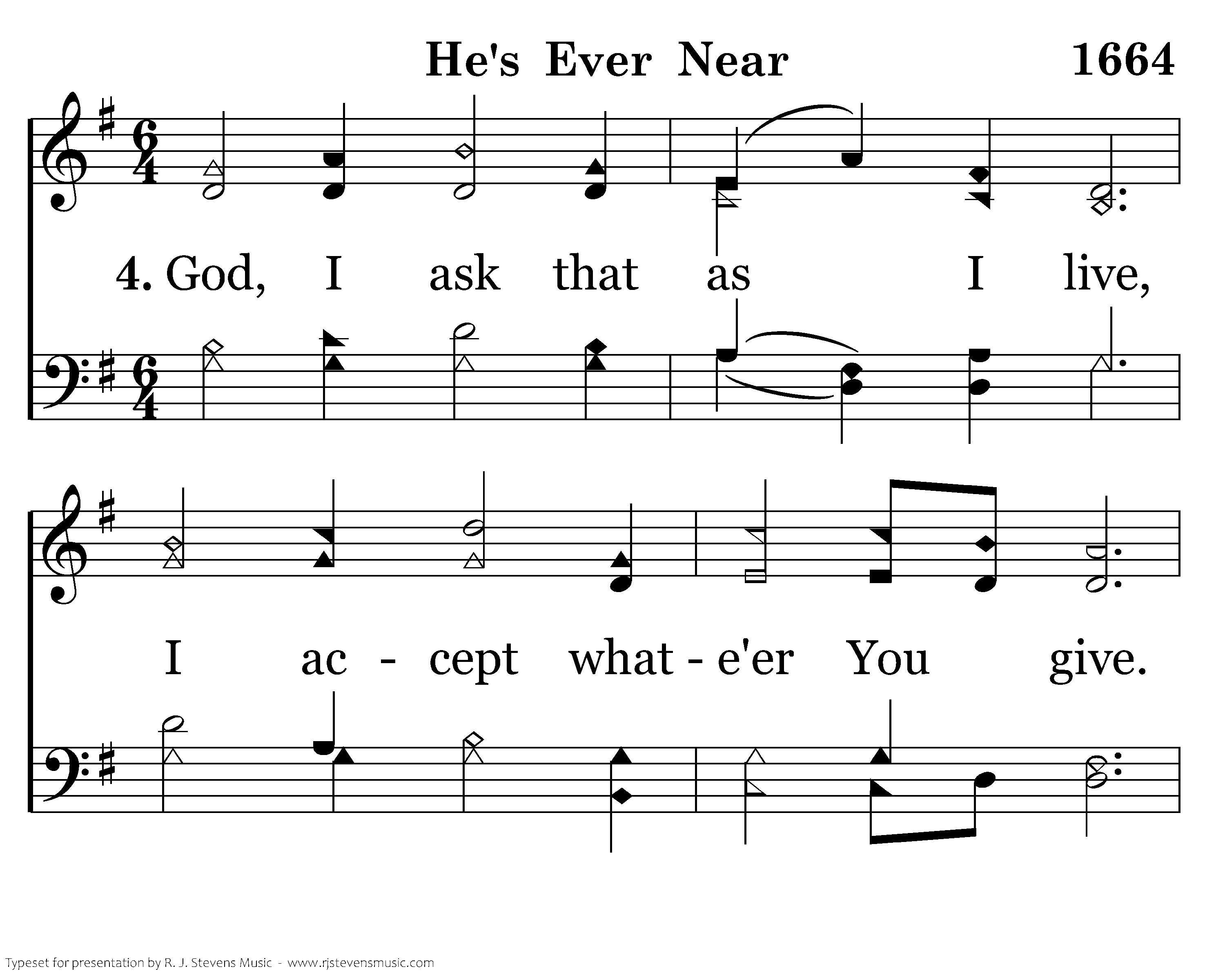 God, I ask that as I live, I accept whate'er You give. Touch my heart, my fears to quell; Oft remind that all is well.