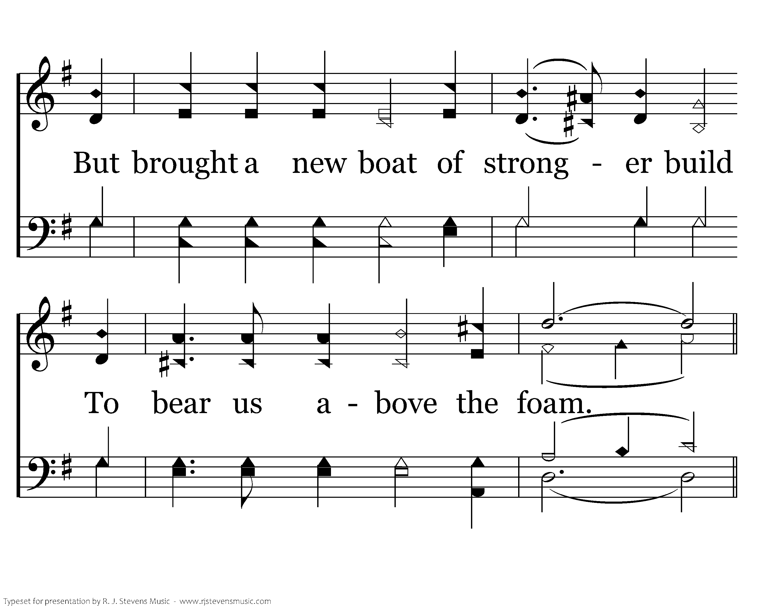 He did not stop the waves of sin Which feign would our souls in death consume, But brought a new boat of stronger build To bear us above the foam.