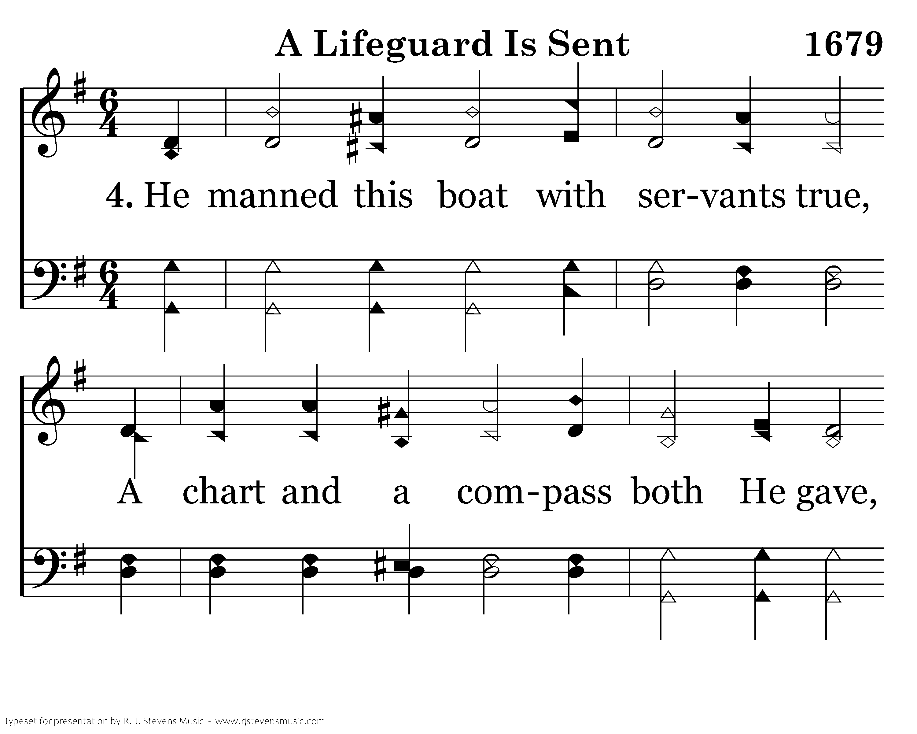 He manned this boat with servants true, A chart and a compass both He gave, But died in a struggle with the foe Whose souls He had come to save.