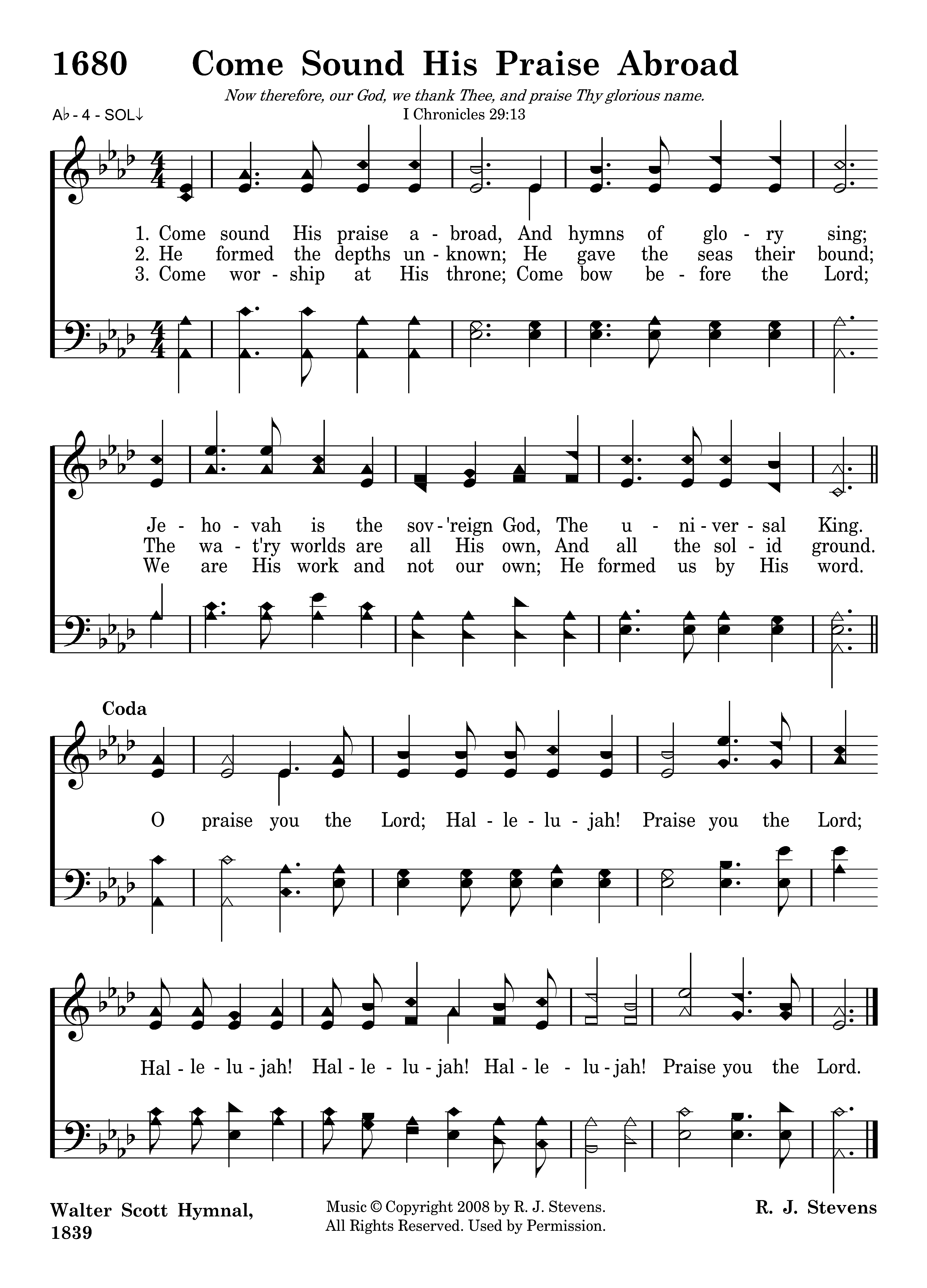 | Title | COME SOUND HIS PRAISE ABROAD |