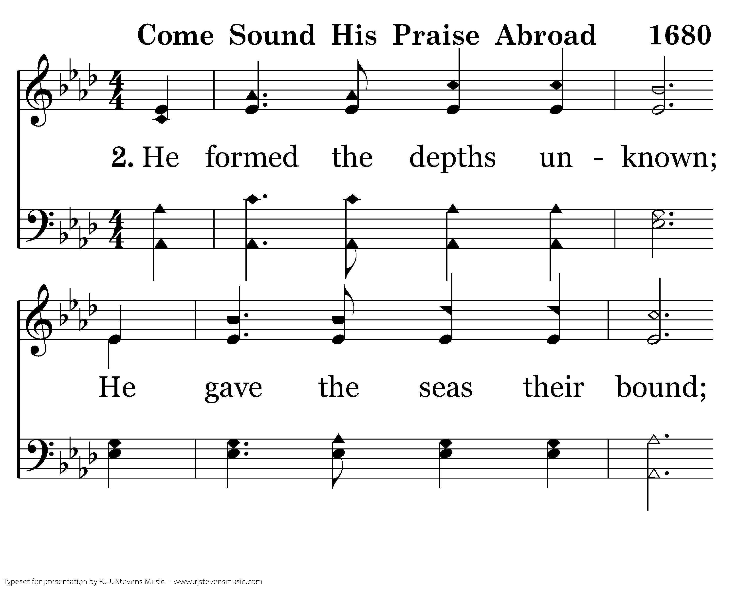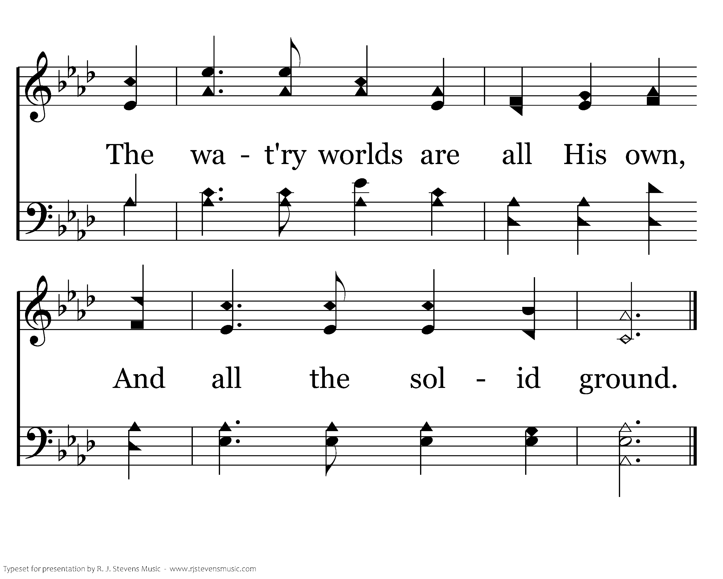 He formed the depths unknown; He gave the seas their bound; The wat'ry worlds are all His own, And all the solid ground.