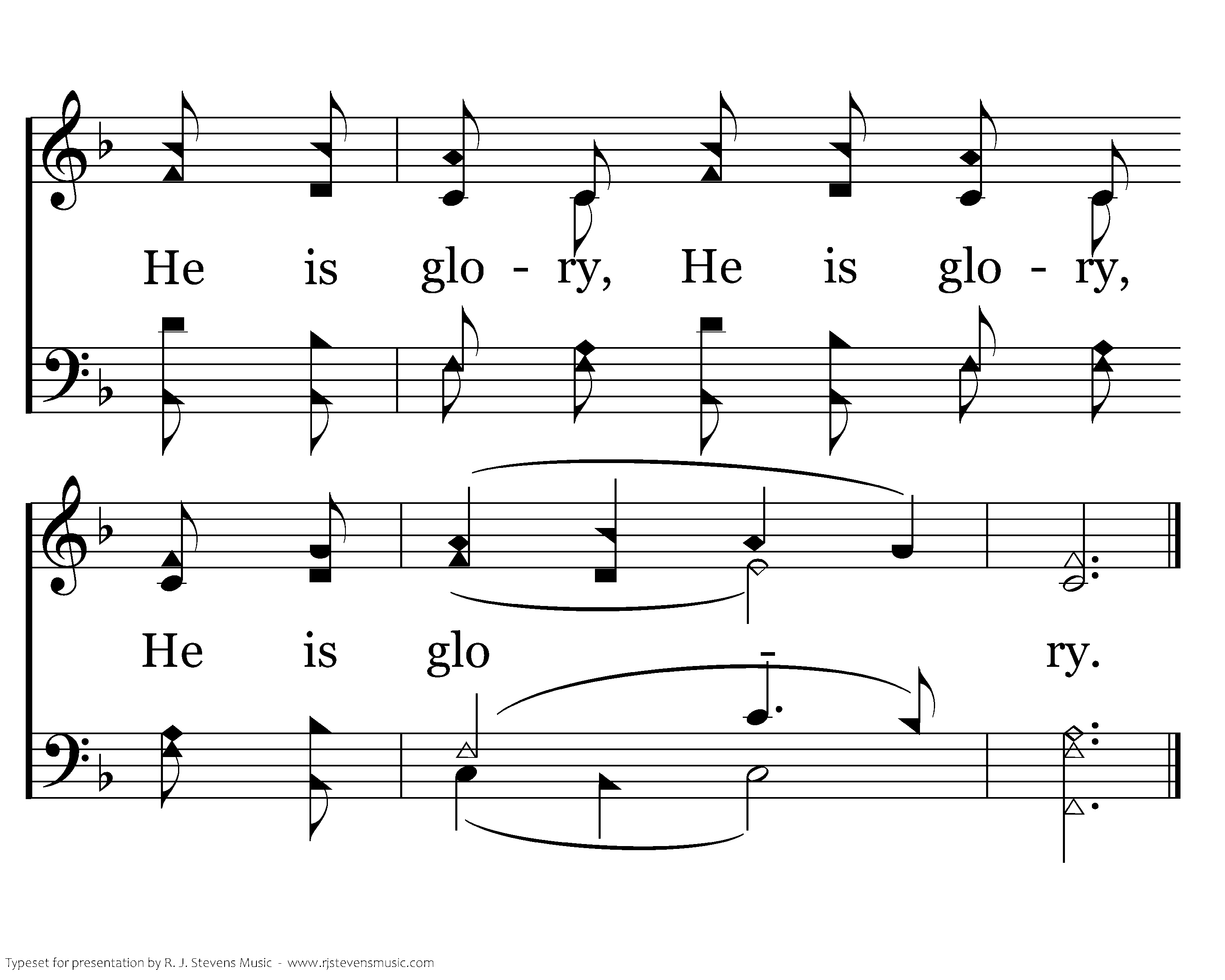 There is glory just one glory of the sun. There is glory just one glory of the moon; But the glory of all glories is the Son of God, He is glory, He is glory, He is glory.