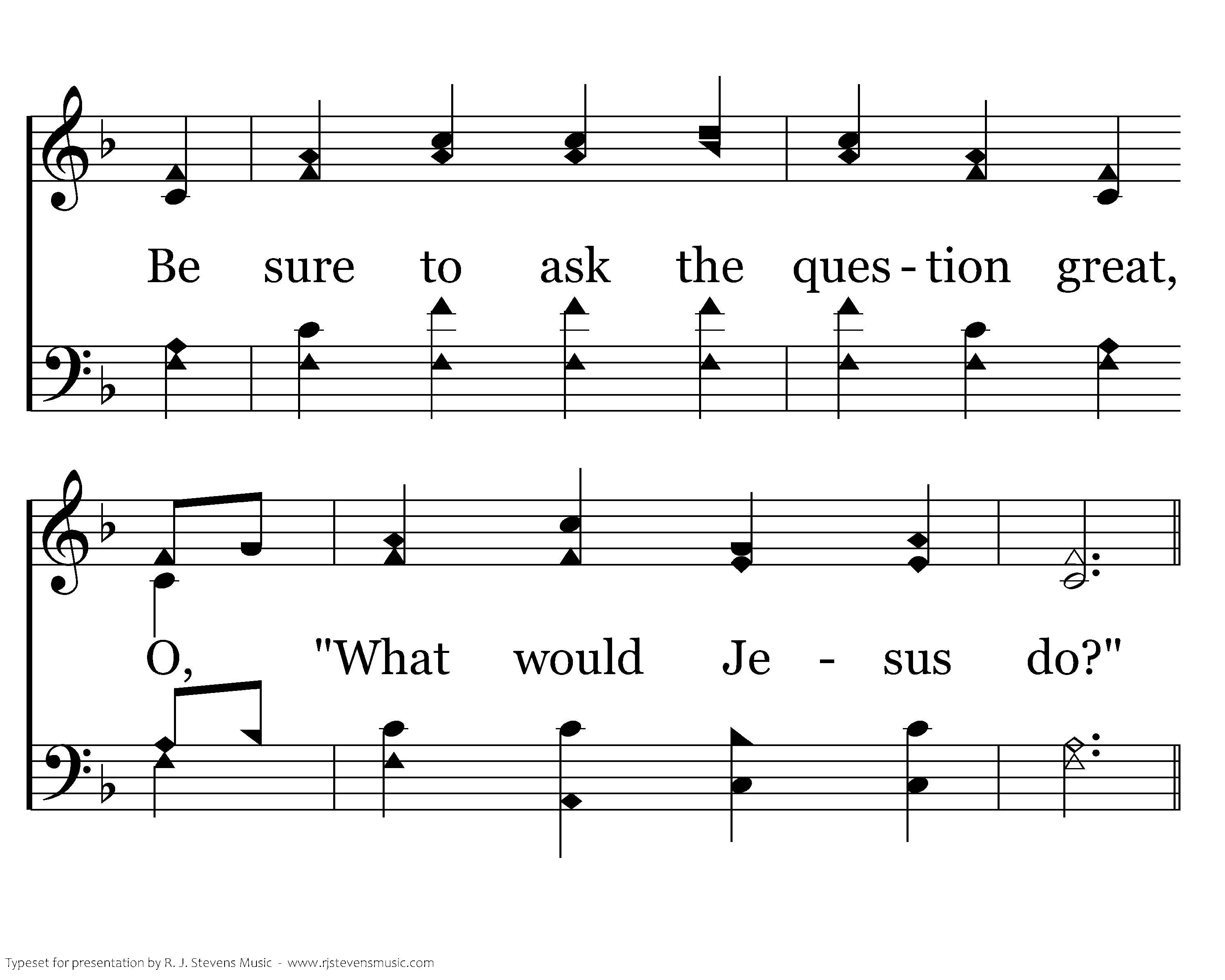 O "What would Jesus do?" O "What would Jesus do?" Just ask yourself the question, O "What would Jesus do?"