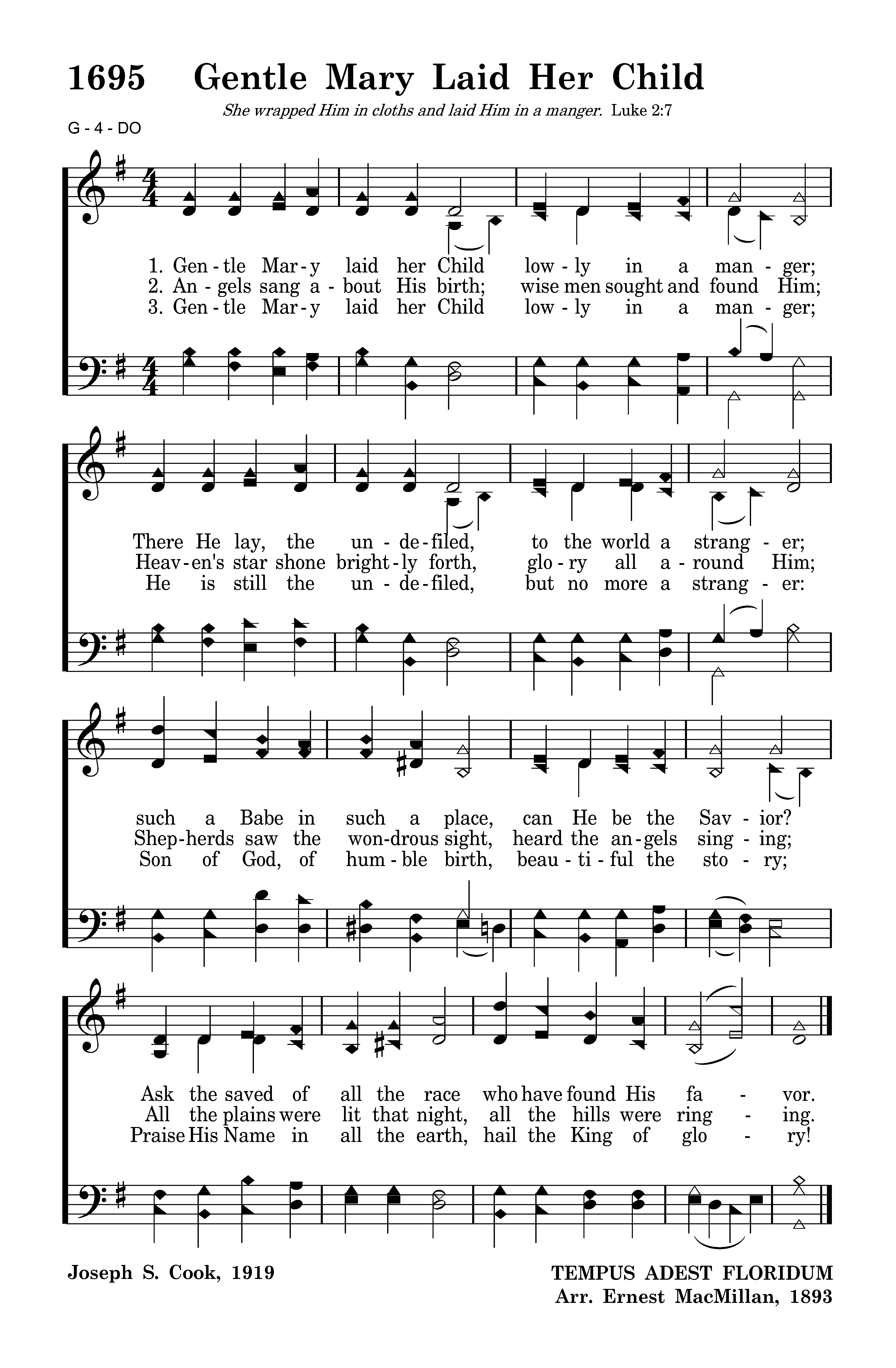 Gentle Mary laid her Child lowly in a manger; There He lay, the undefiled, to the world a stranger; such a Babe in such a place, can He be the Savior? Ask the saved of all the race who have found His favor.