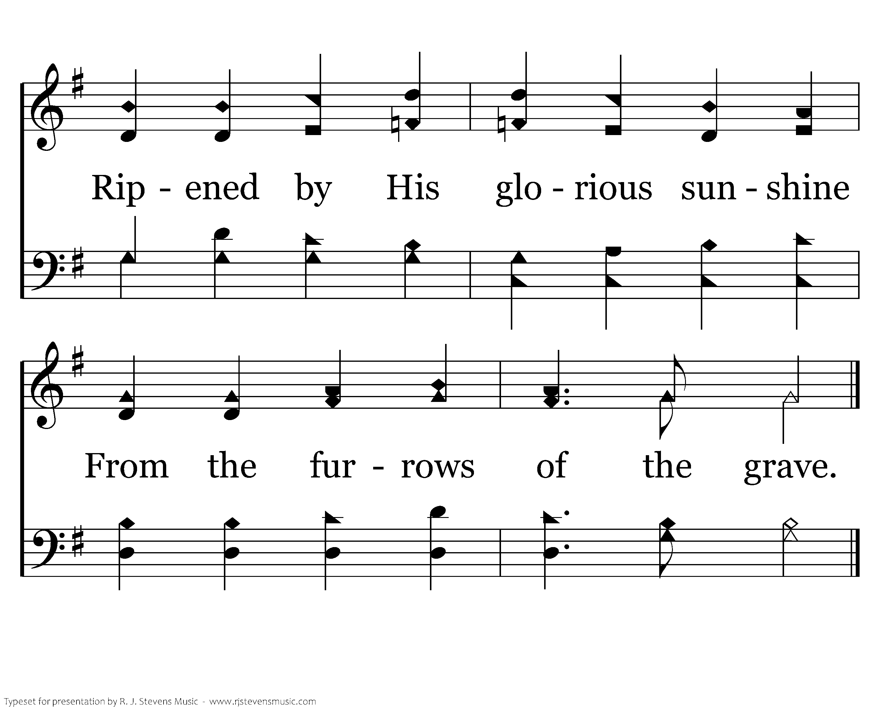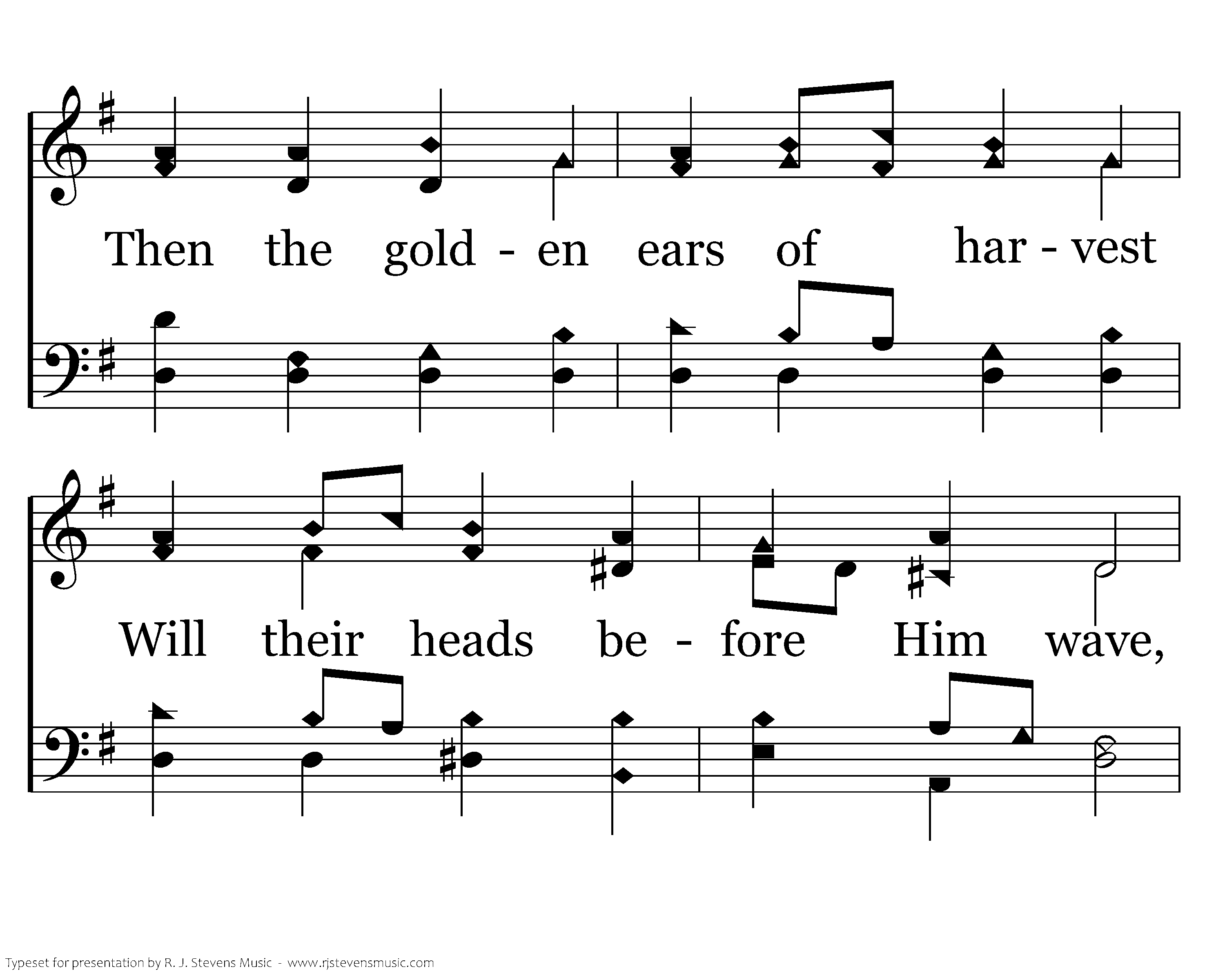 Christ is risen, Christ, the firstfruits Of the holy harvest field, Which will all its full abundance At His second coming yield. Then the golden ears of harvest Will their heads before Him wave, Ripened by His glorious sunshine From the furrows of the grave.