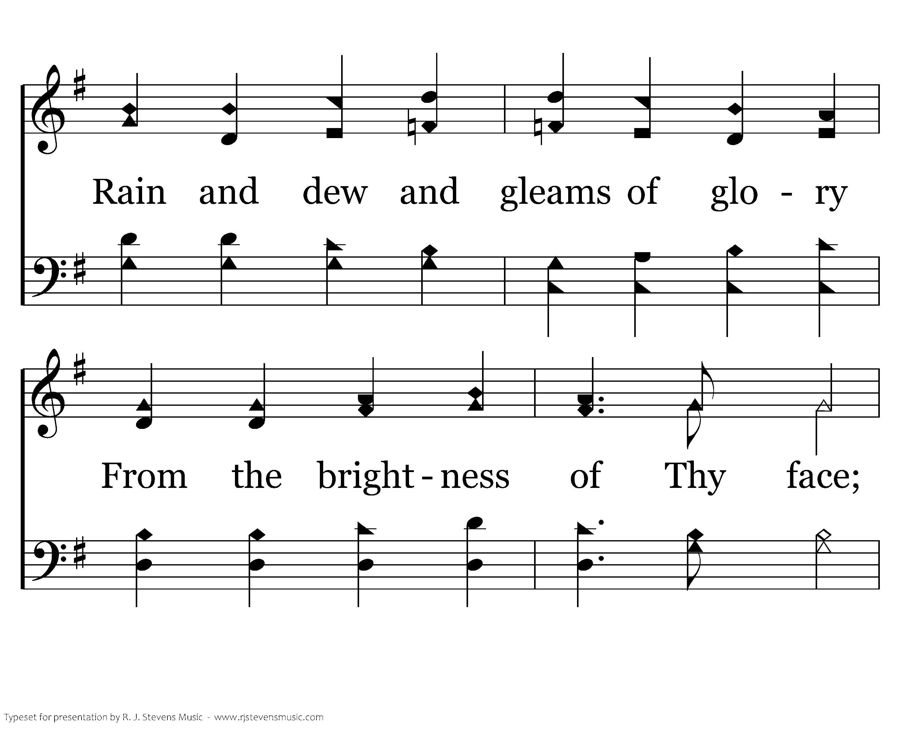 Christ is risen, we are risen. Shed upon us heav'nly grace, Rain and dew and gleams of glory From the brightness of Thy face; That we, Lord, with hearts in heaven, Here on earth may fruitful be, And by angel hands be gathered, And be ever, Lord, with Thee.