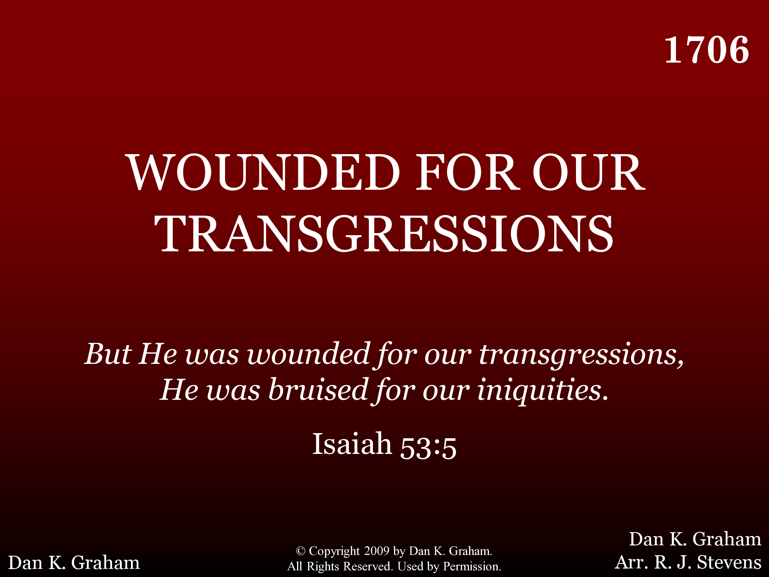 | Title | WOUNDED FOR OUR TRANSGRESSIONS |