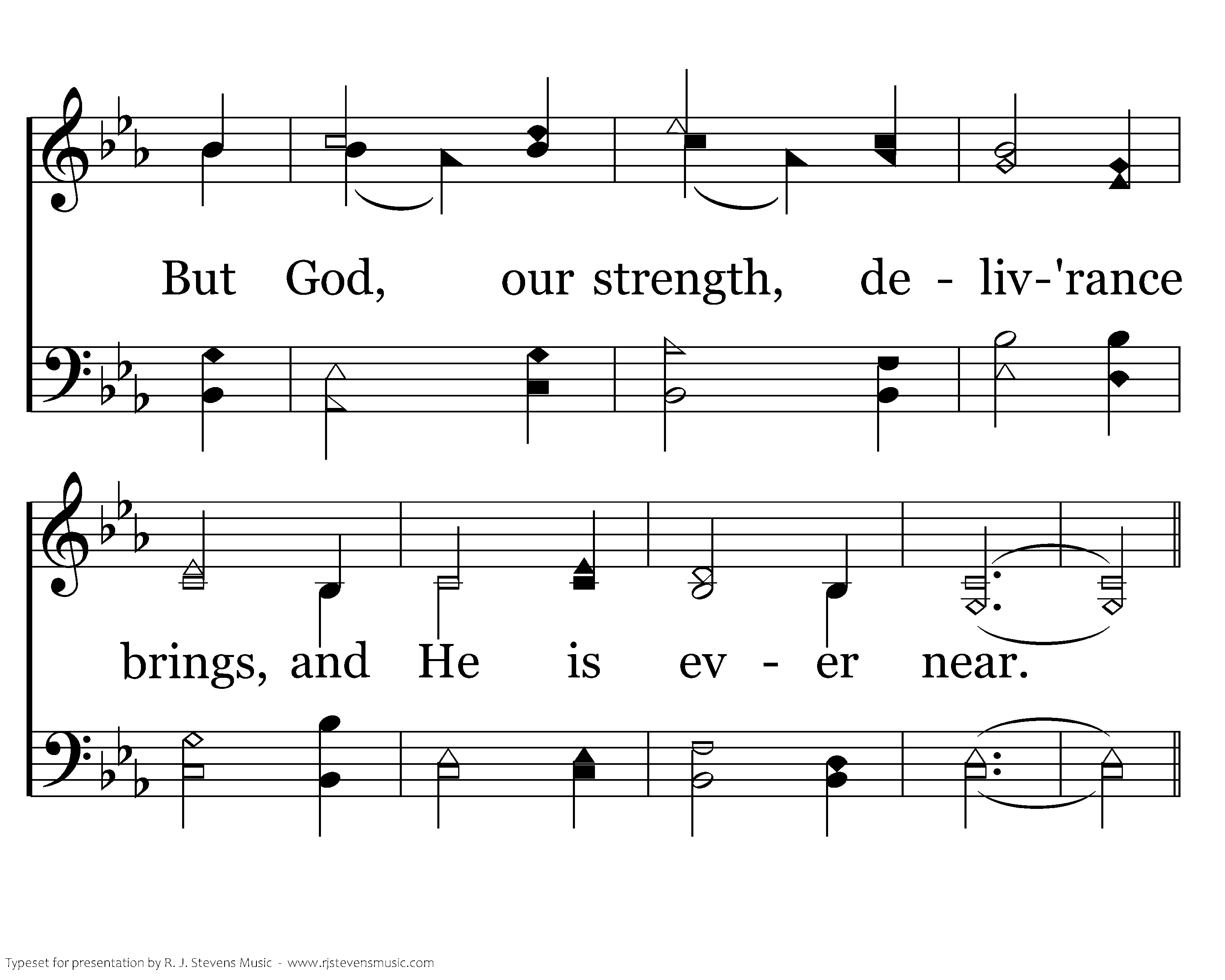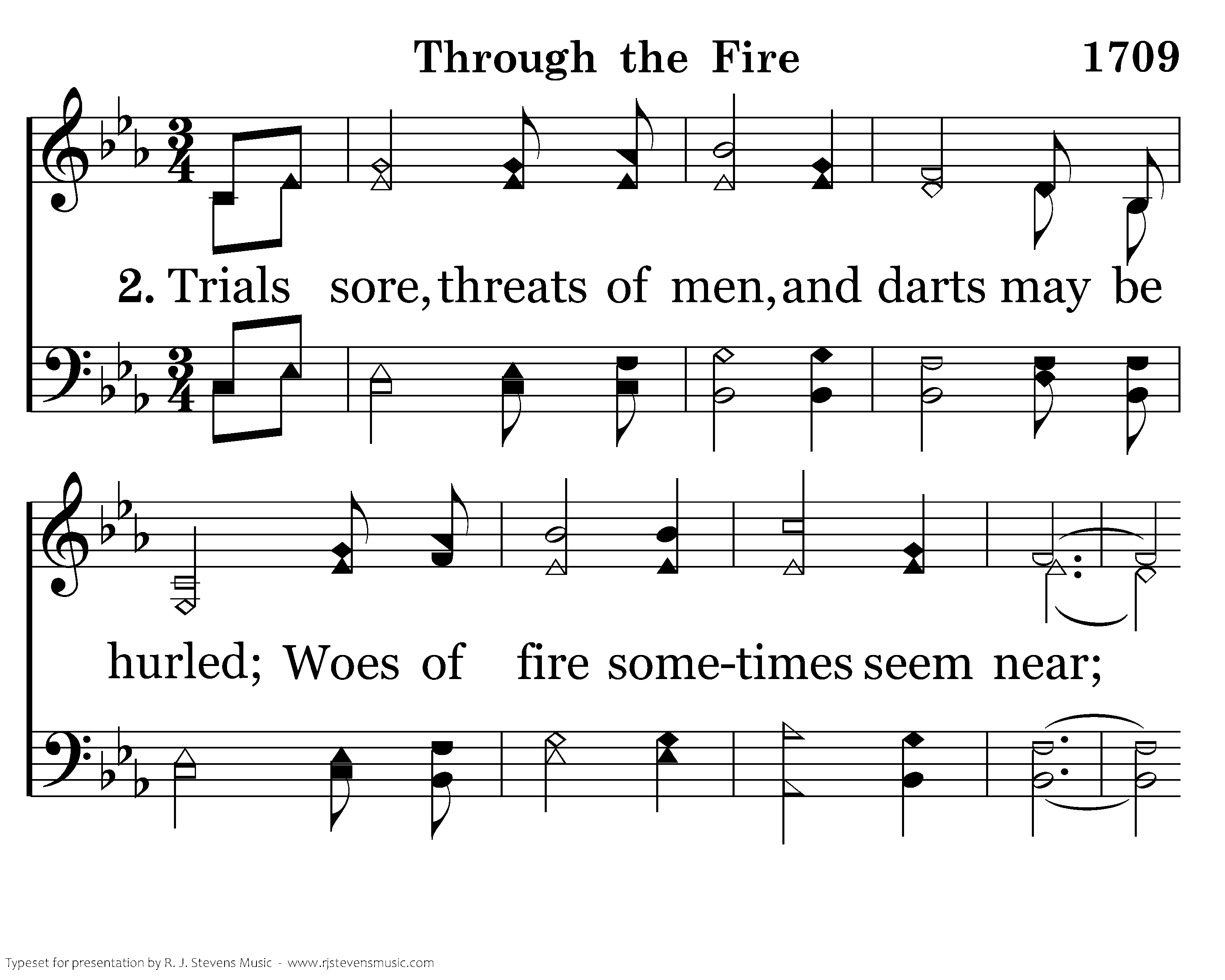 Trials sore, threats of men, and darts may be hurled; Woes of fire sometimes seem near; But God, our strength, deliv'rance brings, and He is ever near.