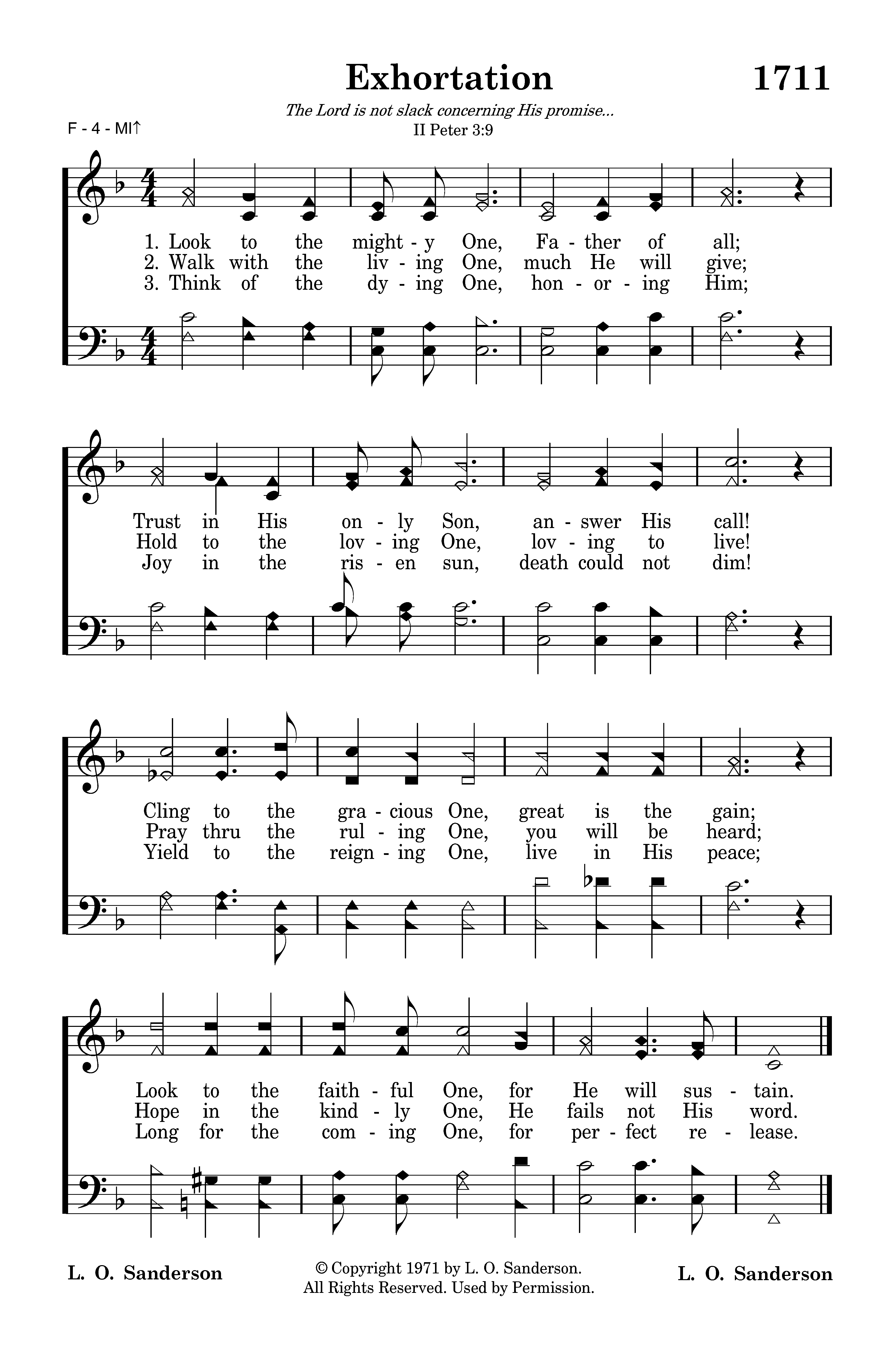 - Copyright © 1971 by L. O. Sanderson. (Admin. by Leon B. Sanderson.) All Rights Reserved. Used by Permission.