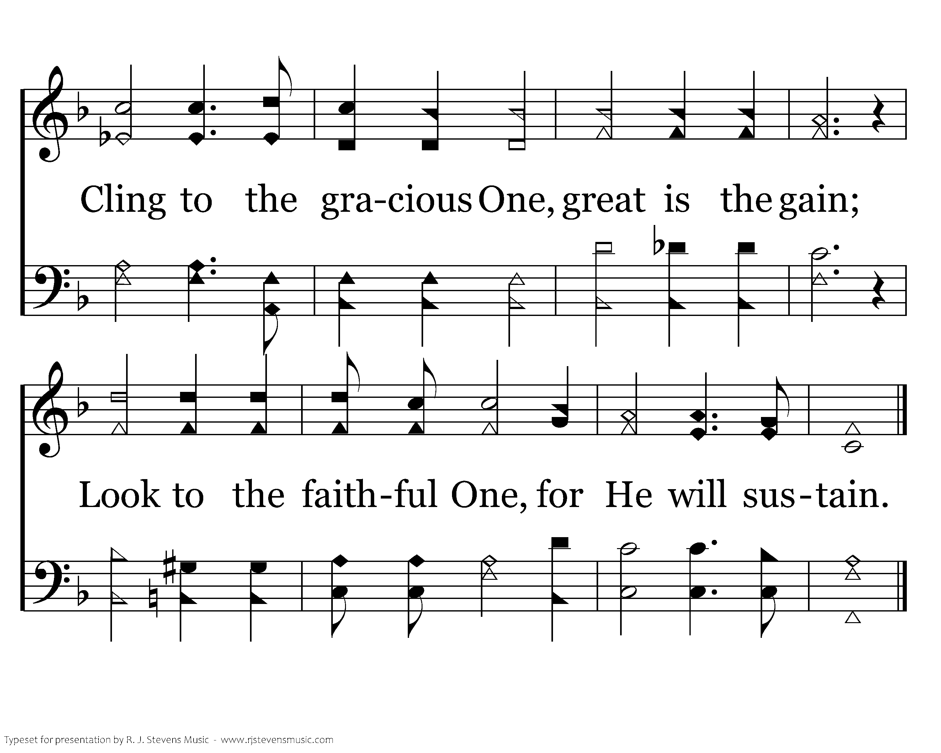 Look to the mighty One, Father of all; Trust in His only Son, answer His call! Cling to the gracious One, great is the gain; Look to the faithful One, for He will sustain.