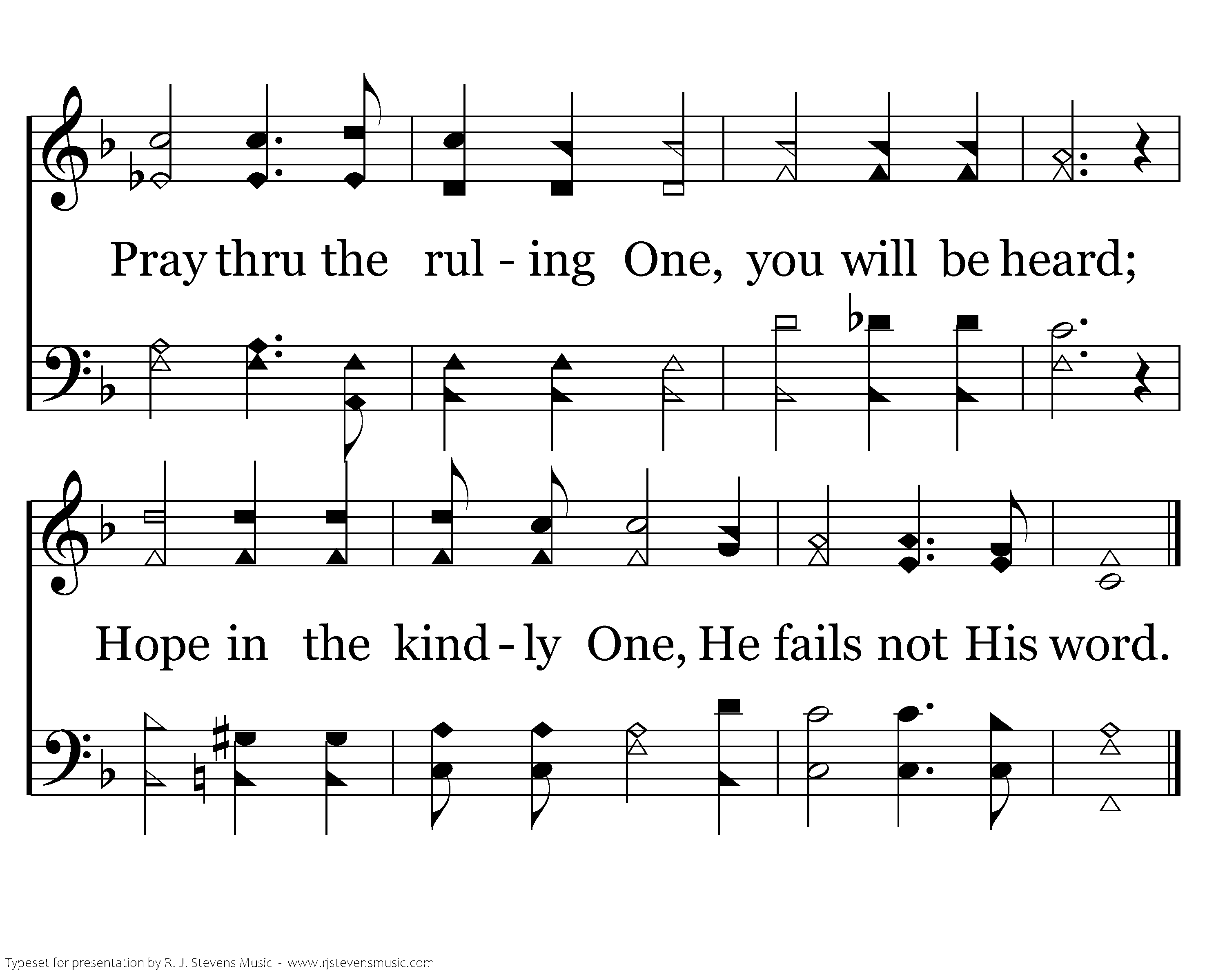 Walk with the living One, much He will give; Hold to the loving One, loving to live! Pray thru the ruling One, you will be heard; Hope in the kindly One, He fails not His word.