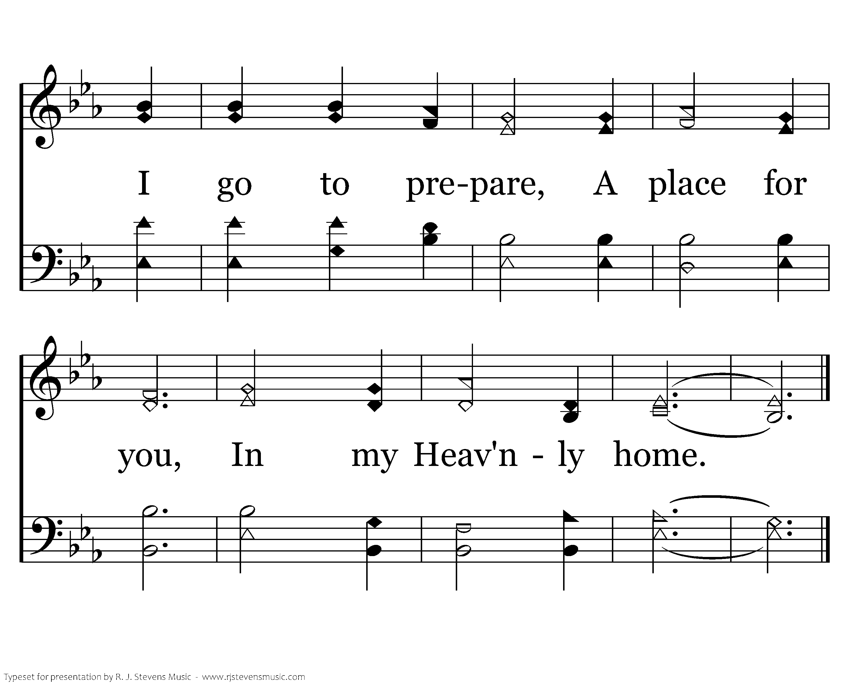 If I prepare a place for you, I will come again to receive you to Me. And that where I am, There you may be, In my Heav'n ly home.