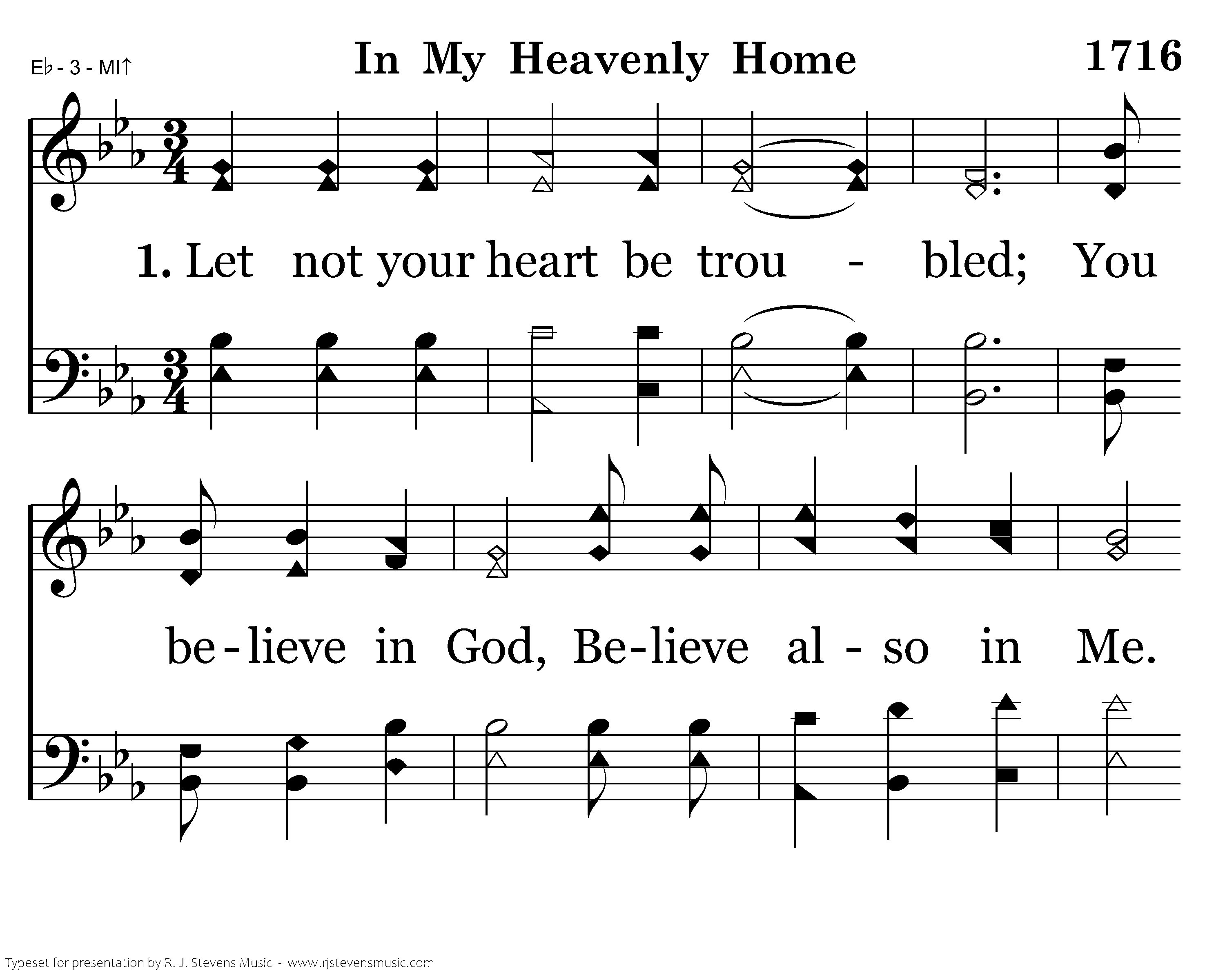 Let not your heart be troubled; You believe in God, Believe also in Me. I go to prepare, A place for you, In my Heav'nly home.