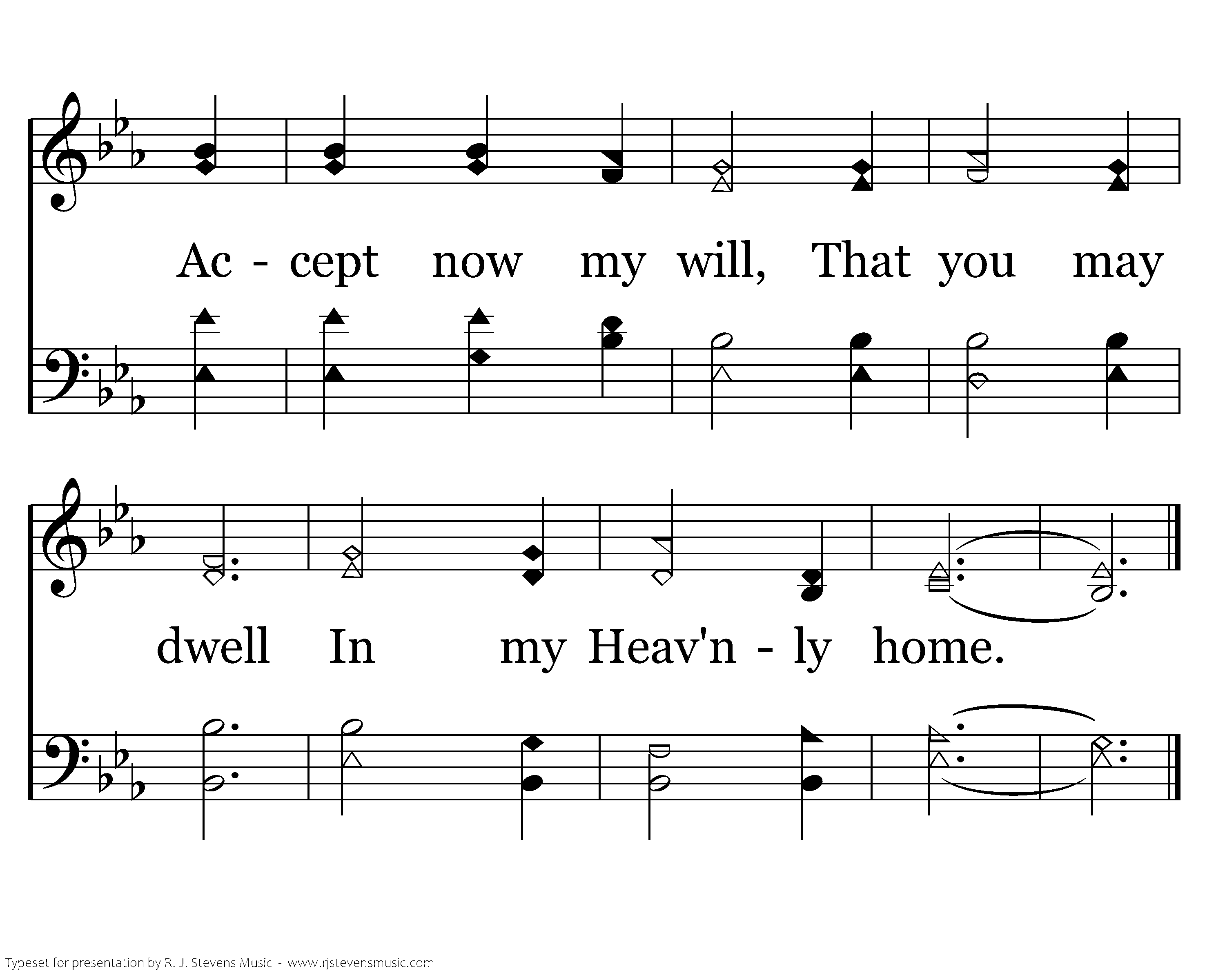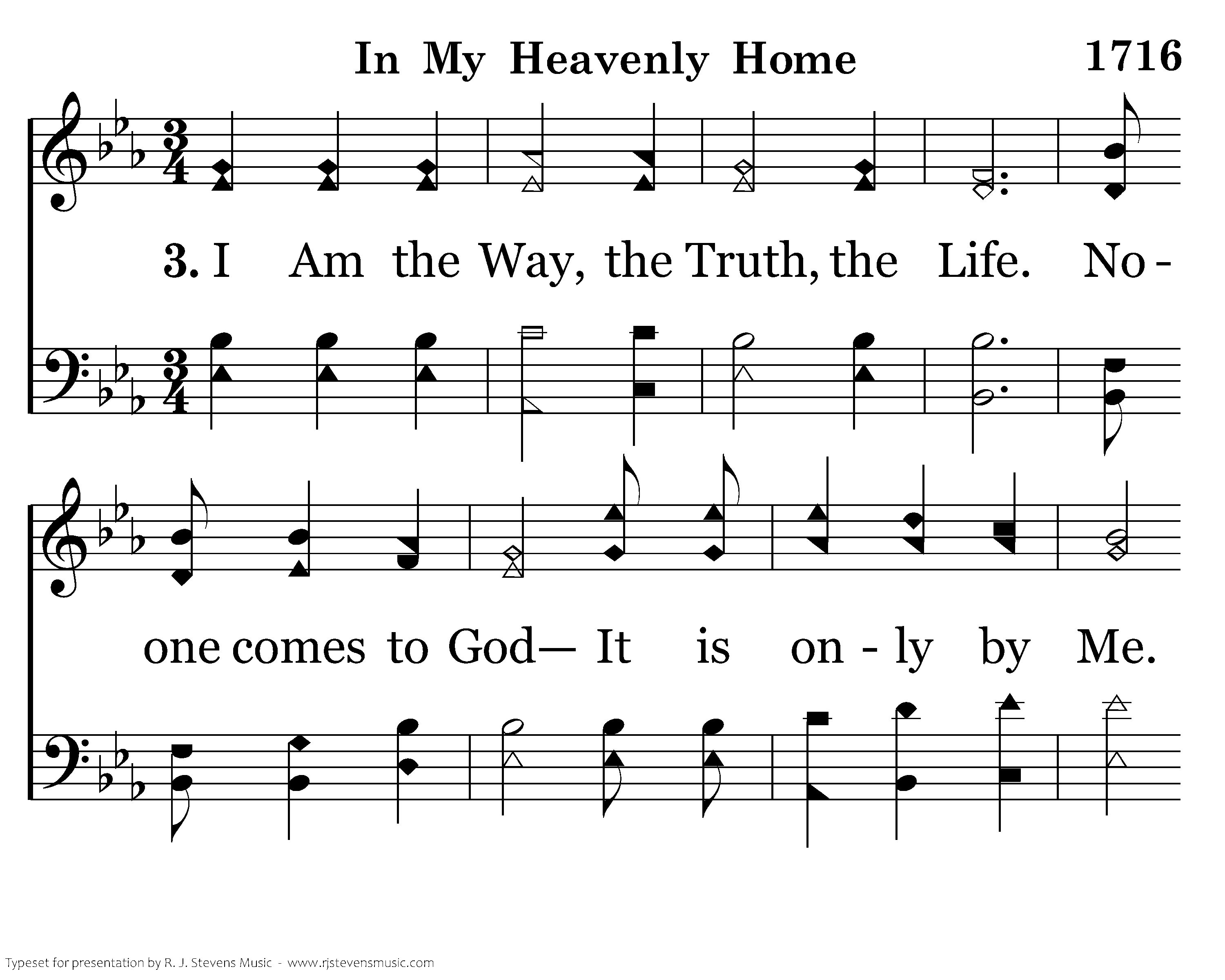 I Am the Way, the Truth, the Life. Noone comes to God— It is only by Me. Accept now my will, That you may dwell In my Heav'nly home.