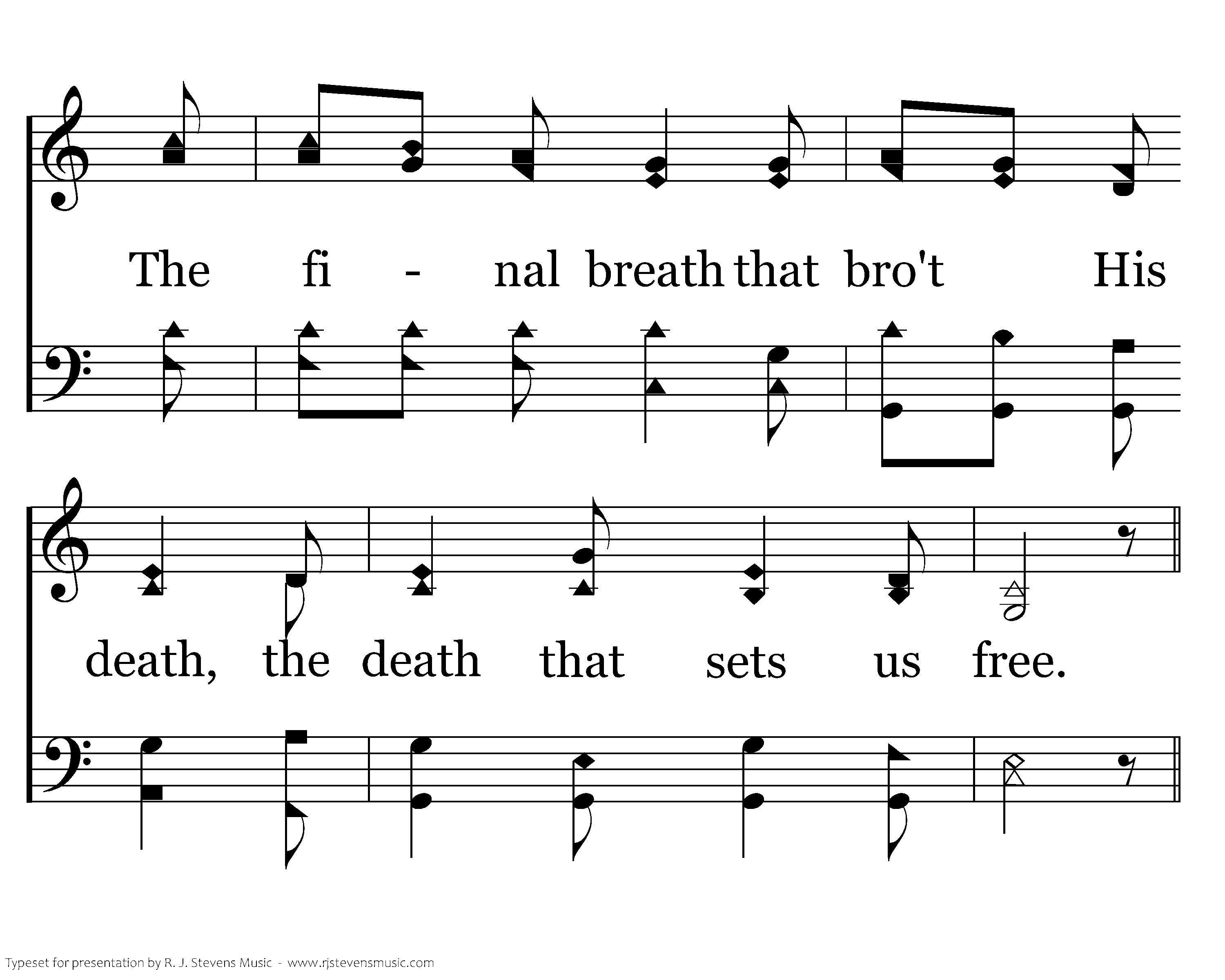 His hands and feet were nailed, His body lifted from the earth, The crowd and passerby looked on but cared not for His worth. The blood He shed, the words He said while on that cruel tree, The final breath that bro't His death, the death that sets us free.