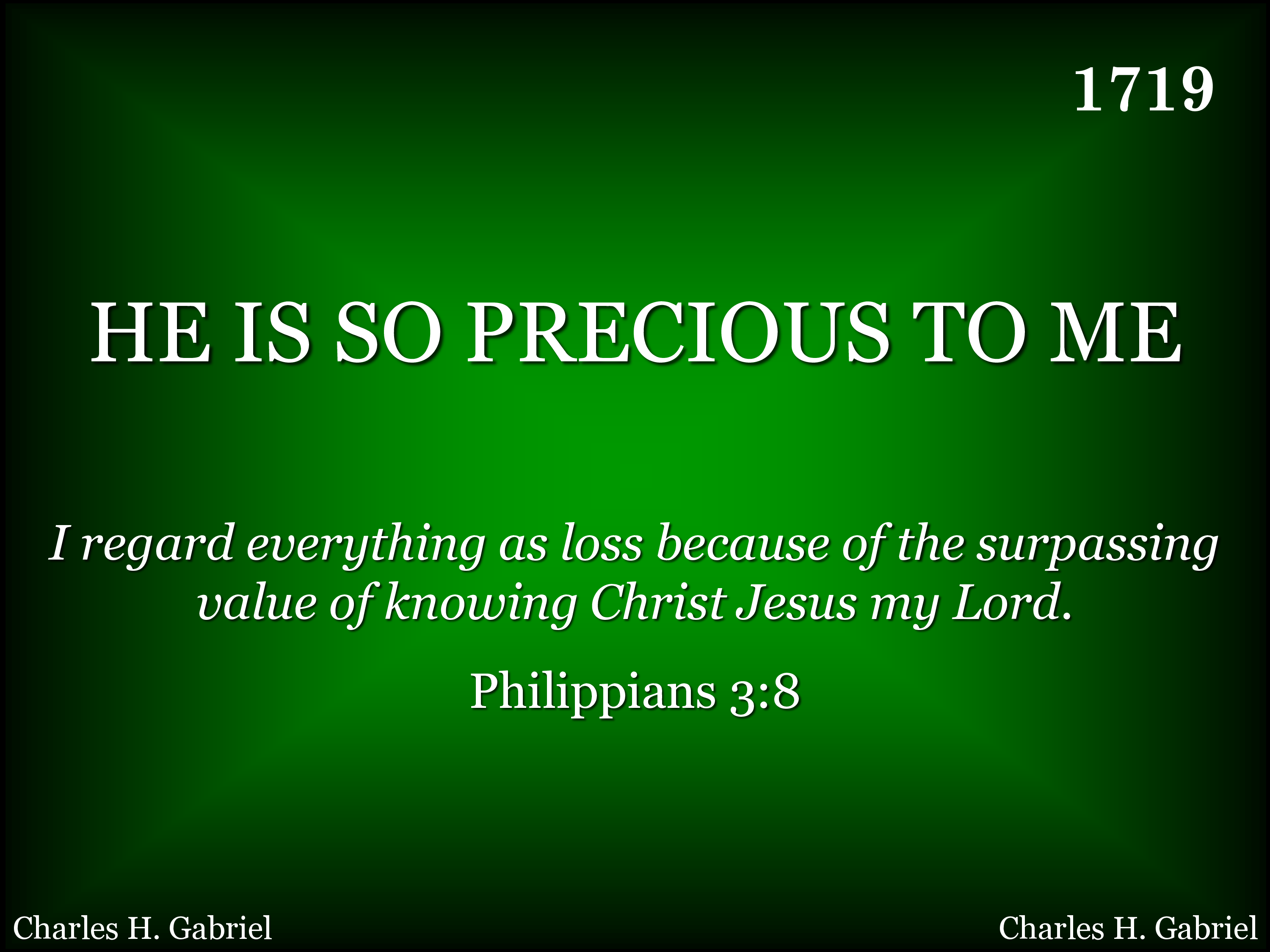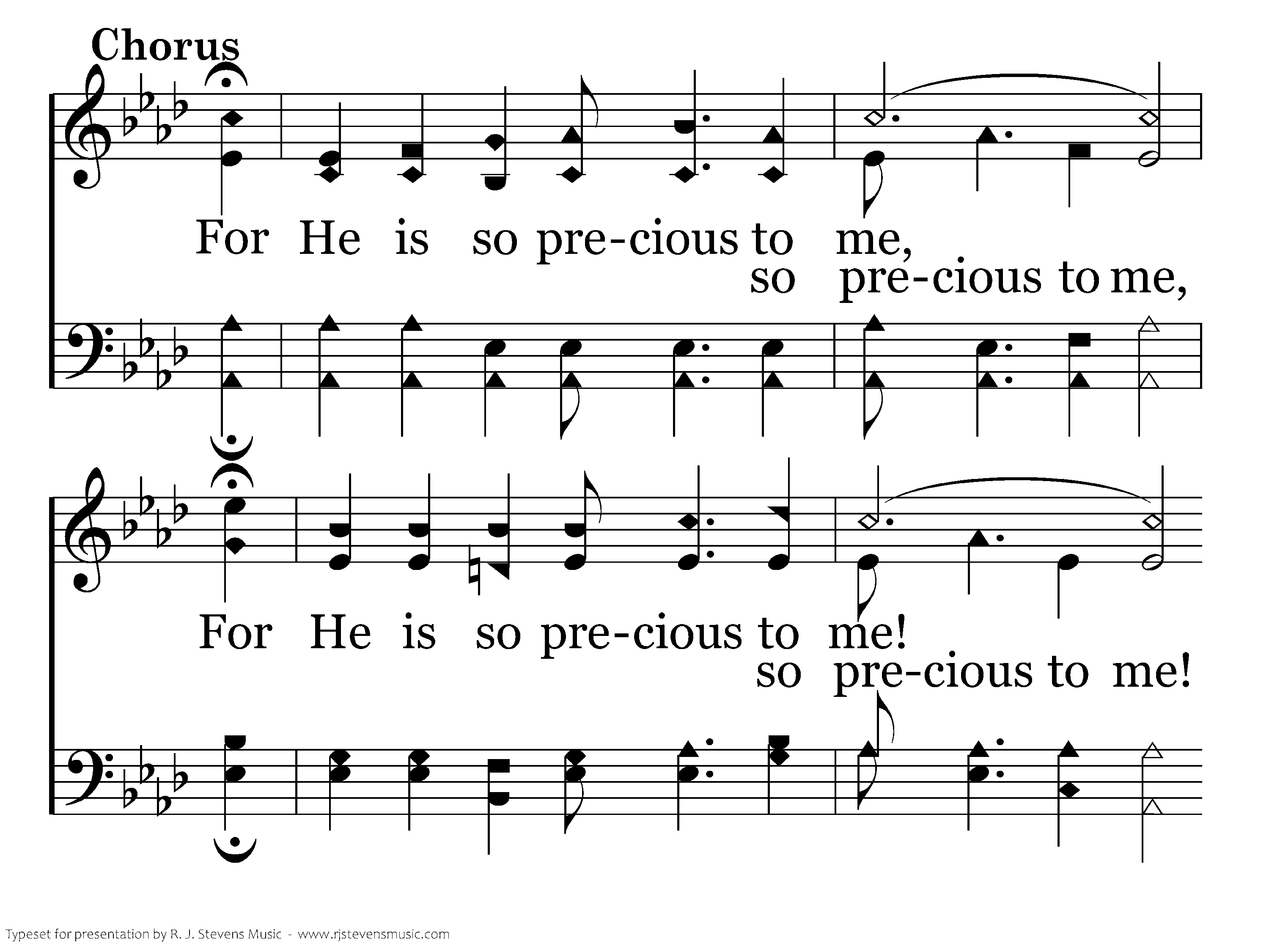 For He is so precious to me, For He is so precious to me! 'Tis heaven below, My Redeemer to know, For He is so precious to me.