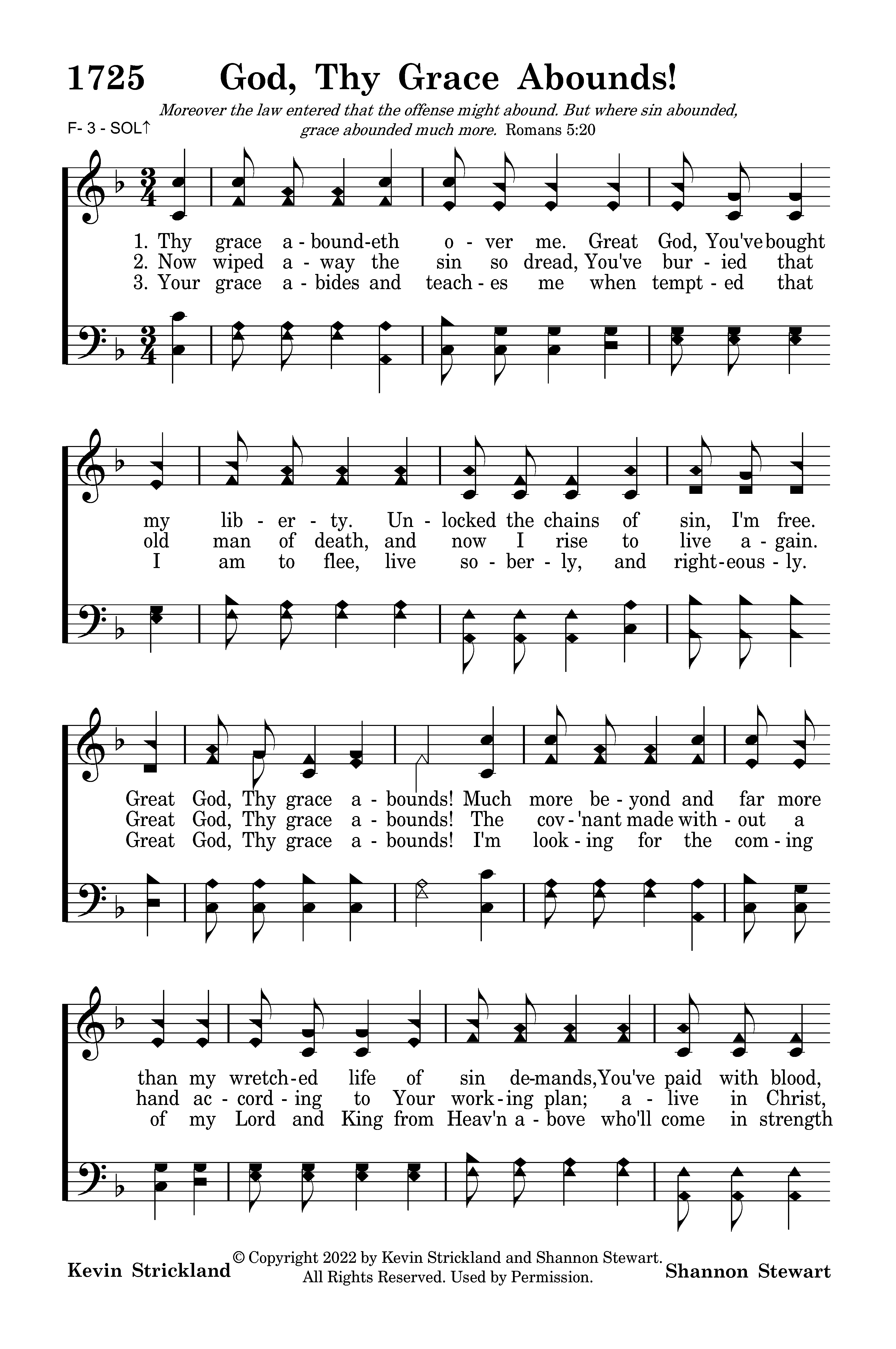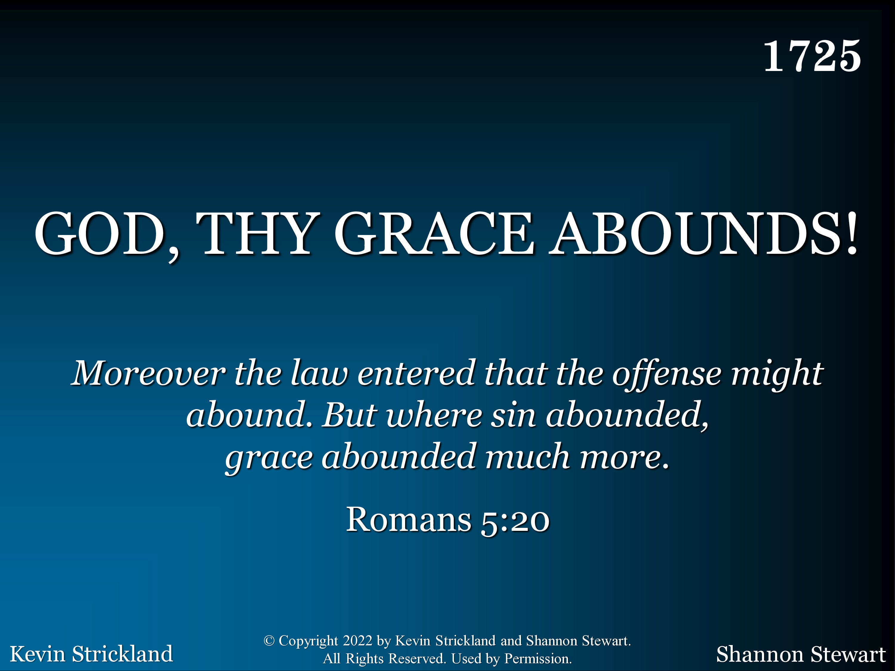 Thy grace aboundeth over me. Great God, You've bought my liberty. Unlocked the chains of sin, I'm free. Great God, Thy grace abounds! Much more beyond and far more than my wretched life of sin demands, You've paid with blood, ransomed I stand. Great God, Thy grace abounds! Great God, Thy grace abounds!Great God, Thy grace abounds! Great God, Thy grace abounds!