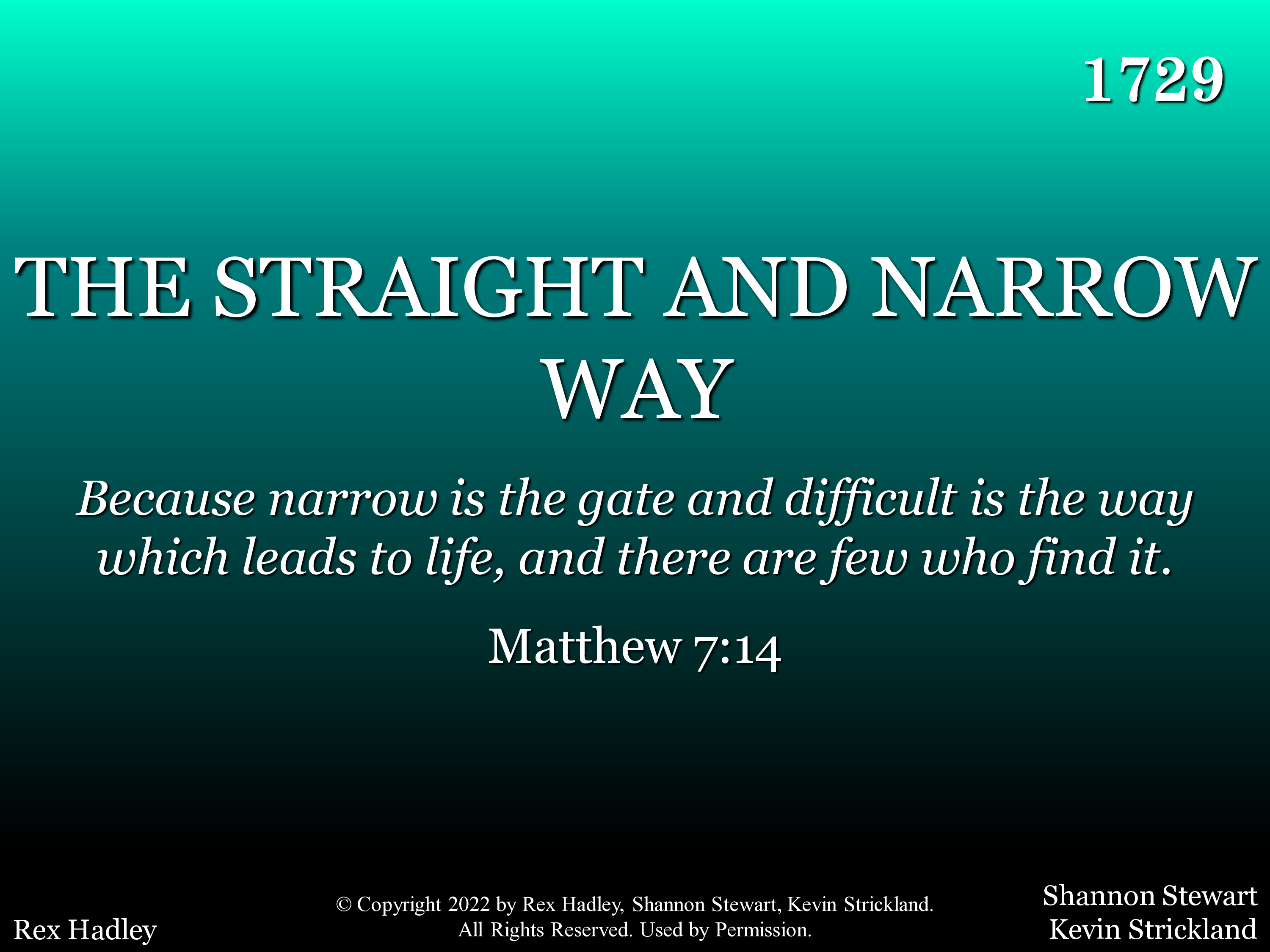 - Copyright © 2022 by Rex Hadley, Kevin Strickland, and Shannon Stewart. All Rights Reserved. Used by Permission.