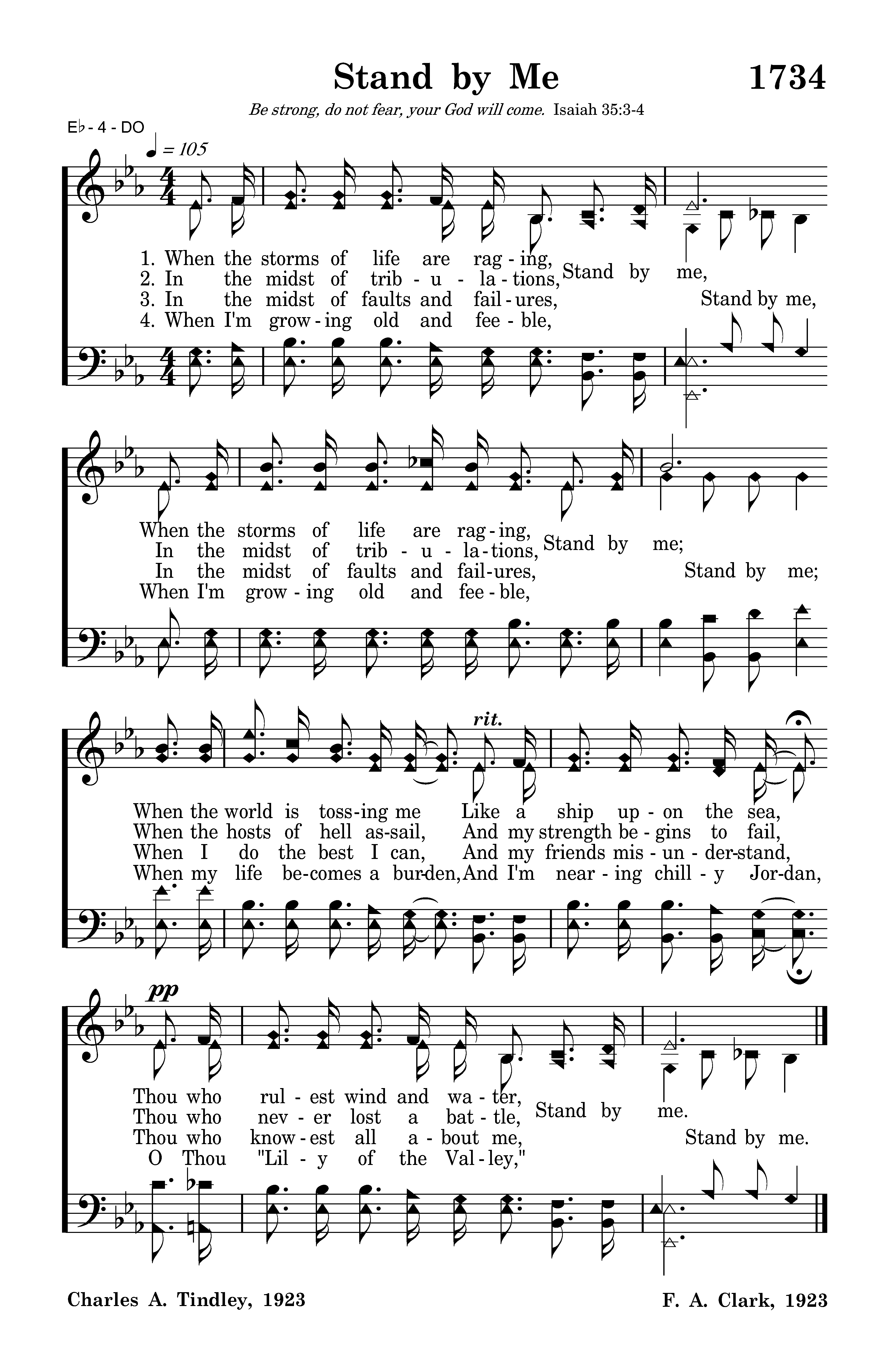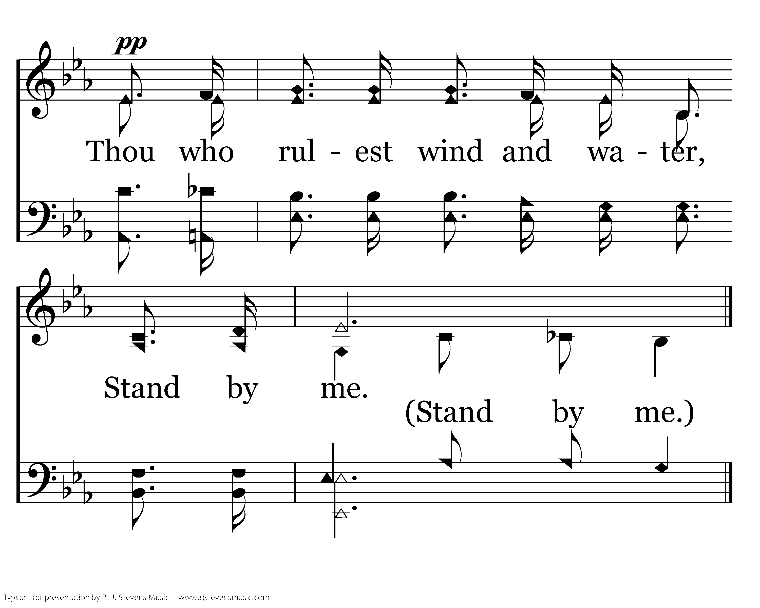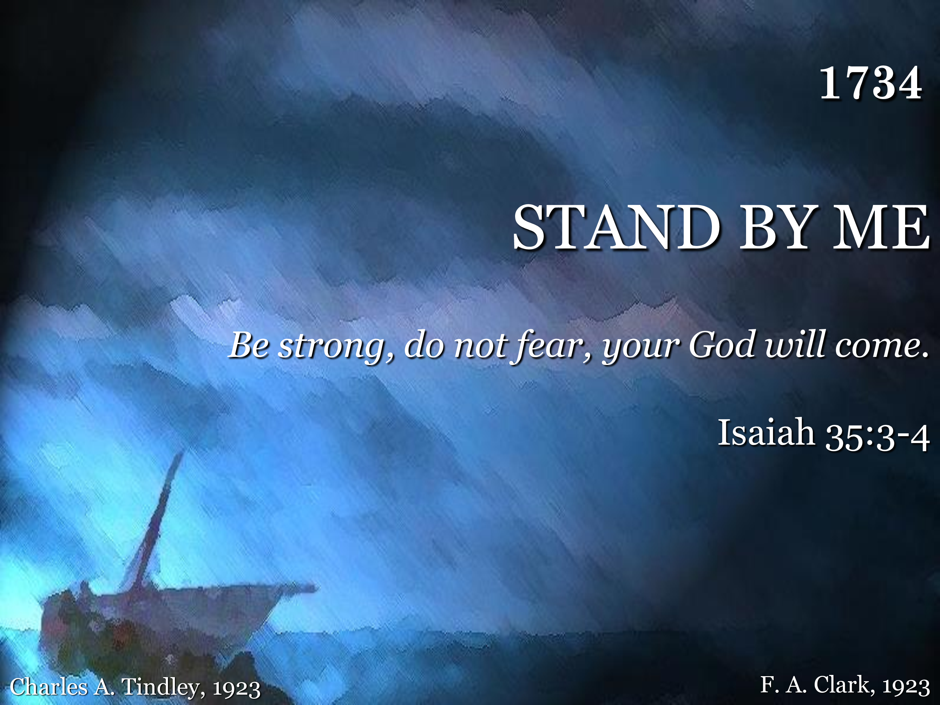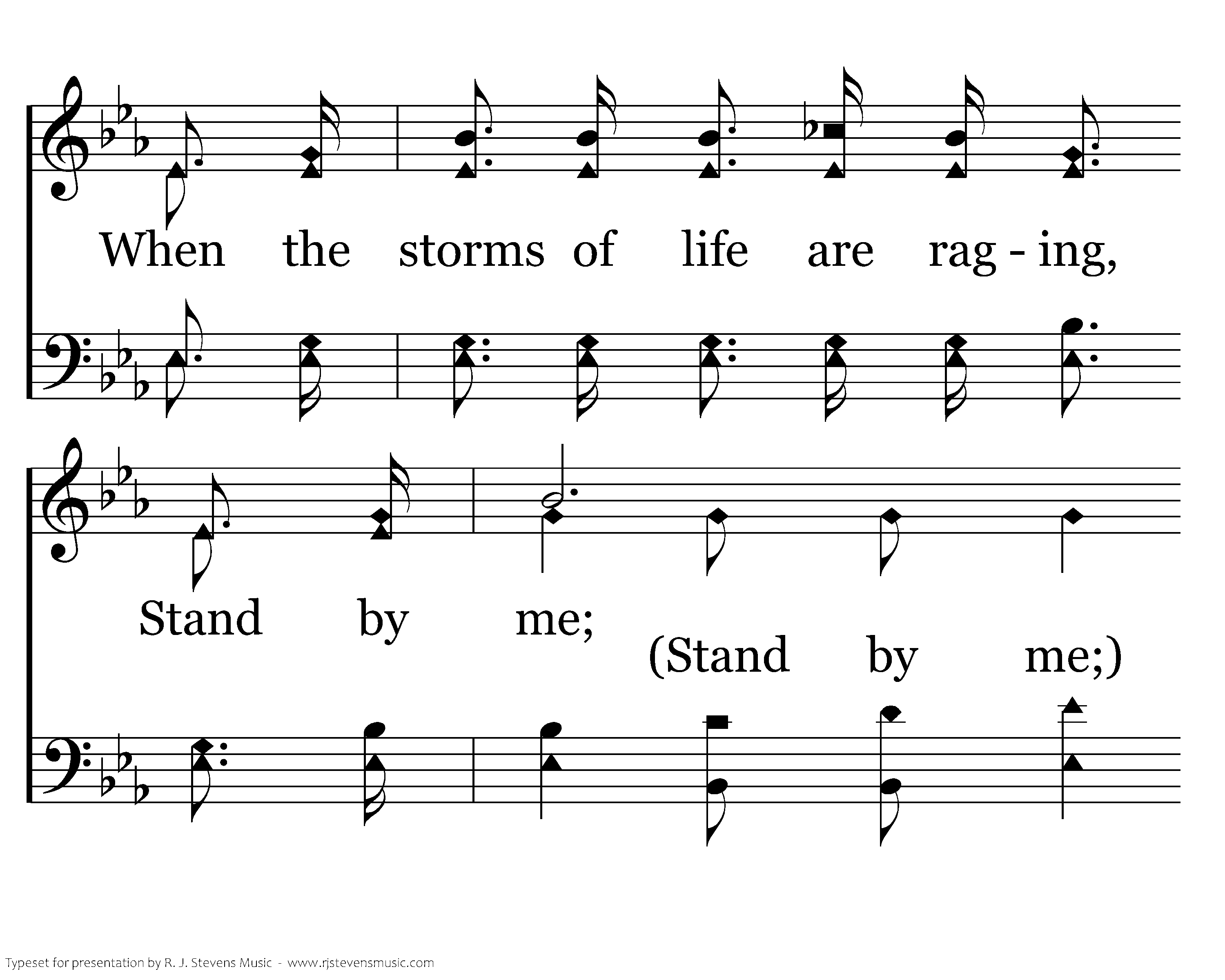 When the storms of life are raging, Stand by me, When the storms of life are raging, Stand by me; When the world is tossing me Like a ship upon the sea, Thou who rulest wind and water, Stand by me.