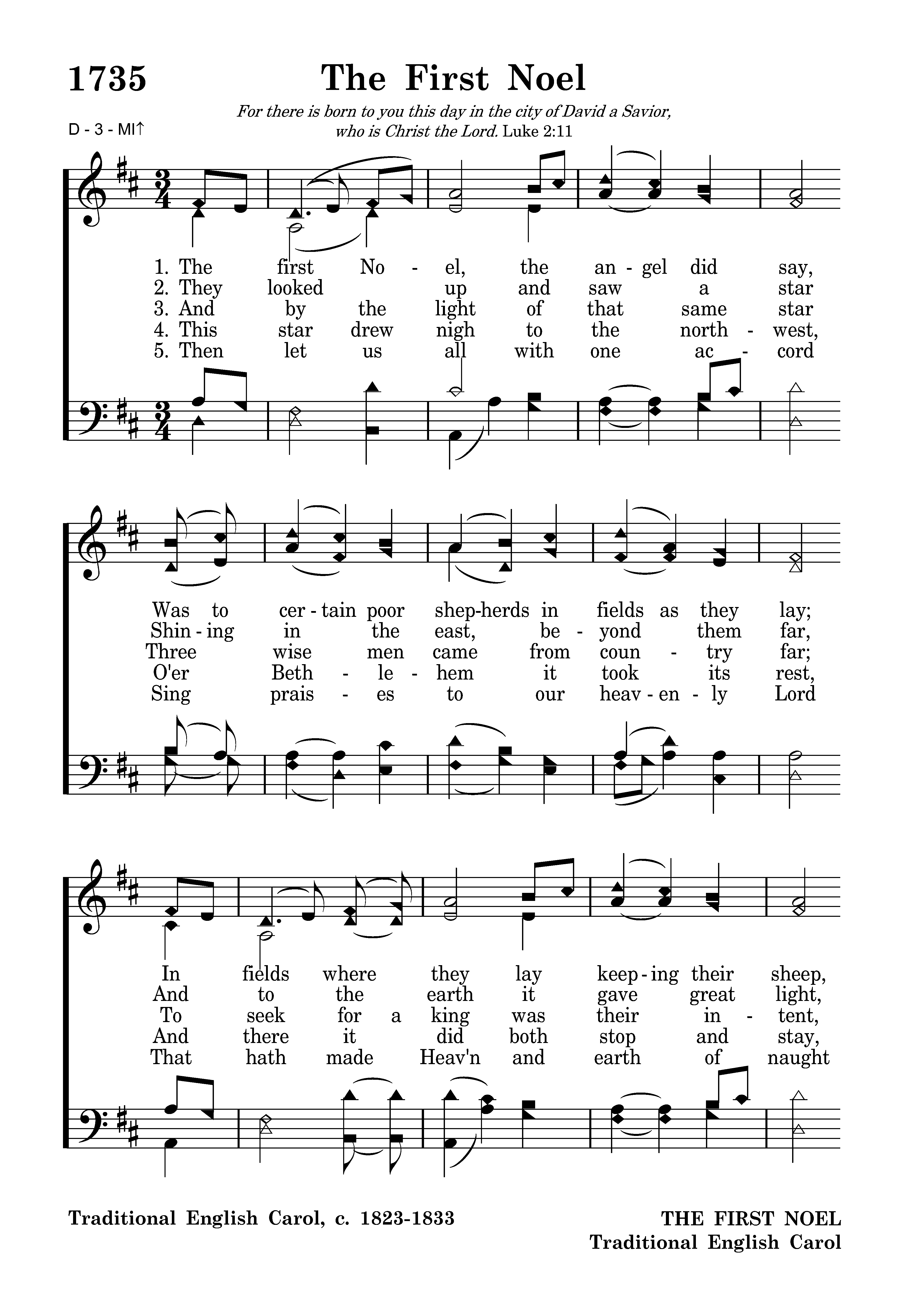 The first Noel, the angel did say, Was to certain poor shepherds in fields as they lay; In fields where they lay keeping their sheep, On a cold winter's night that was so deep.