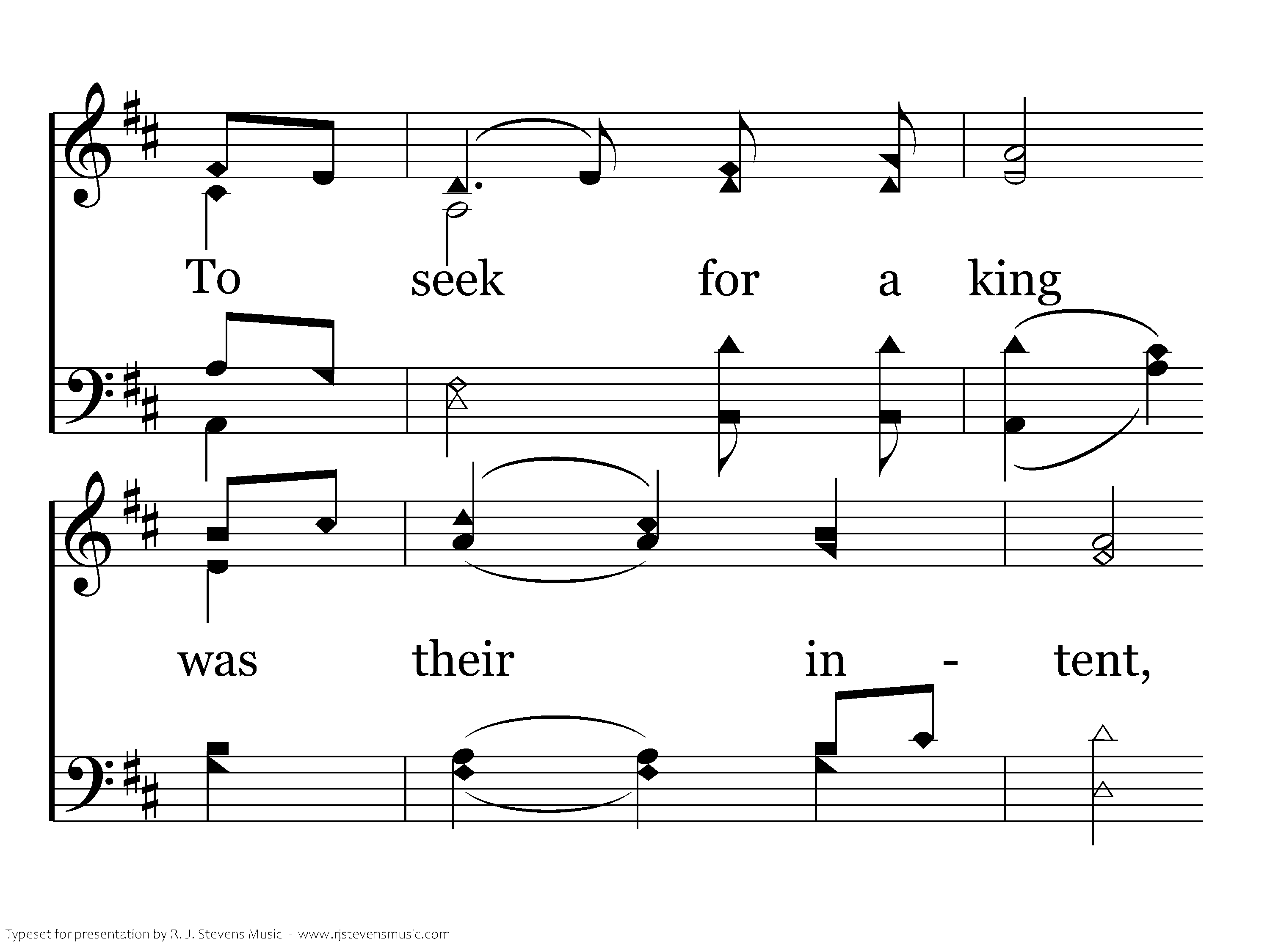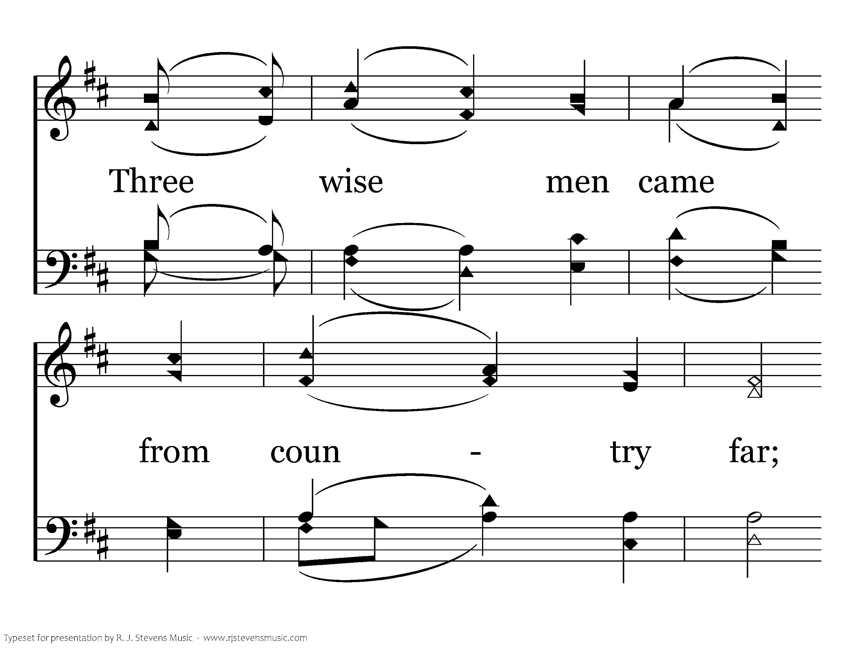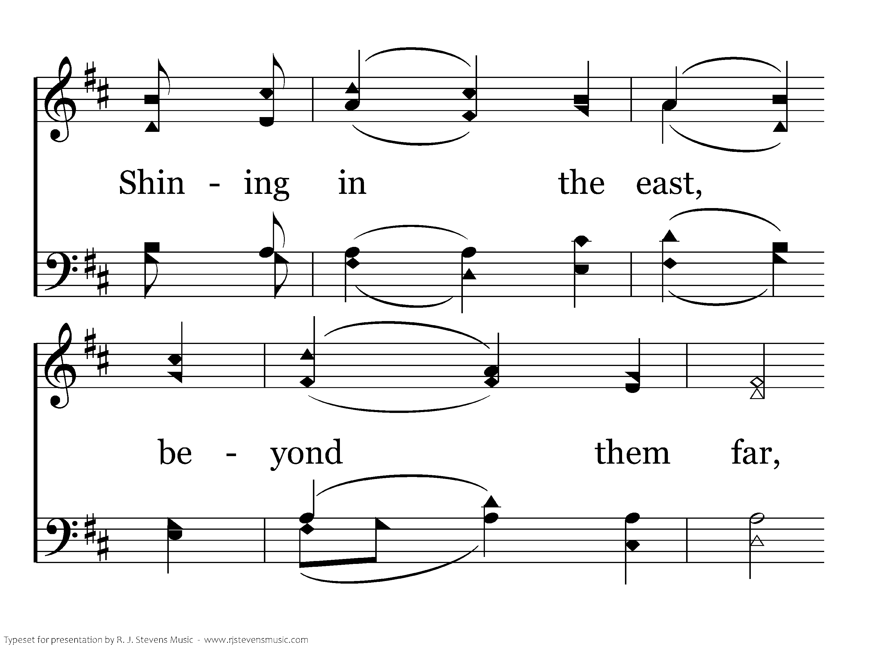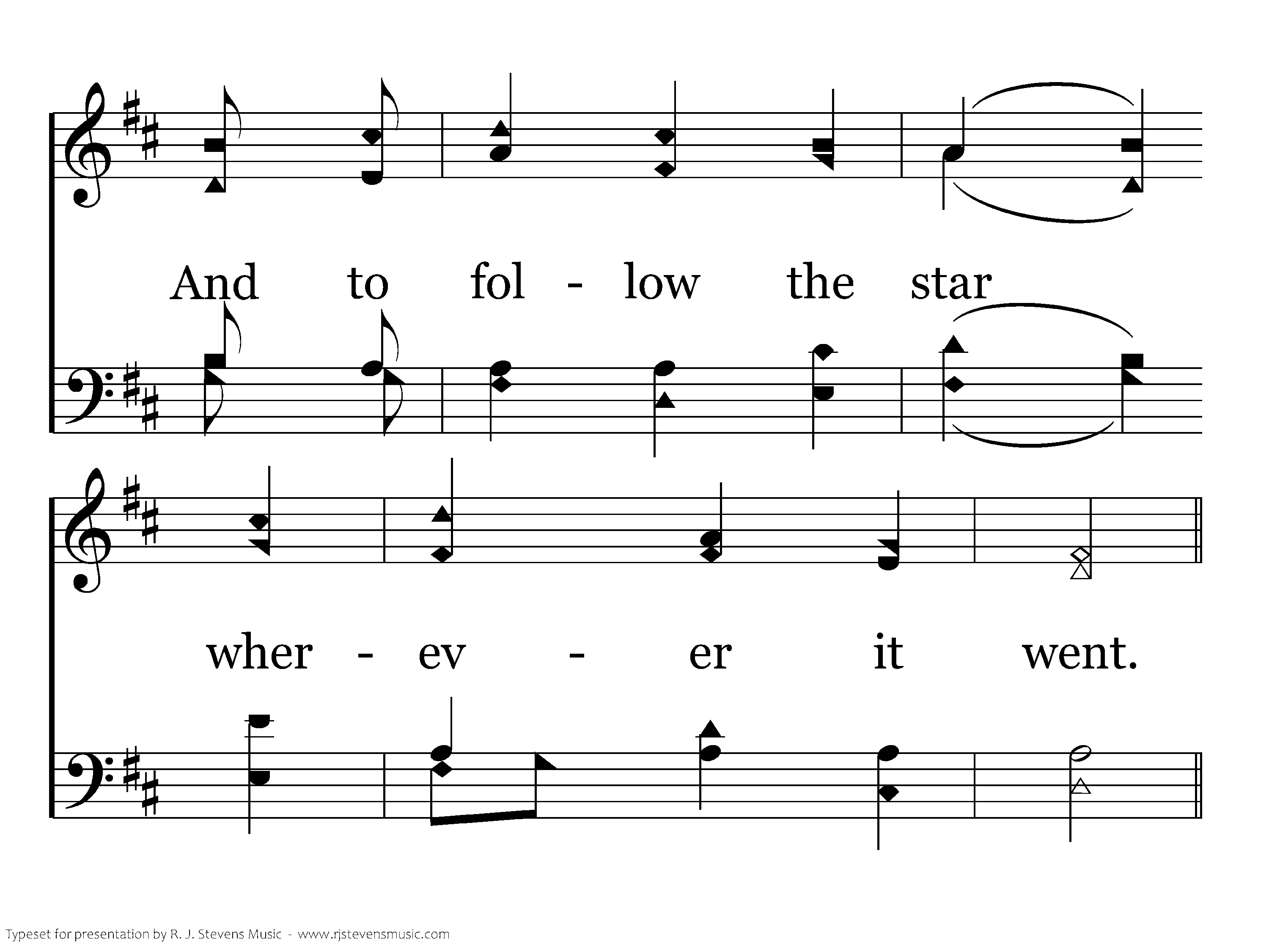 And by the light of that same star Three wise men came from country far; To seek for a king was their intent, And to follow the star wherever it went.