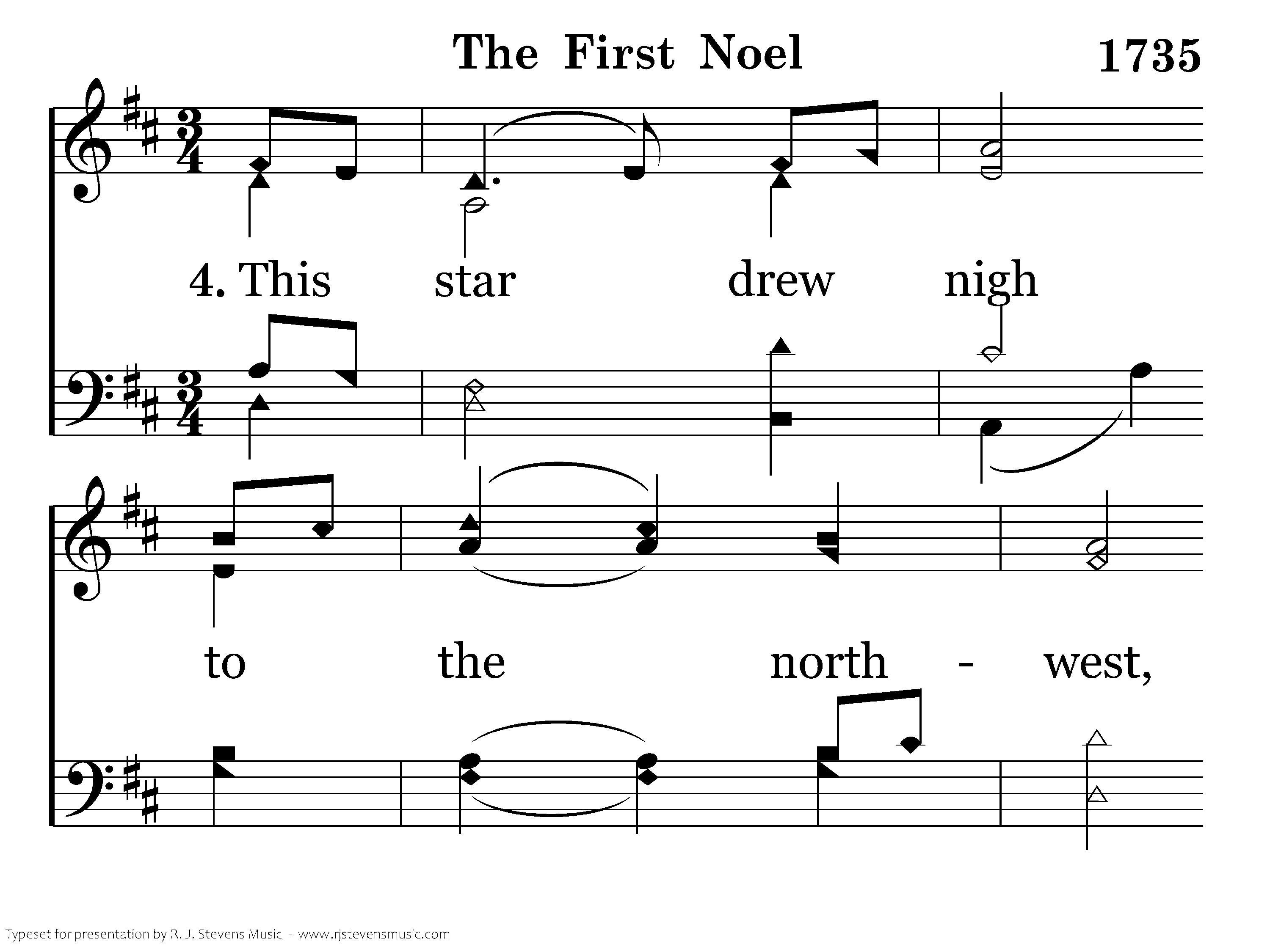 This star drew nigh to the northwest, O'er Bethlehem it took its rest, And there it did both stop and stay, Right over the place where Jesus lay.