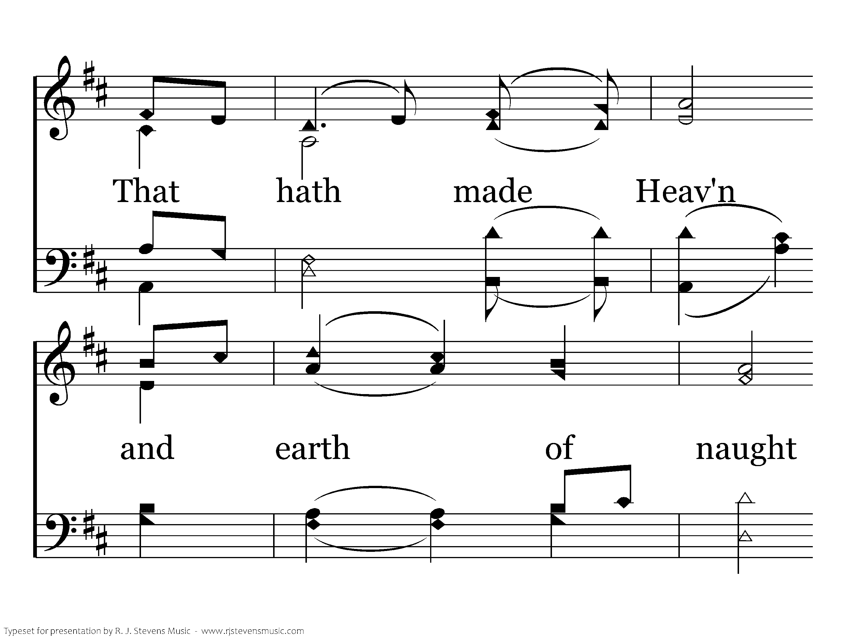 Then let us all with one accord Sing praises to our heavenly Lord That hath made Heav'n and earth of naught And with His blood mankind has bought.