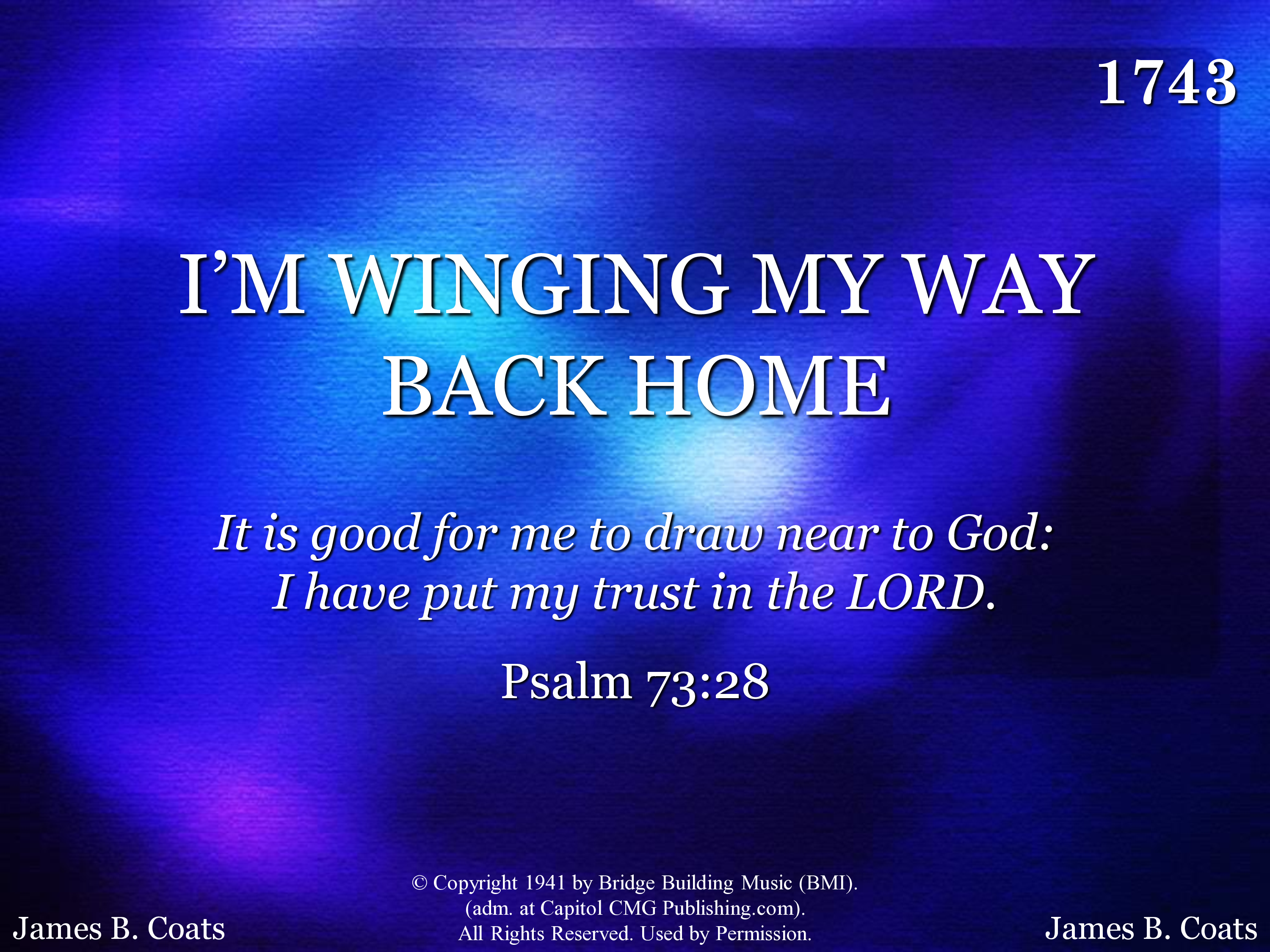 A wonderful time is waiting ahead, I'm winging my way back home. I mean to be there, from sin I have fled, I'm winging my way back home.