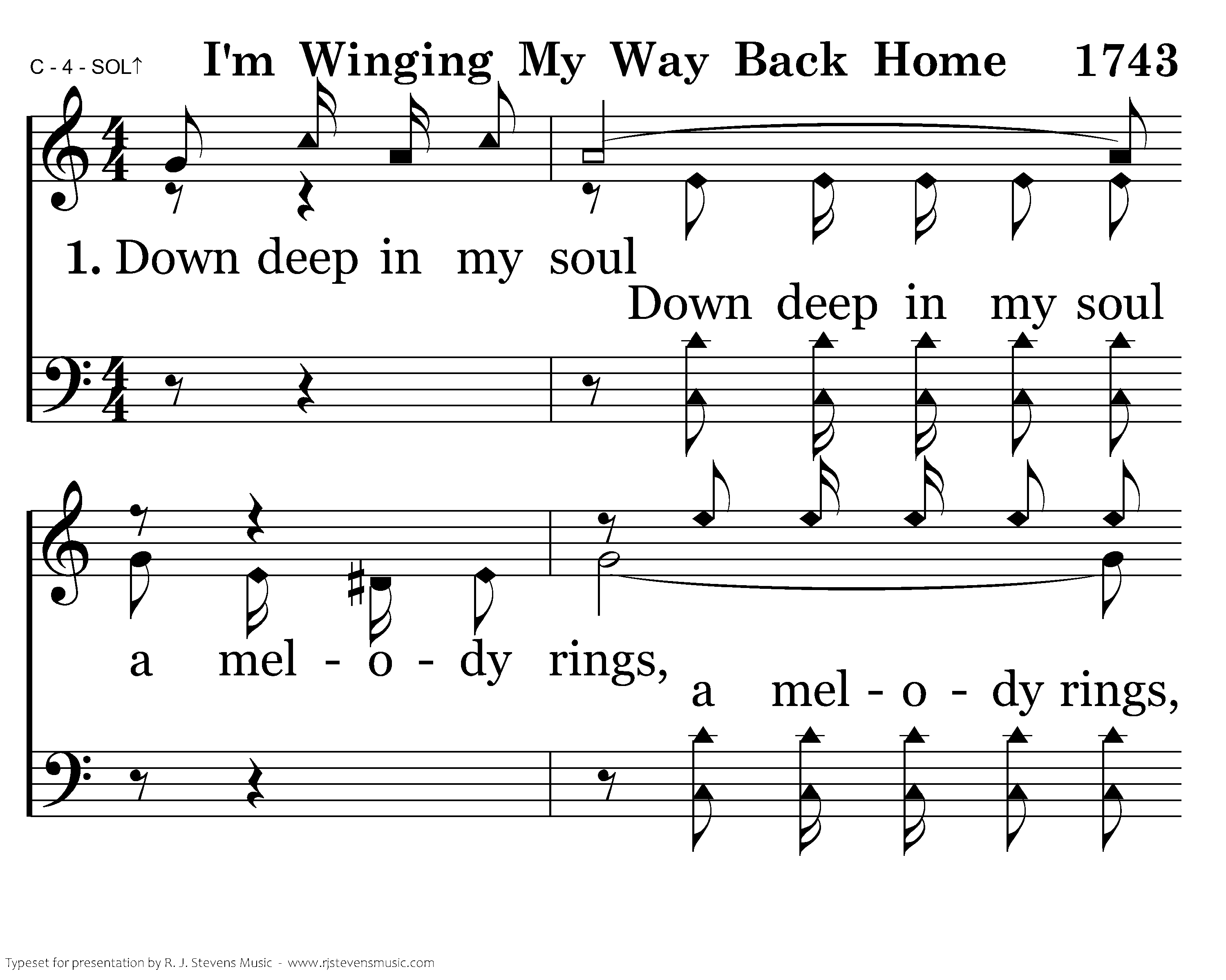 Down deep in my soul a melody rings, I'm winging my way back home. A sinner is saved, my spirit now sings, I'm winging my way back home.