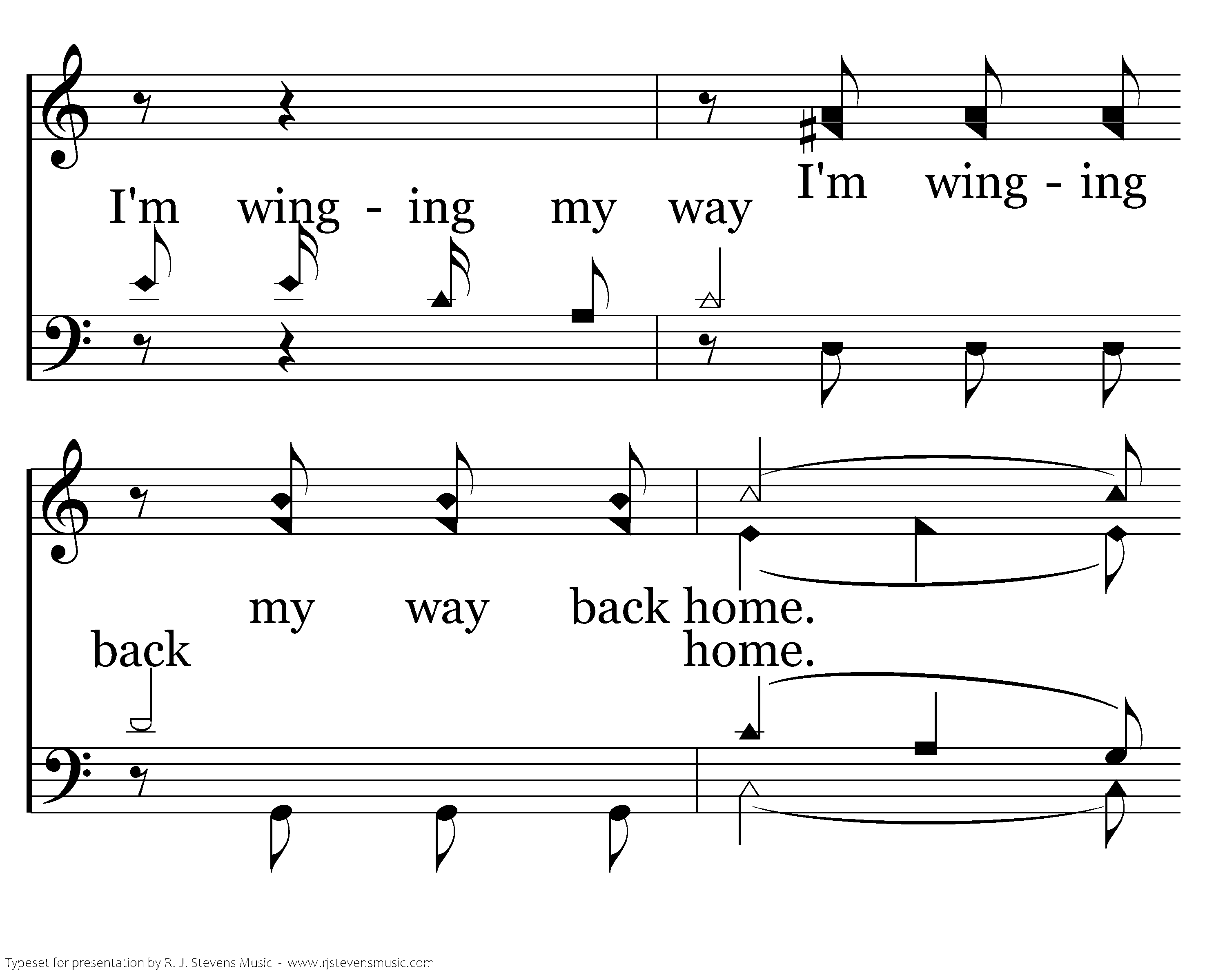 I'll never turn back to wages of sin, I'm winging my way back home. The night was so dark ere Jesus came in I'm winging my way back home.