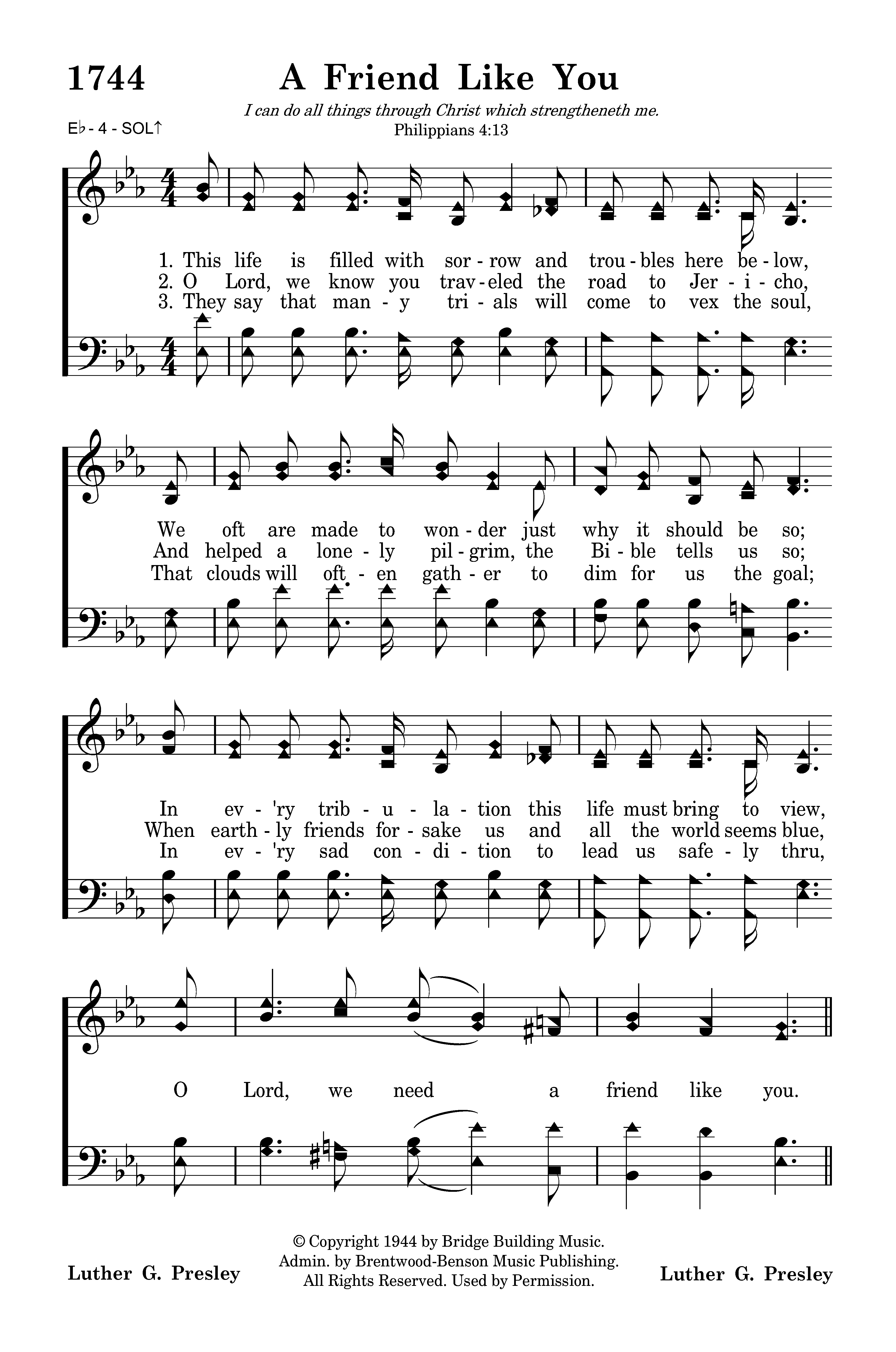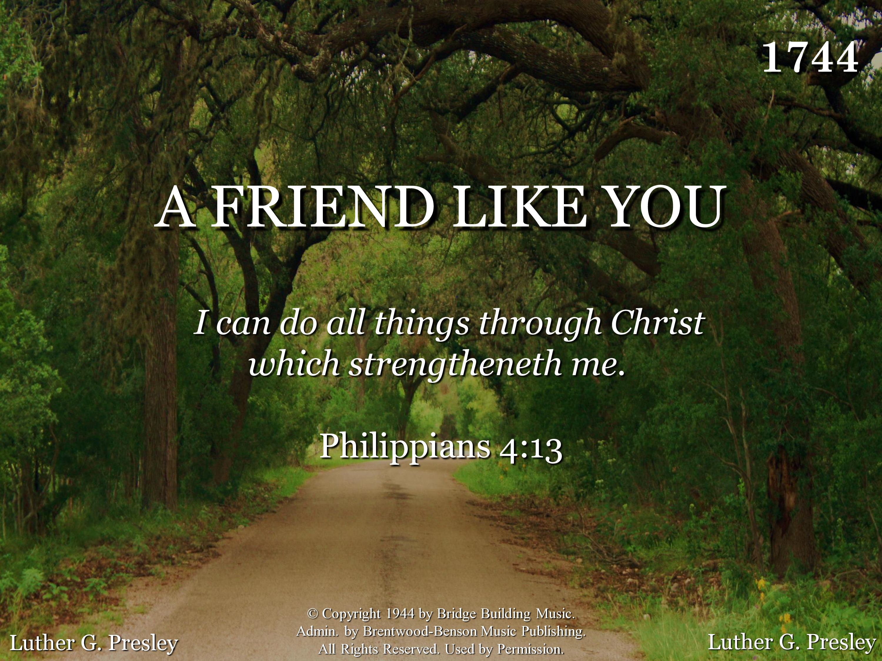 - Copyright © 1944 by Bridge Building Music. (Admin. by Brentwood-Benson Music Publishing, Inc.) All Rights Reserved. Used by Permission.