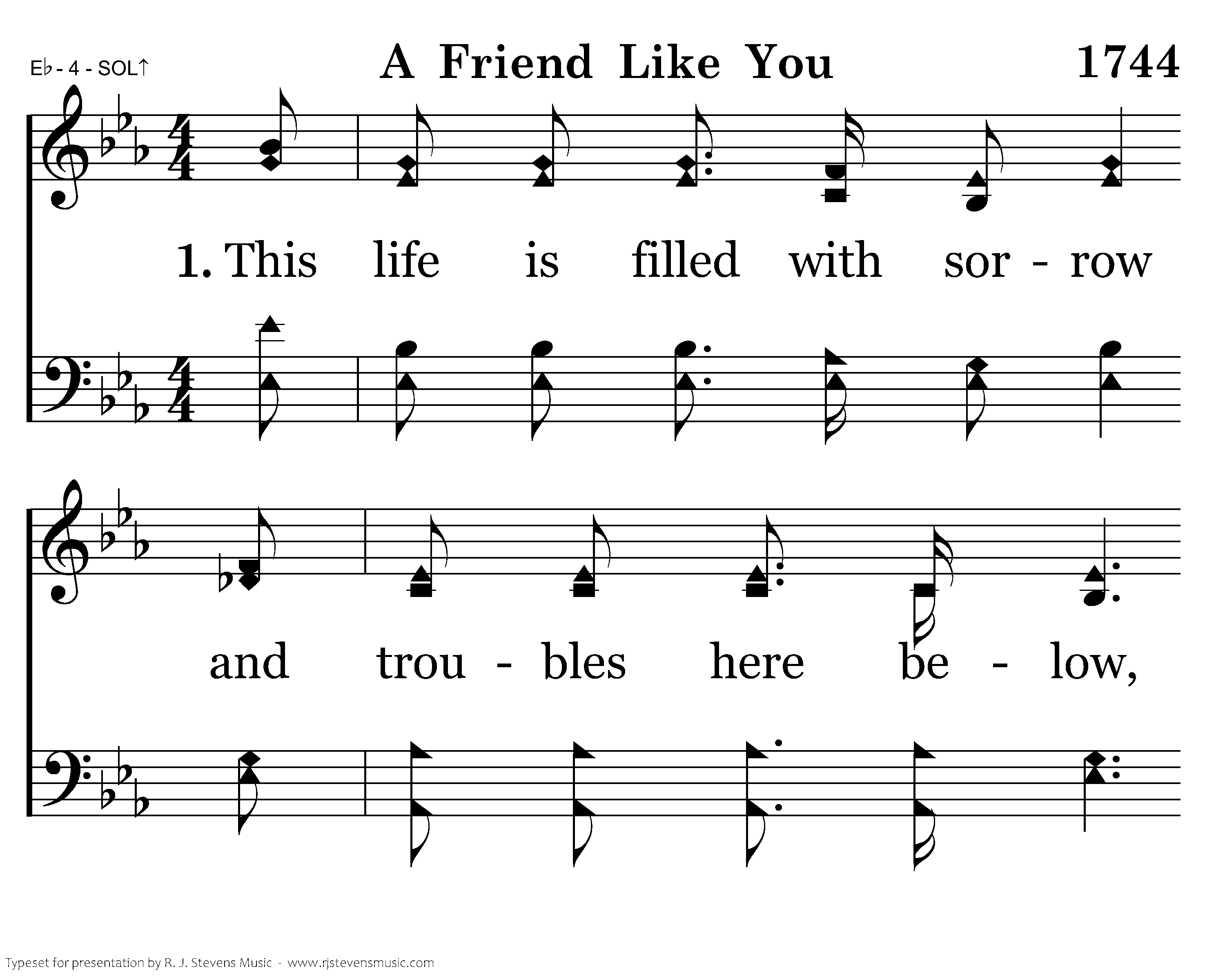 This life is filled with sorrow and troubles here below, We oft are made to wonder just why it should be so; In ev'ry tribulation this life must bring to view, O Lord, we need a friend like you.