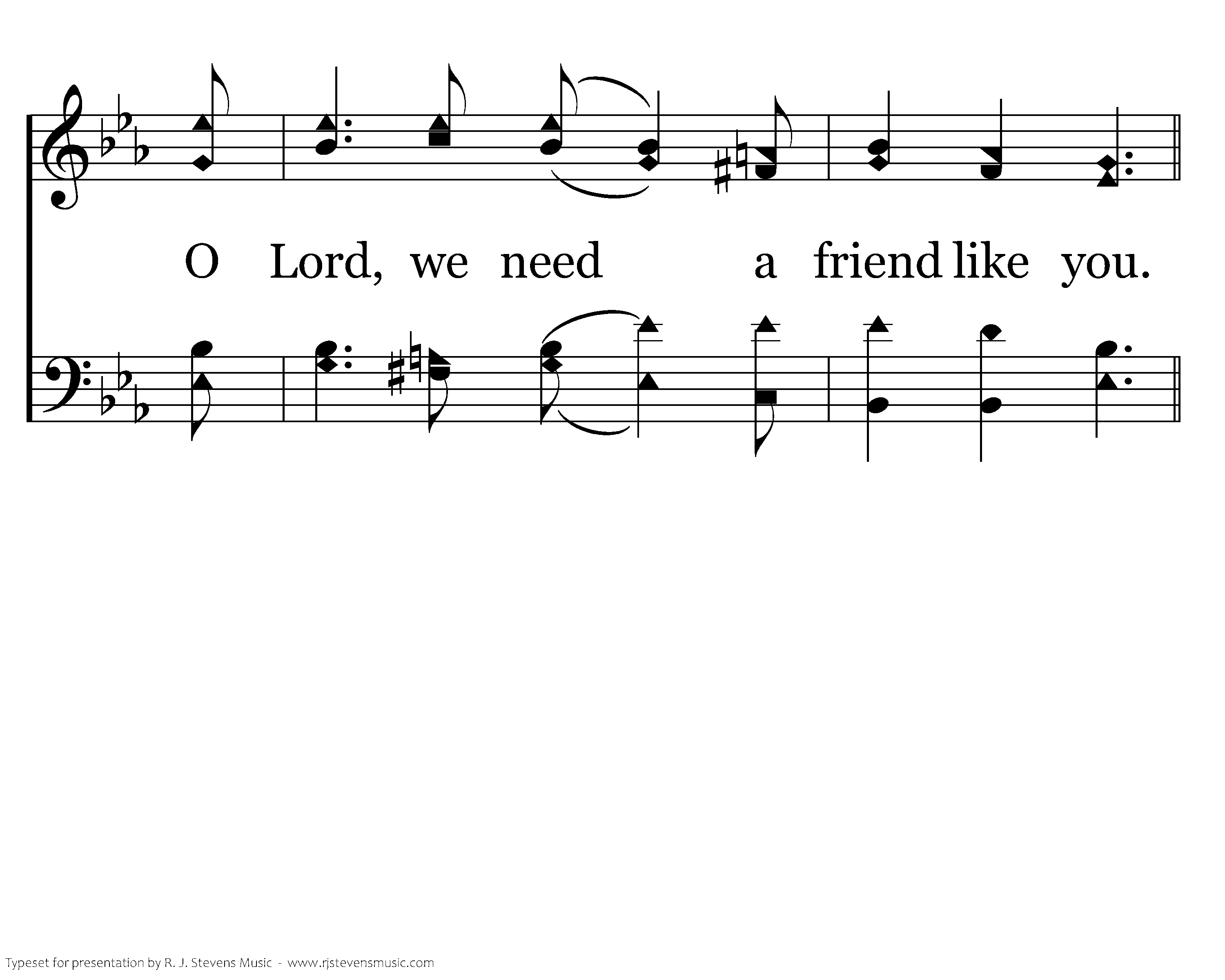 O Lord, we know you traveled the road to Jericho, And helped a lonely pilgrim, the Bible tells us so; When earthly friends forsake us and all the world seems blue, O Lord, we need a friend like you.